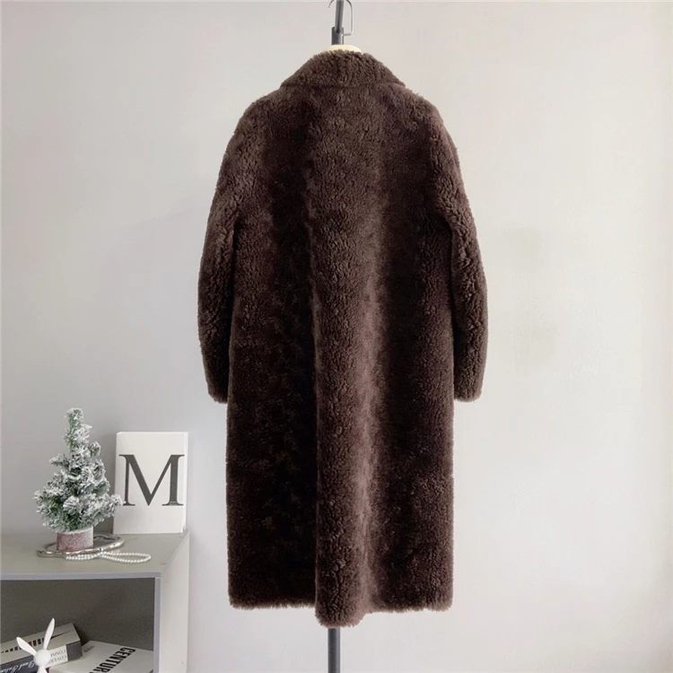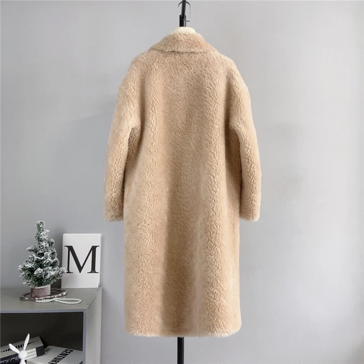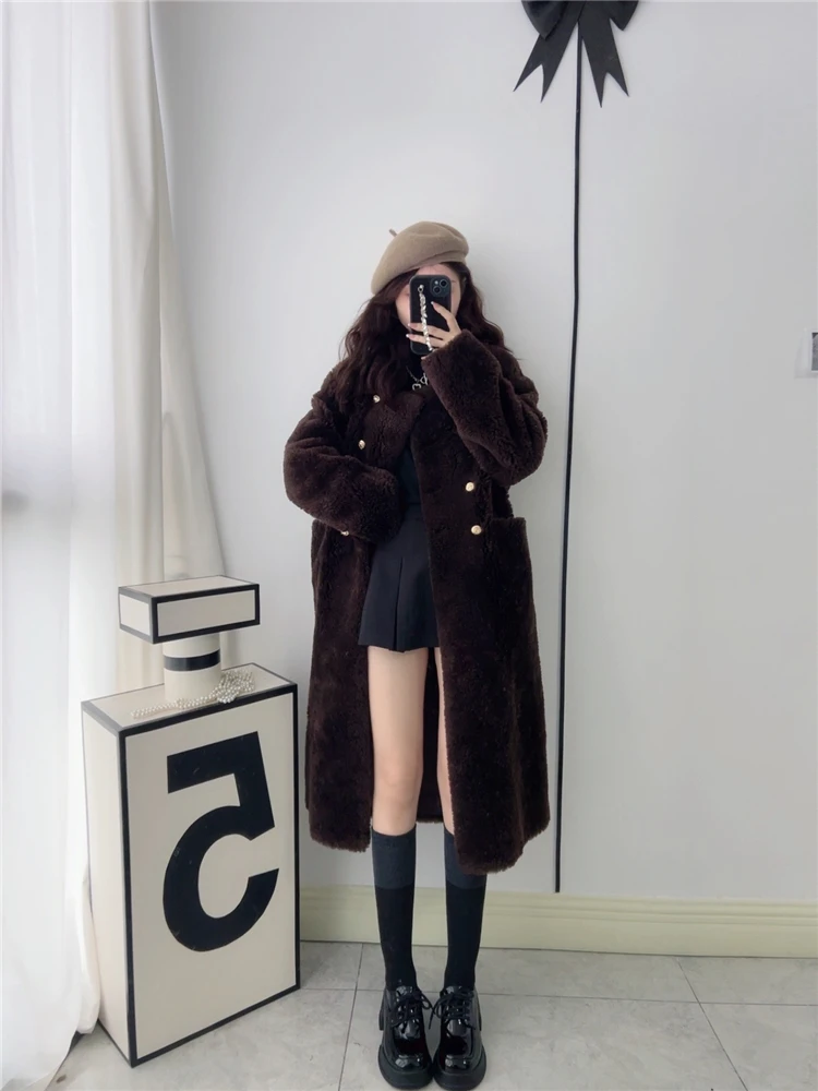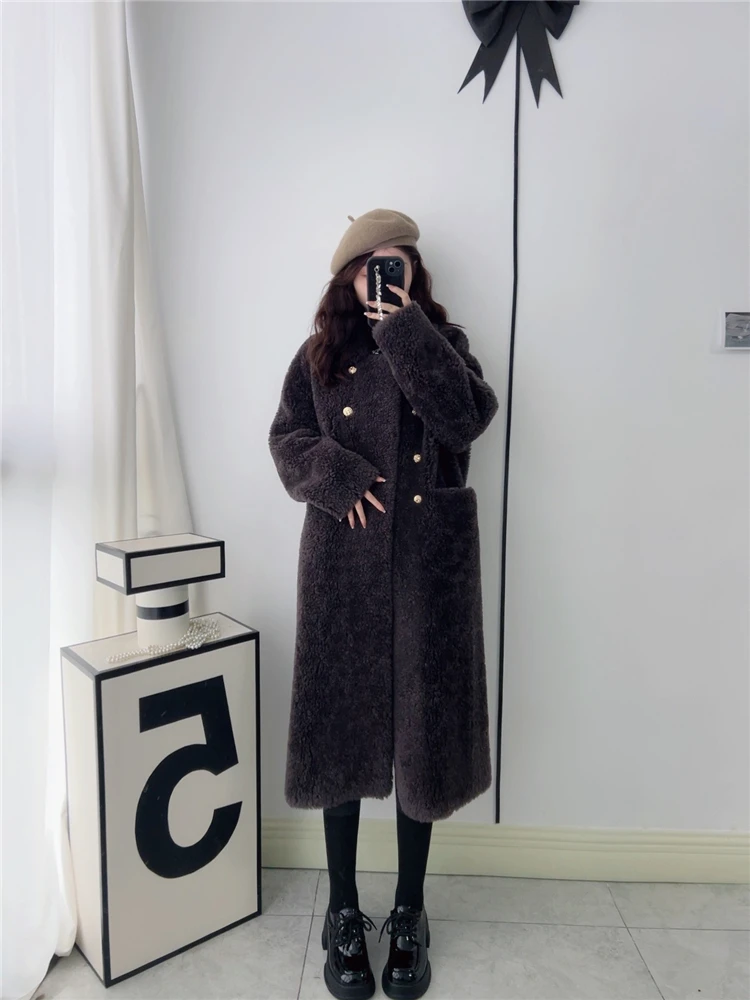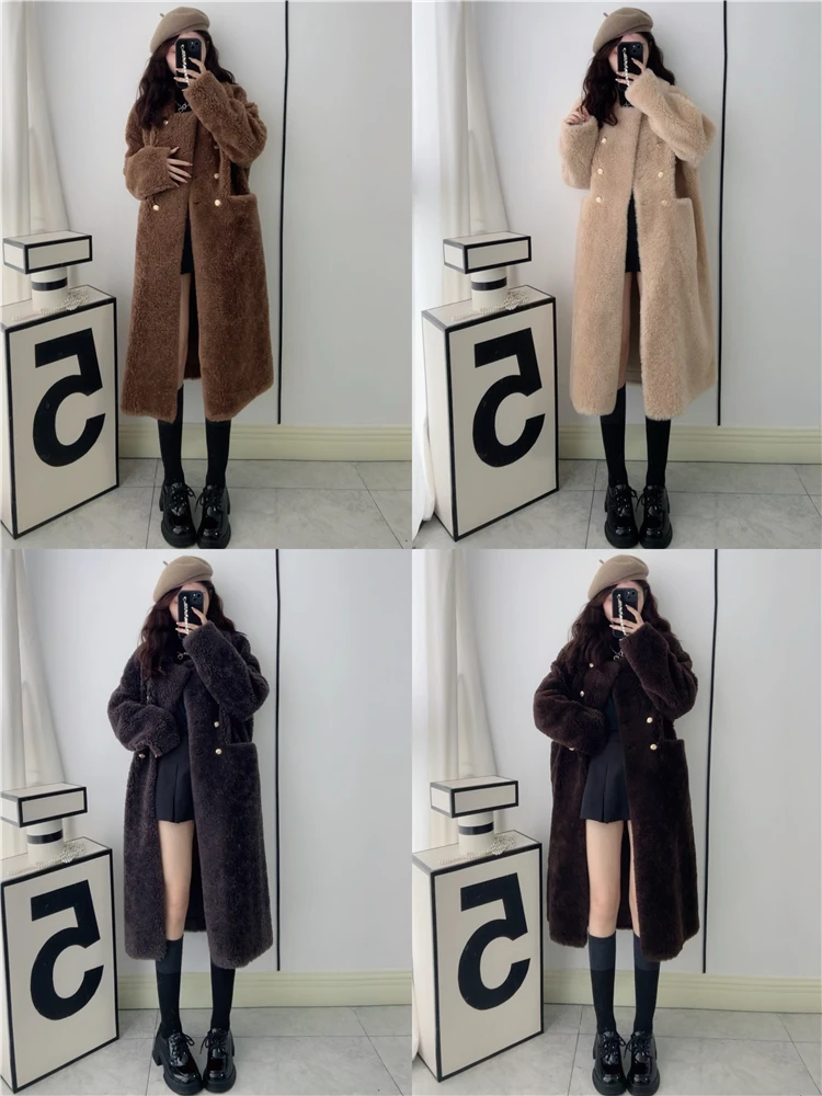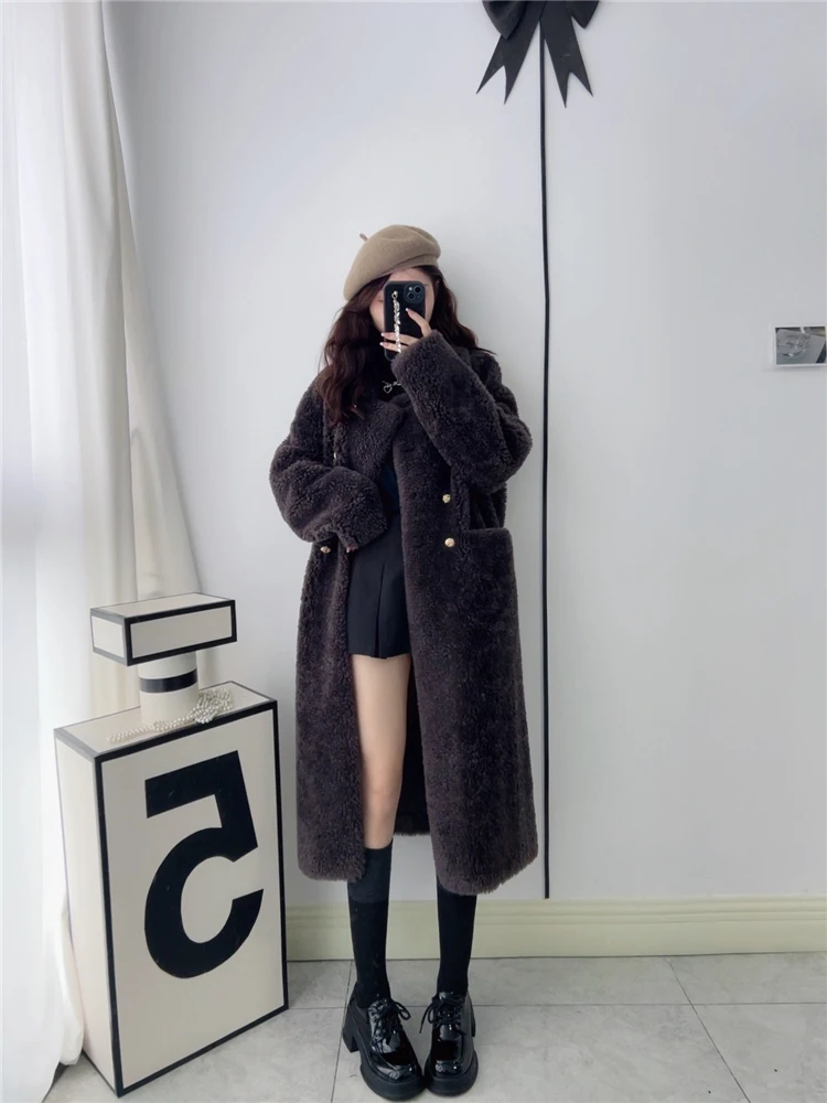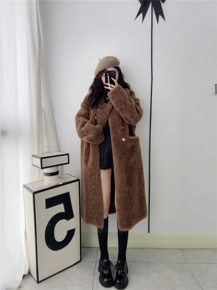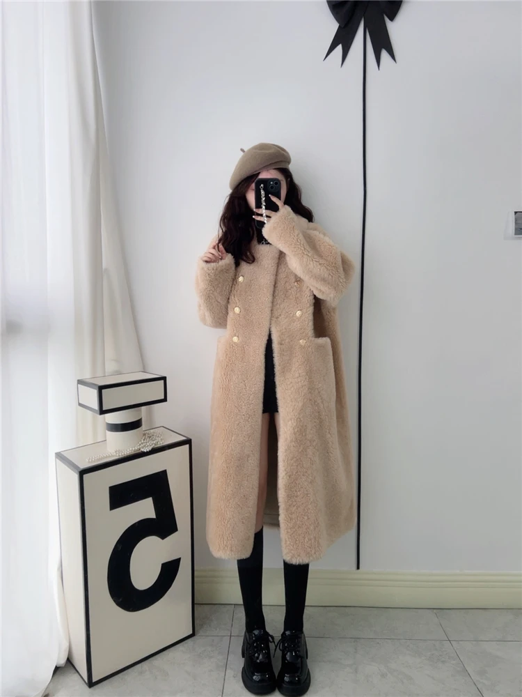 100% Wool Coat Women New Warm Sheep Shearing Long Solid Color Long Coat Lamb Wool casacos femininos inverno 2025