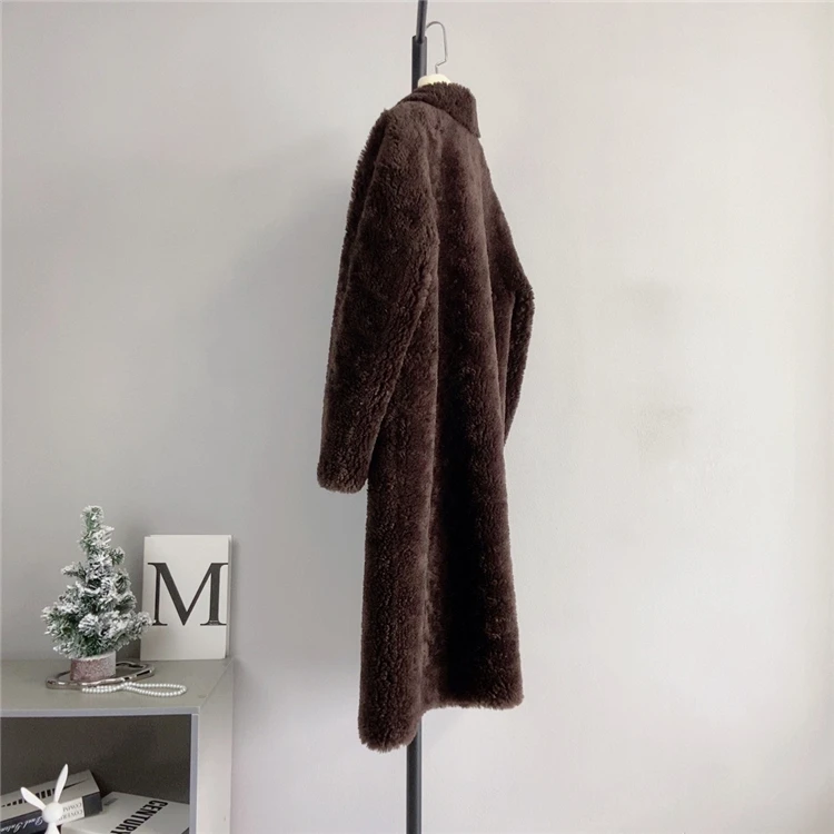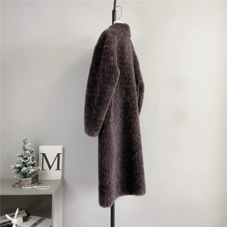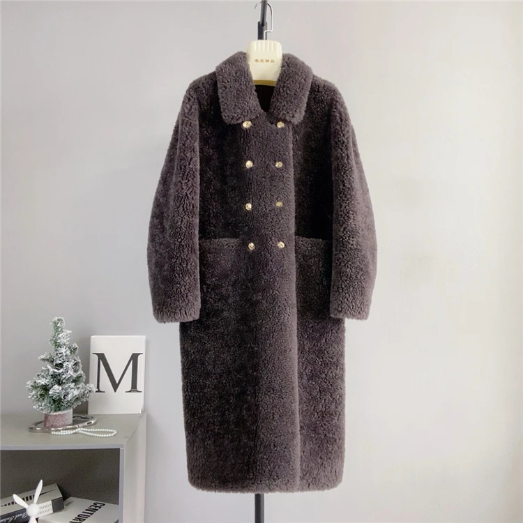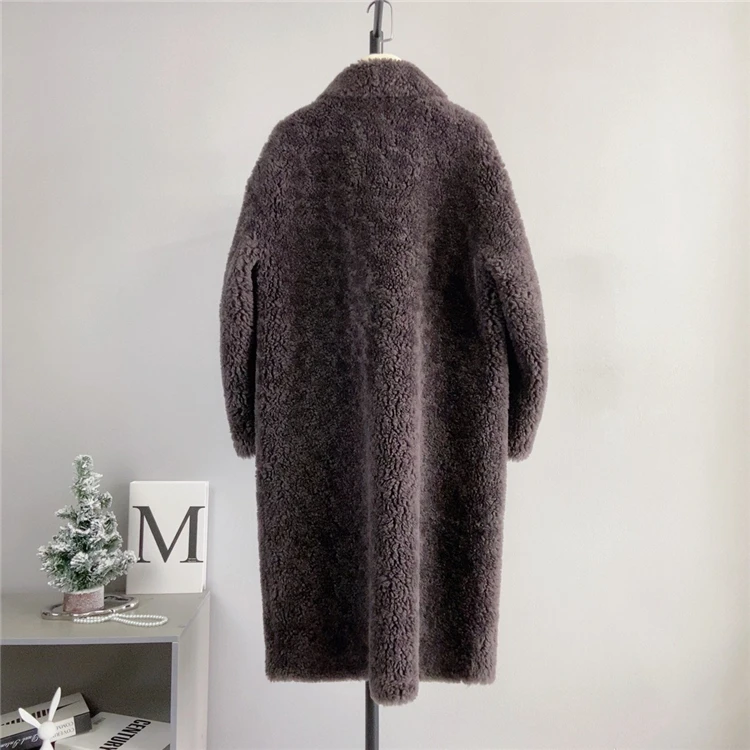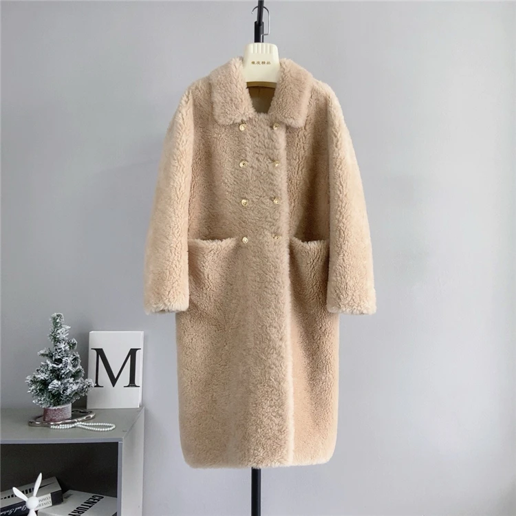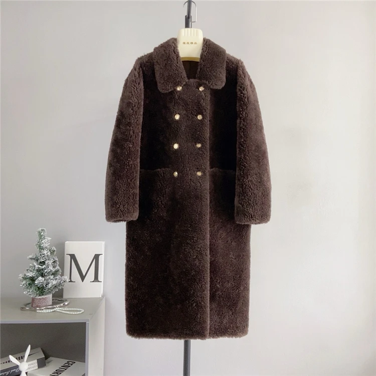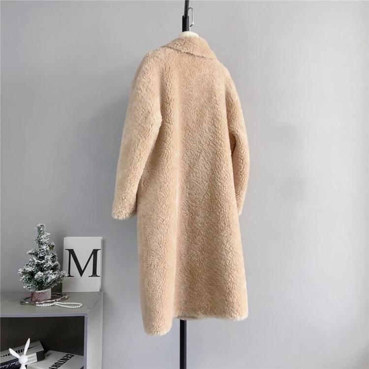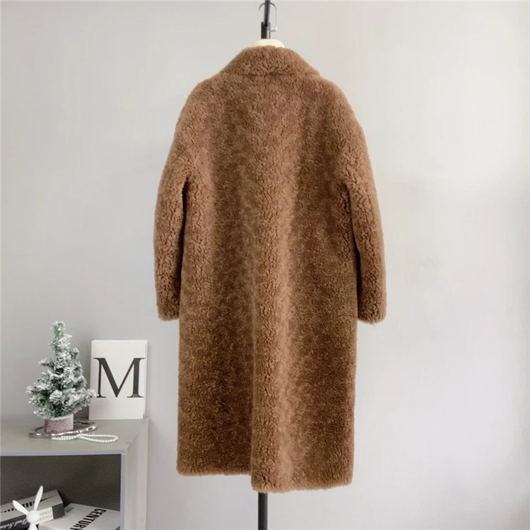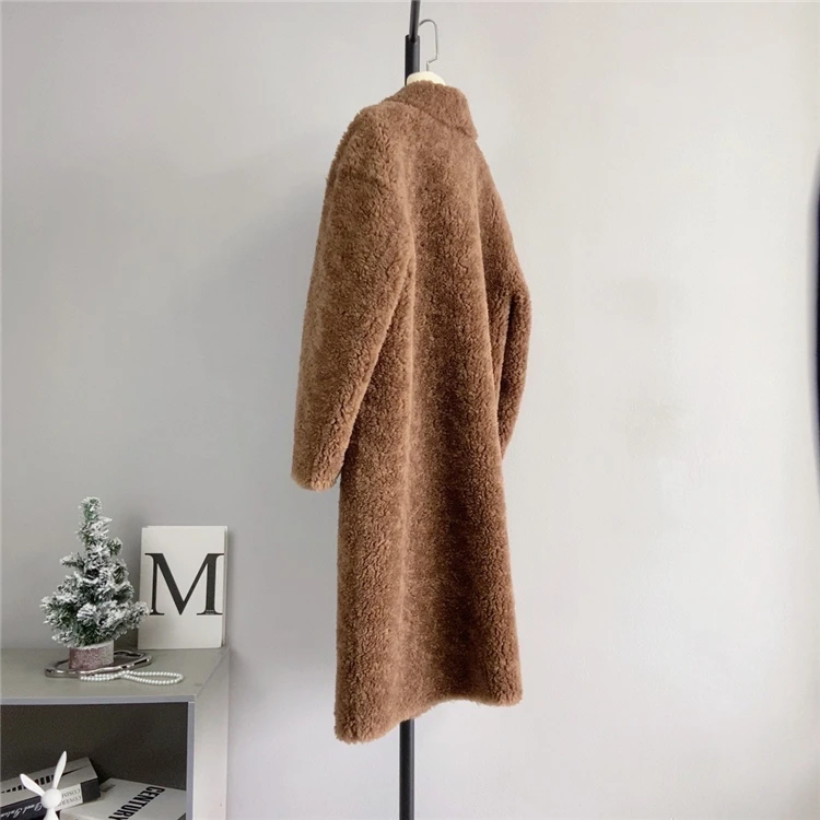 100% Wool Coat Women New Warm Sheep Shearing Long Solid Color Long Coat Lamb Wool casacos femininos inverno 2025