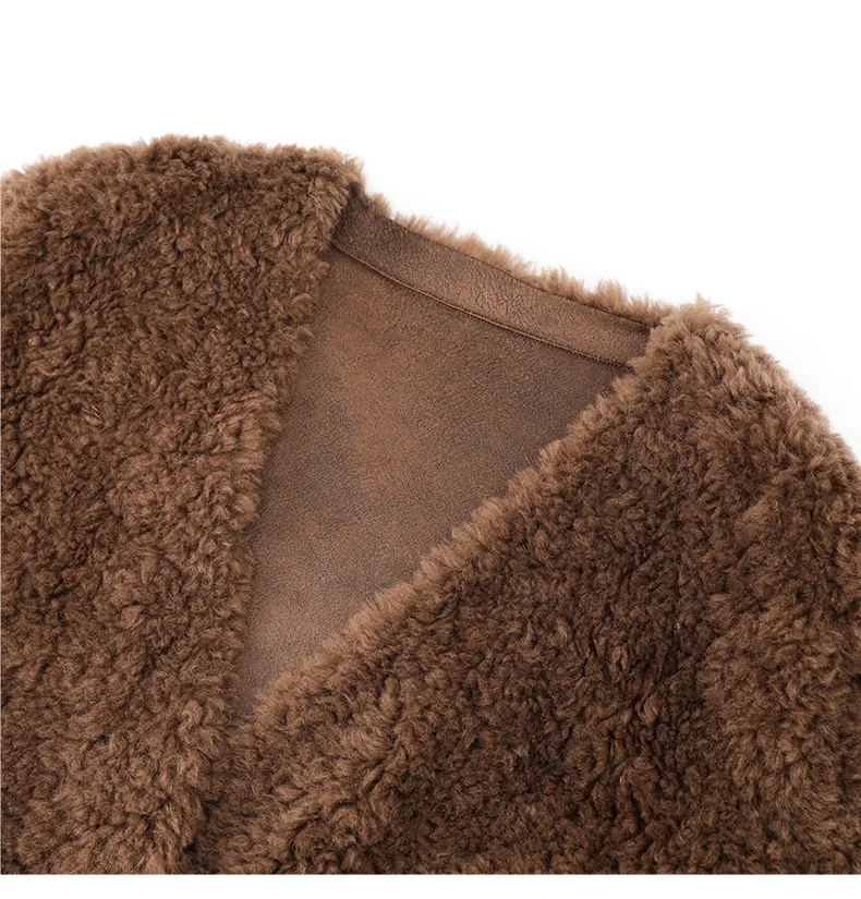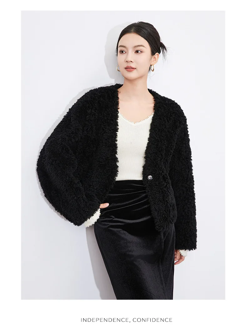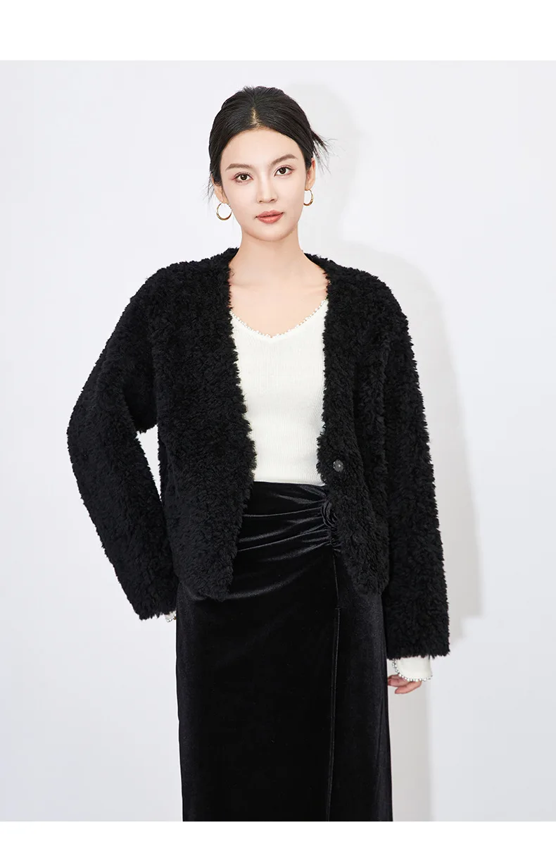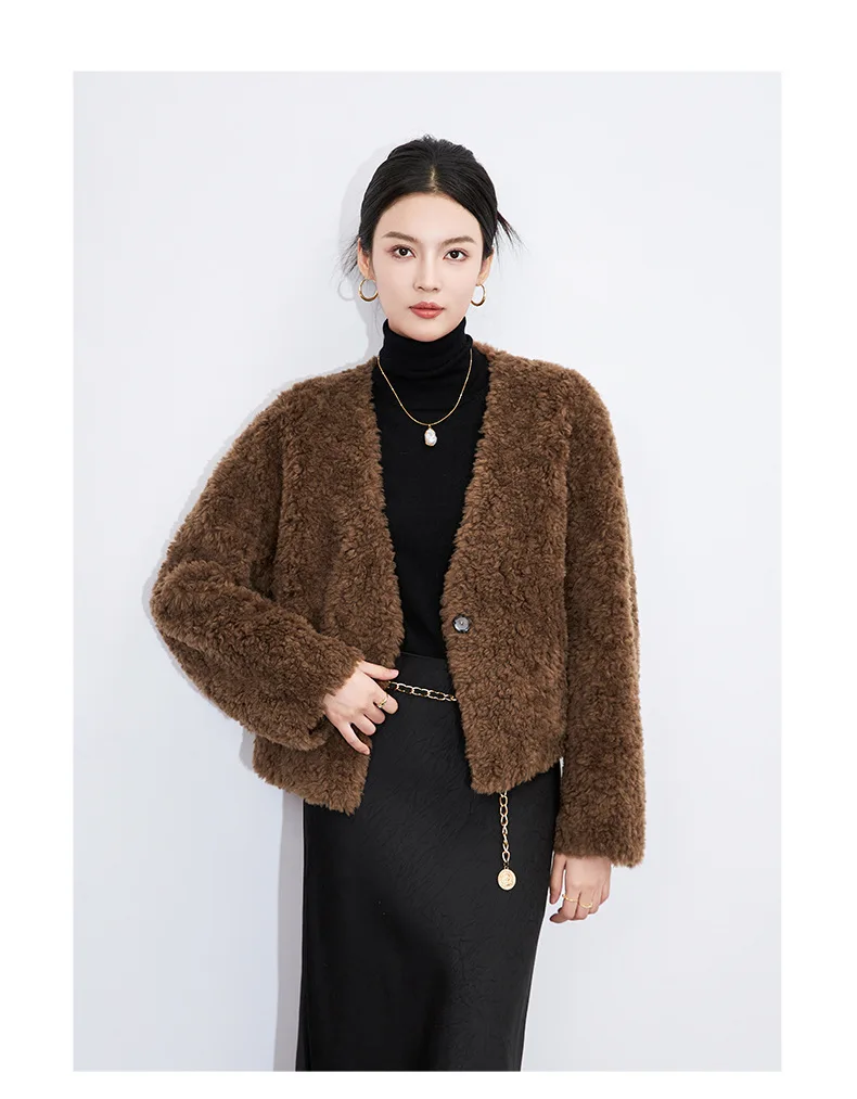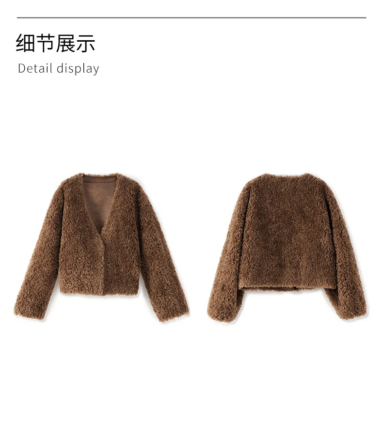 100% Wool Short Jackets for Women 2024 Autumn Winter V Neck Lamb Wool Coat Womens Clothing Fashion Outerwears Casaco Feminino