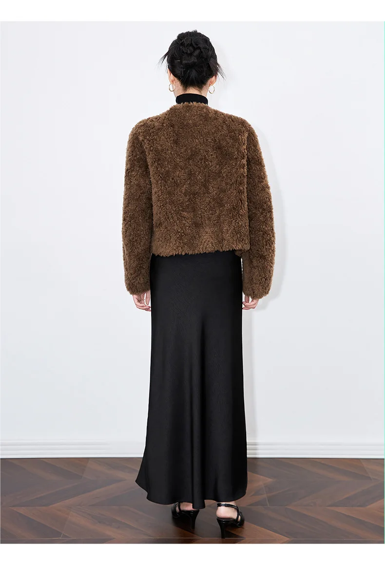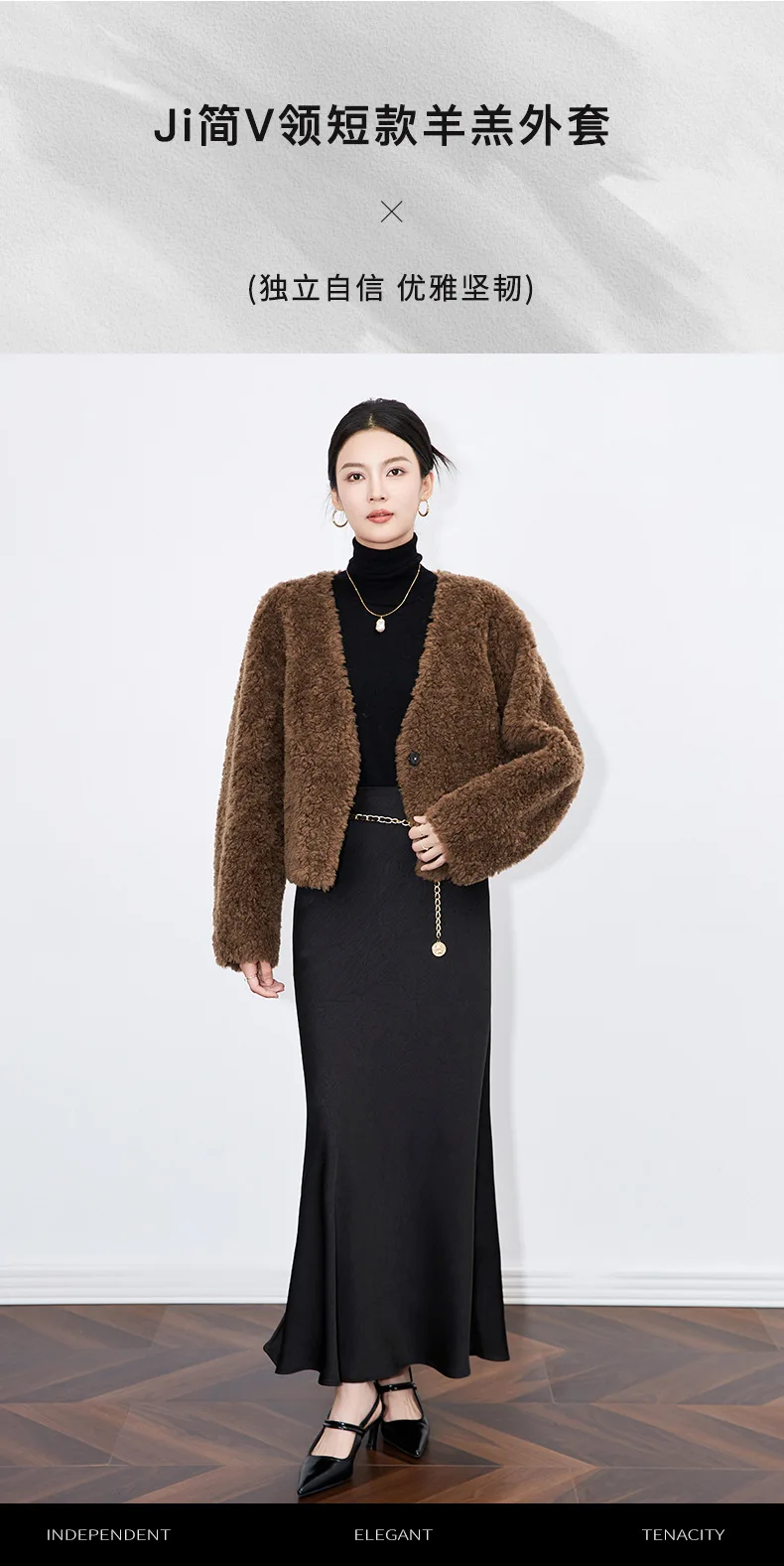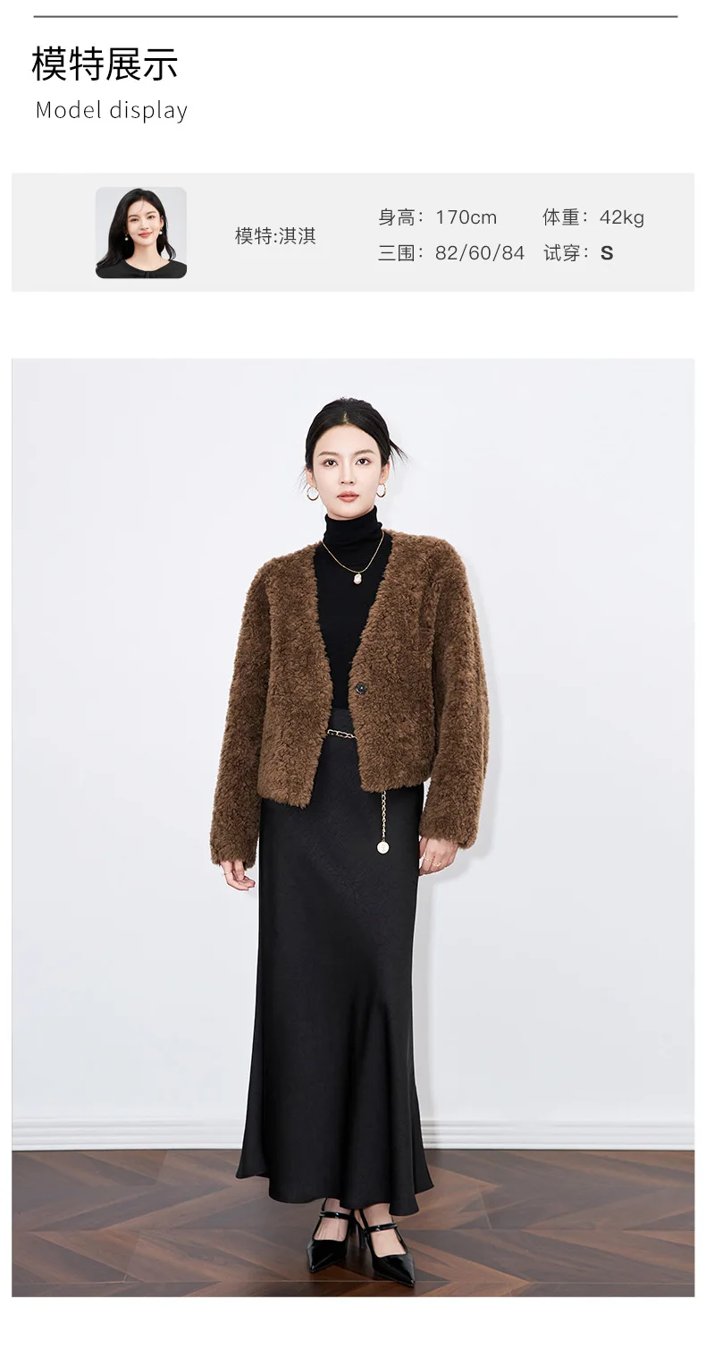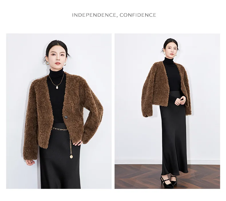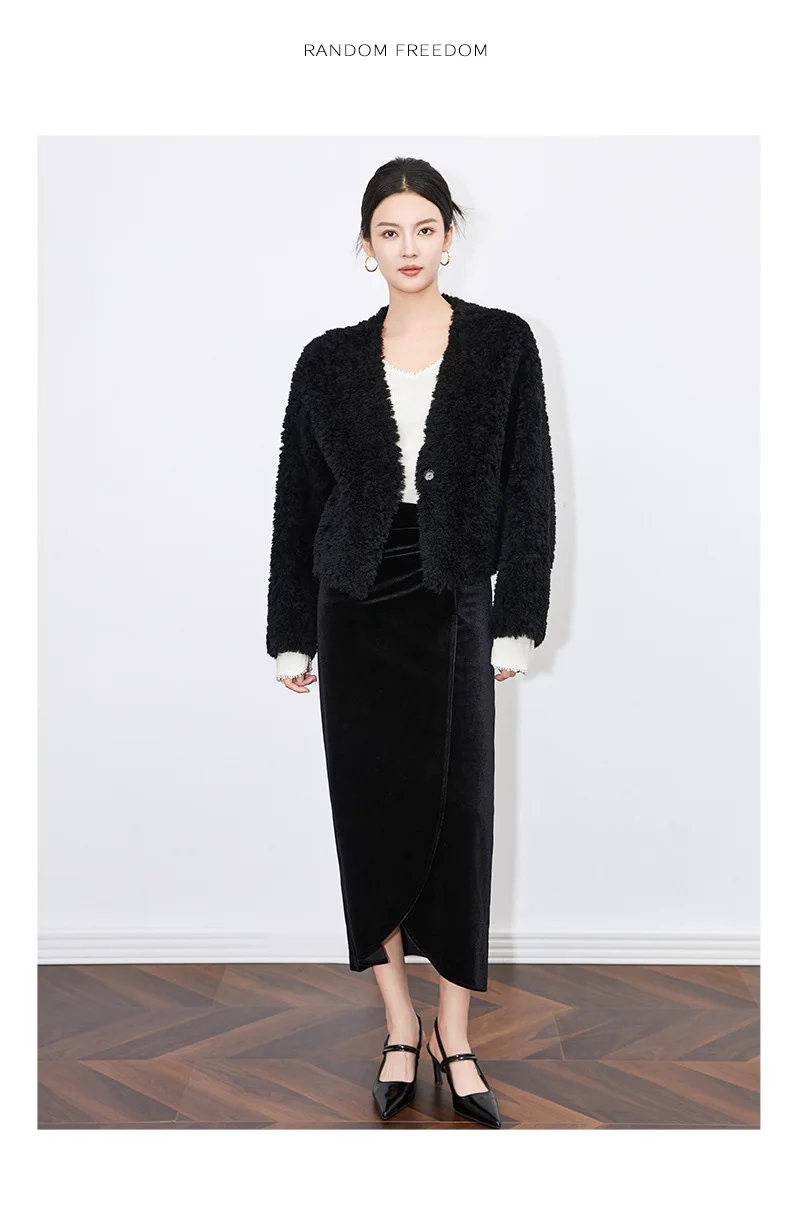 100% Wool Short Jackets for Women 2024 Autumn Winter V Neck Lamb Wool Coat Womens Clothing Fashion Outerwears Casaco Feminino