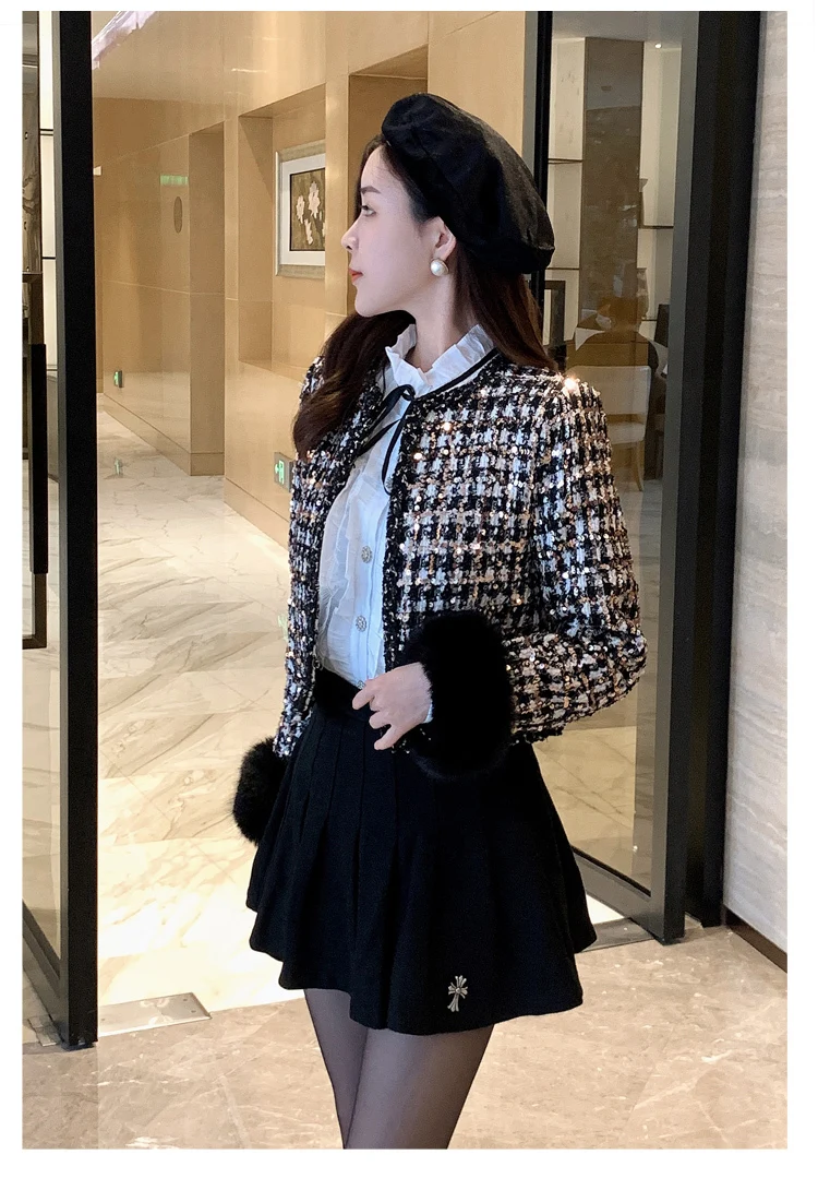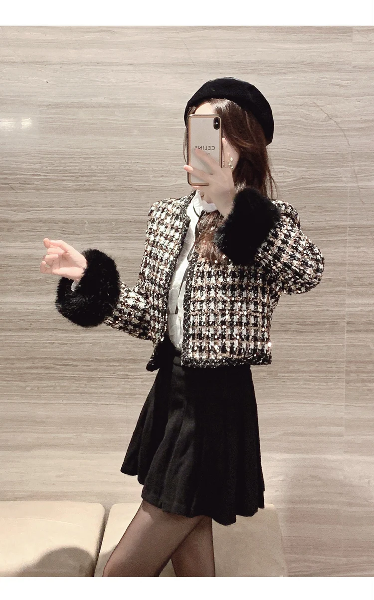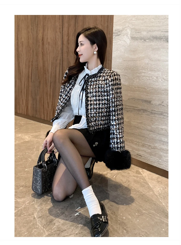 2024 autun winter Lady Short Coats For Women Casual Tweed Jackets Elegant Fashion Outerwears Chaquetas Casaco abrigos de mujer