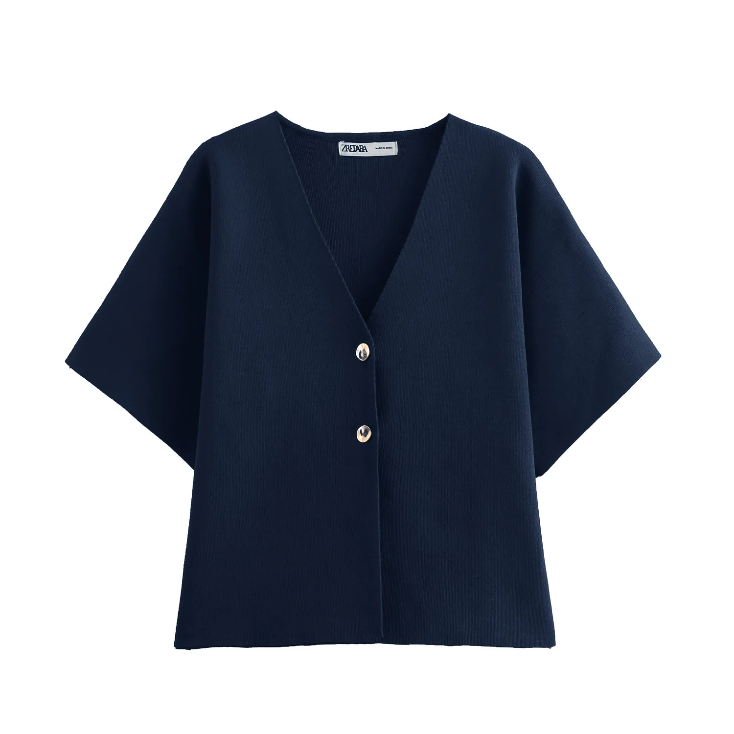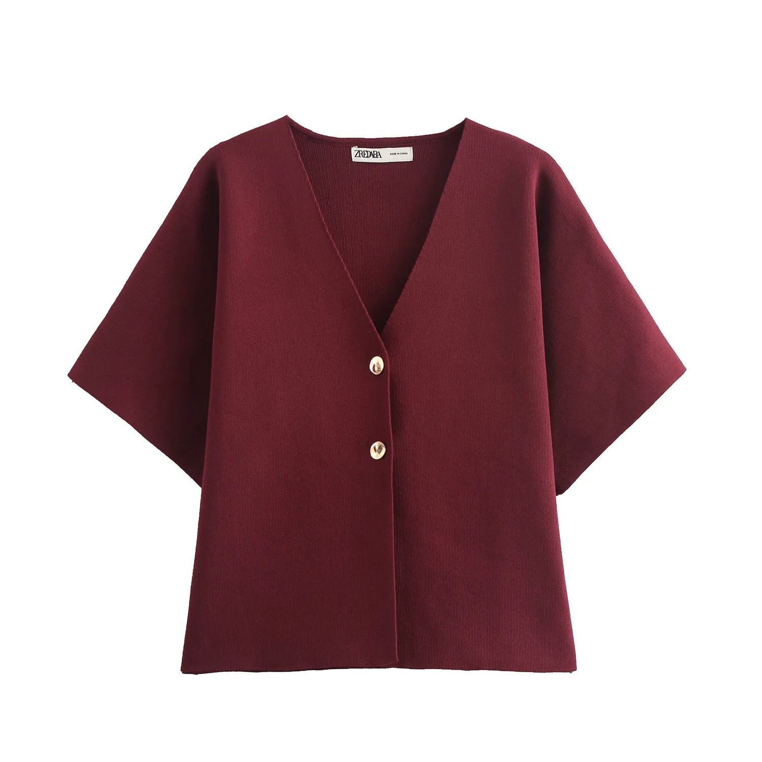 2024 New Autum Women's European and American Style Fashionable Flat-Needle Short-Sleeved V-Neck Knitted Jacket Street Style Top
