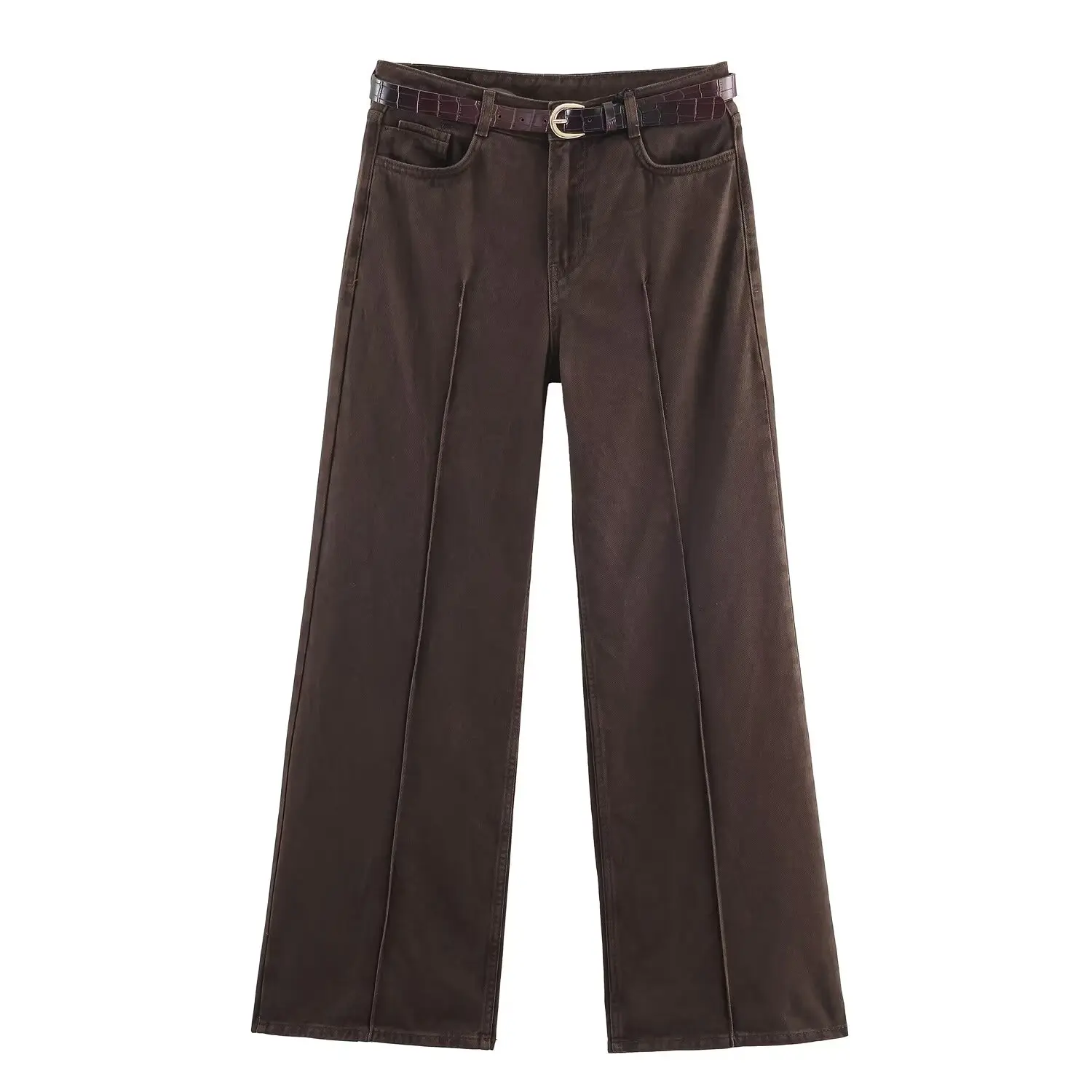 2025 Fashion New Arrival: High-Waisted Wide-Leg Pants with Belt Women's Fashionable Casual Pairing: High-Waisted Drawstring Wide