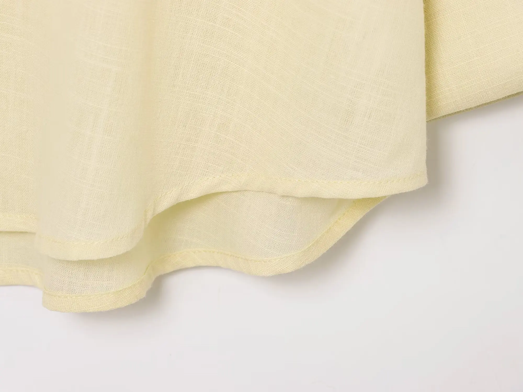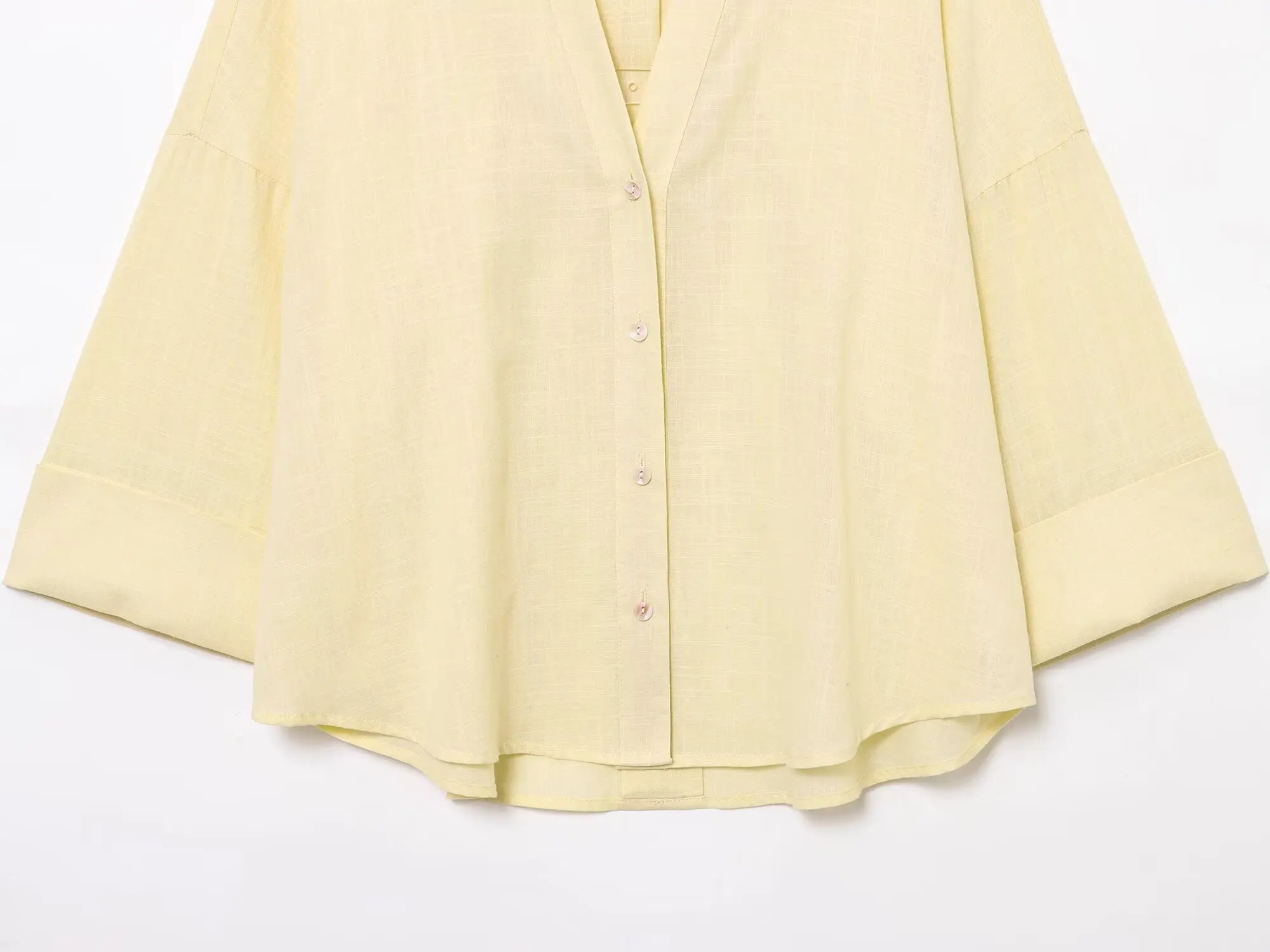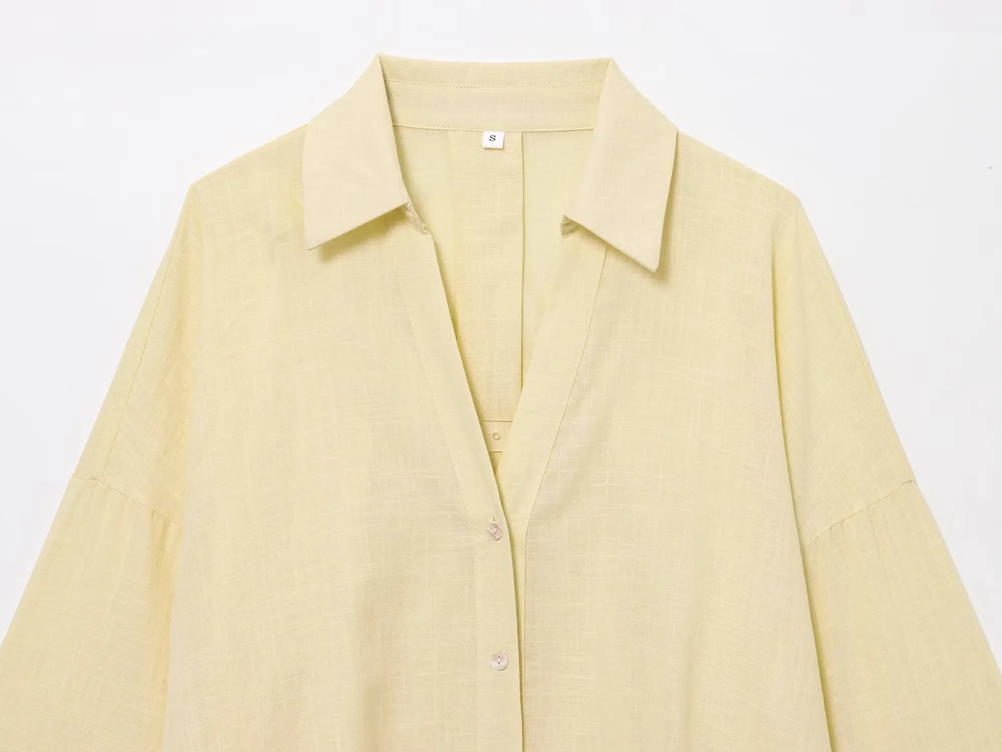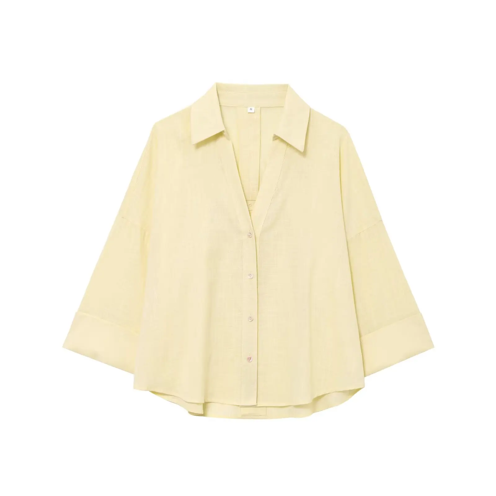 2025 Women Yellow Shirt Fashion Cotton Linen Wide-sleeved Short Shirt Single-breasted Casual Loose Blouse Mujer Roupas