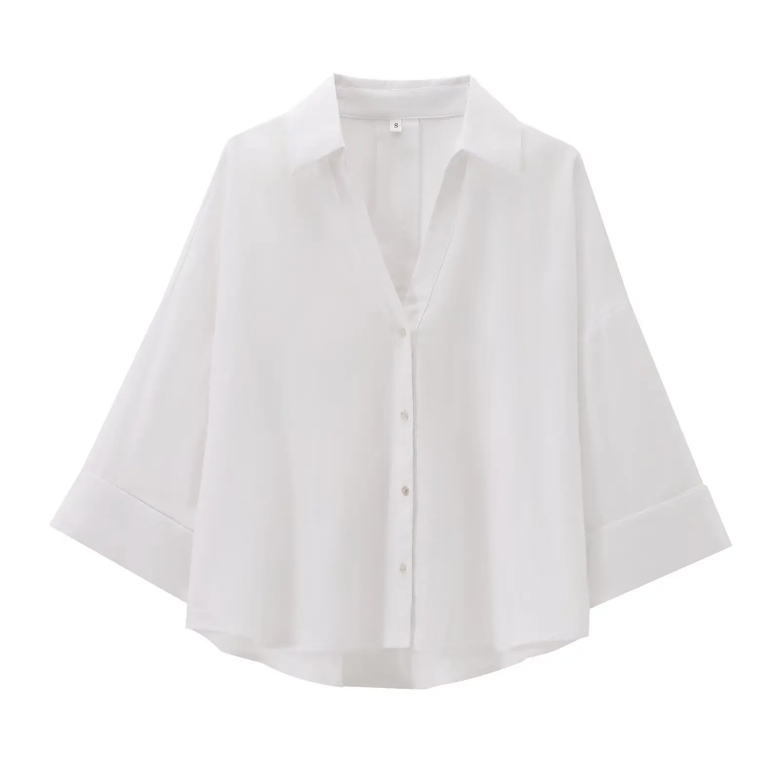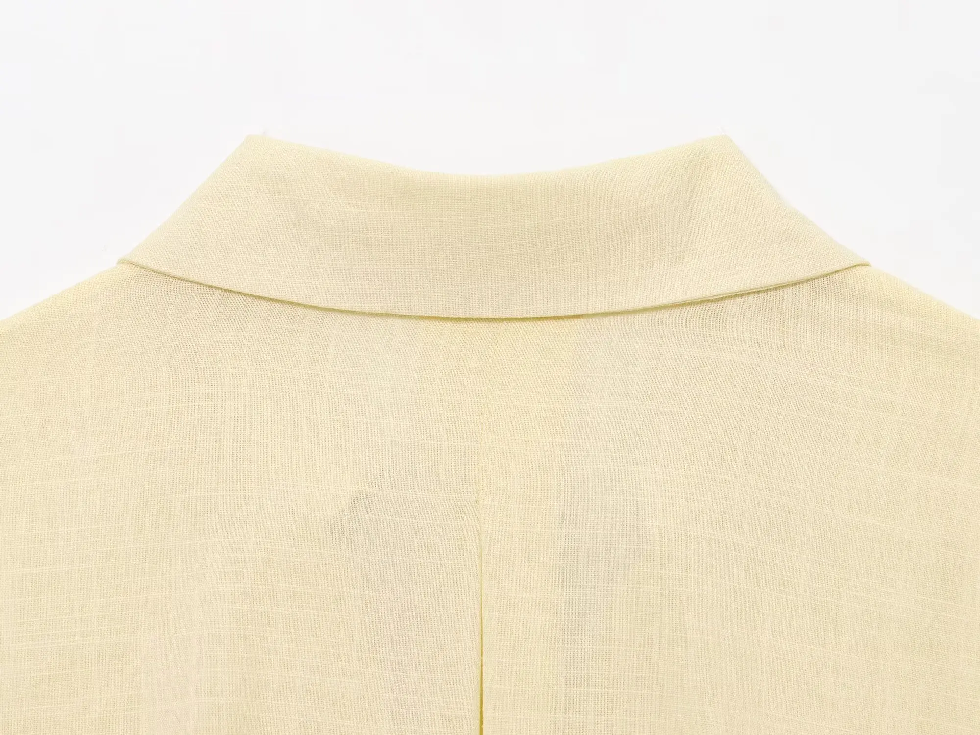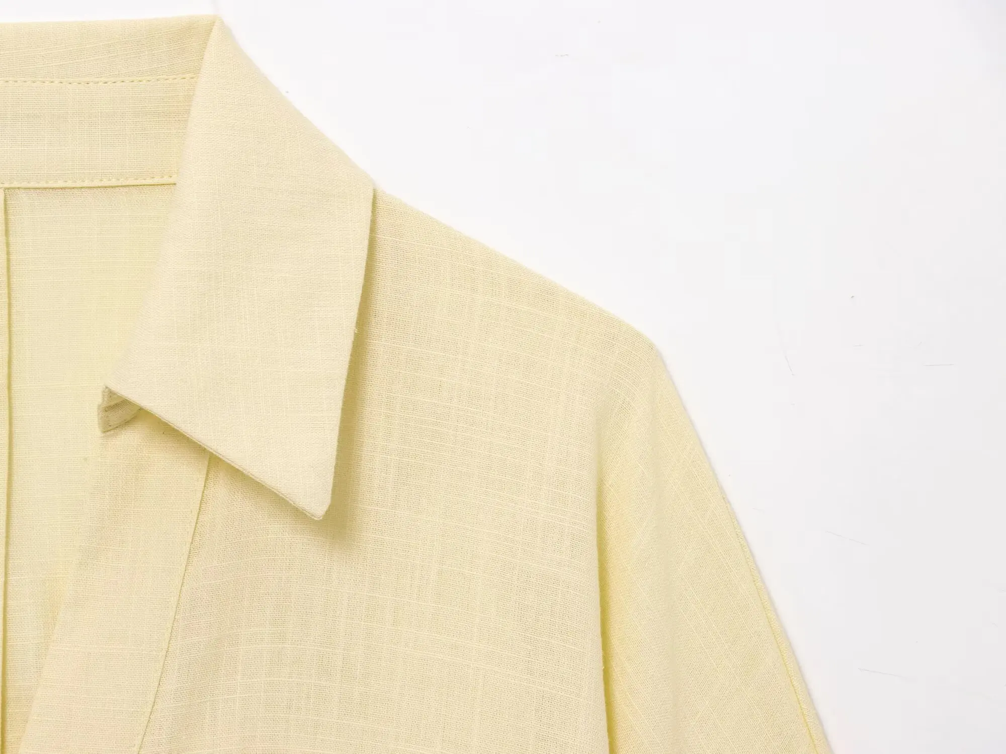 2025 Women Yellow Shirt Fashion Cotton Linen Wide-sleeved Short Shirt Single-breasted Casual Loose Blouse Mujer Roupas