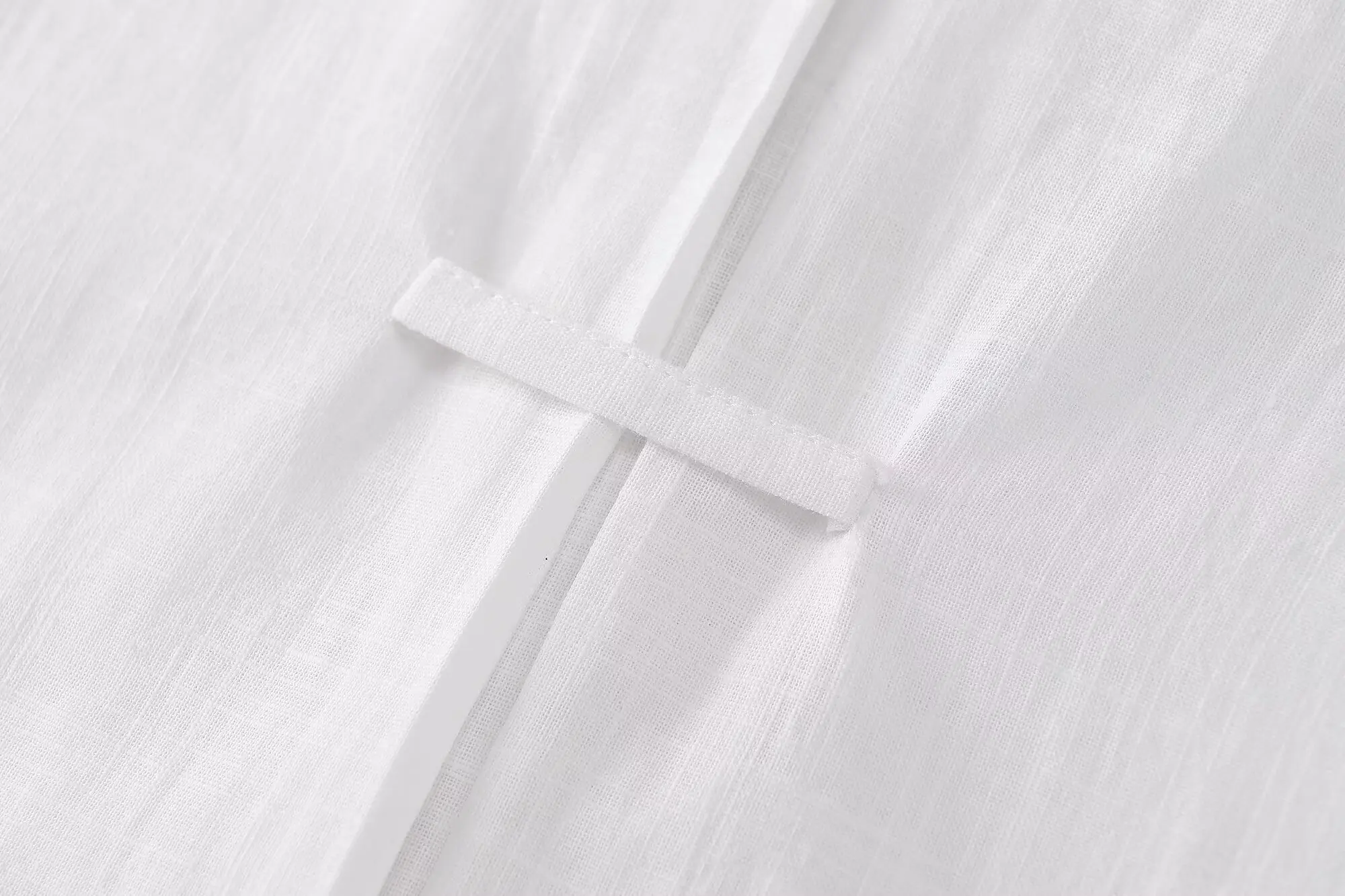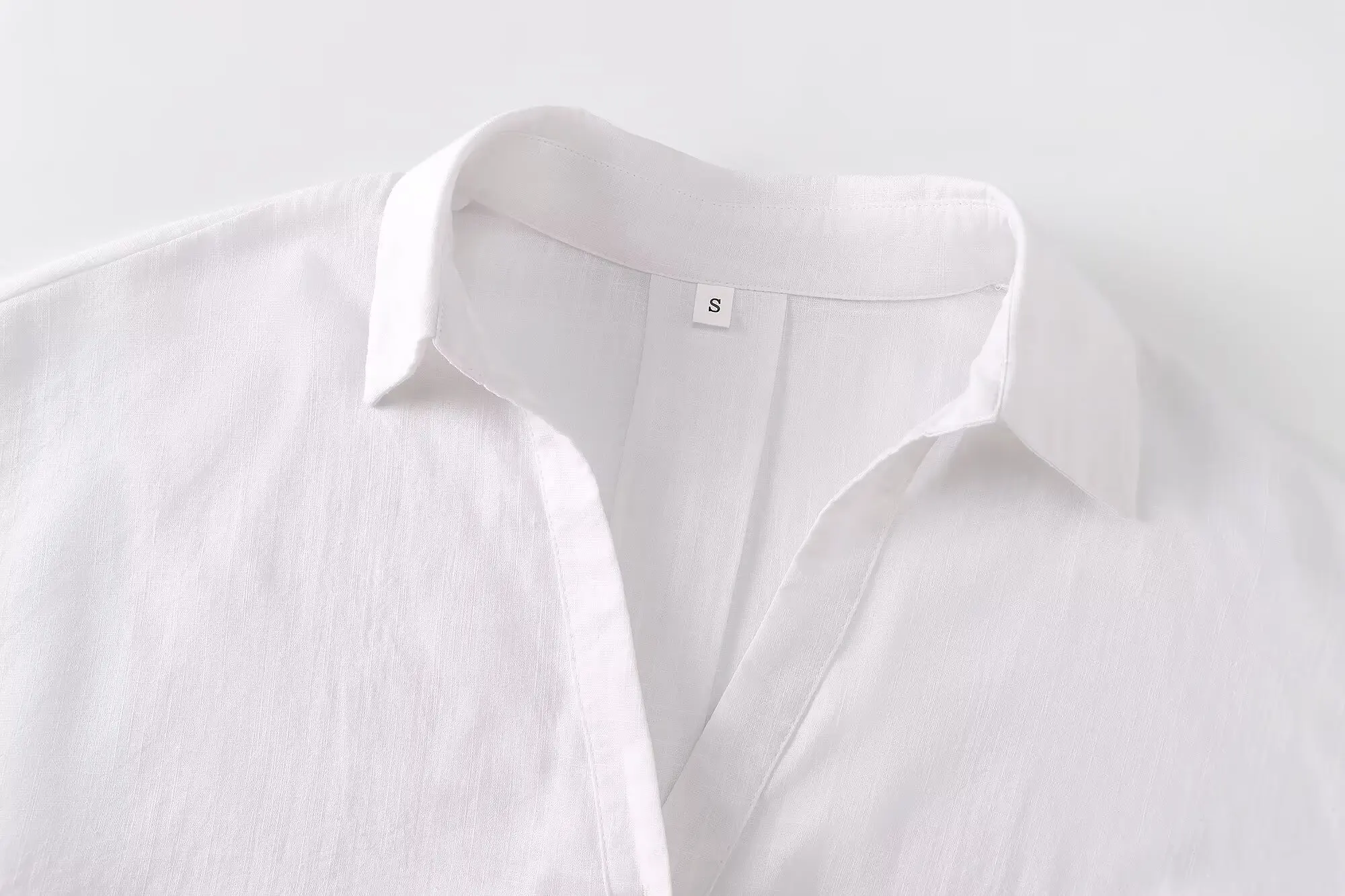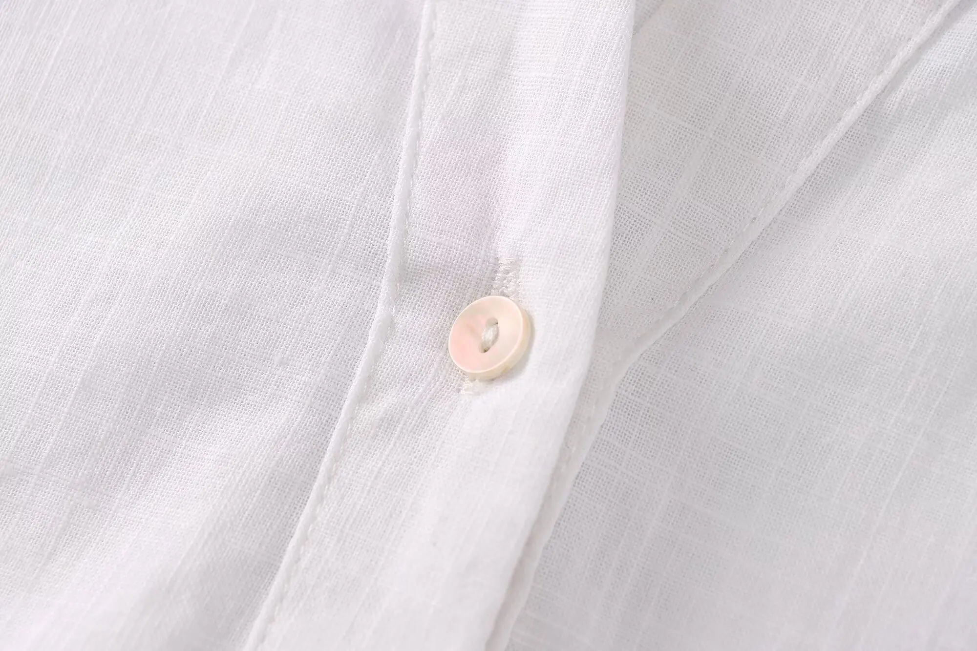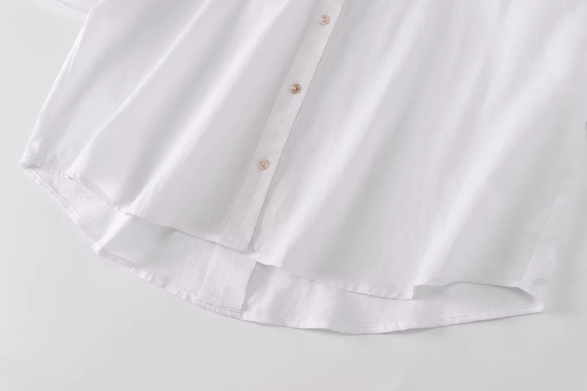 2025 Women Yellow Shirt Fashion Cotton Linen Wide-sleeved Short Shirt Single-breasted Casual Loose Blouse Mujer Roupas