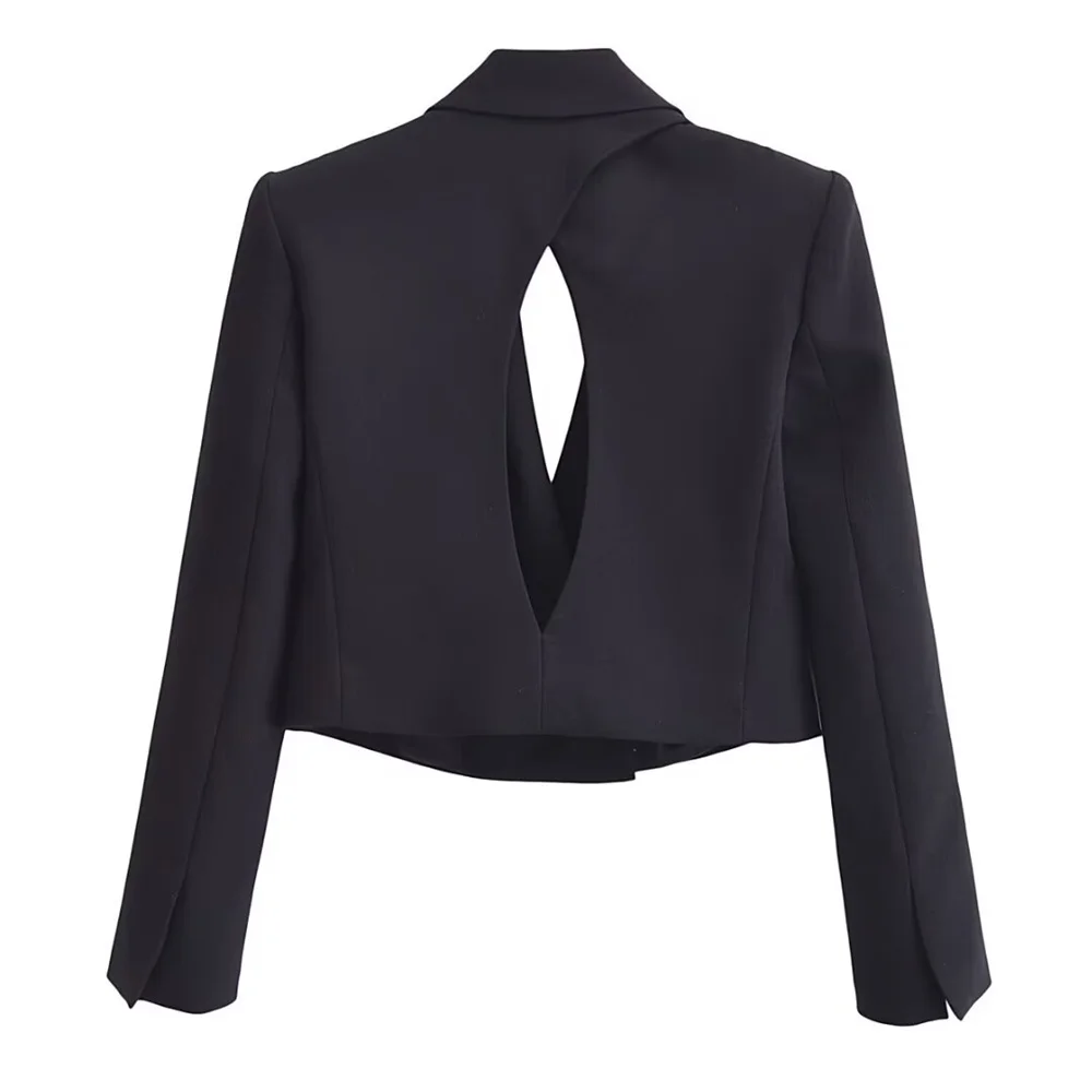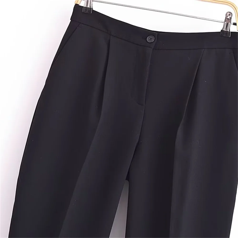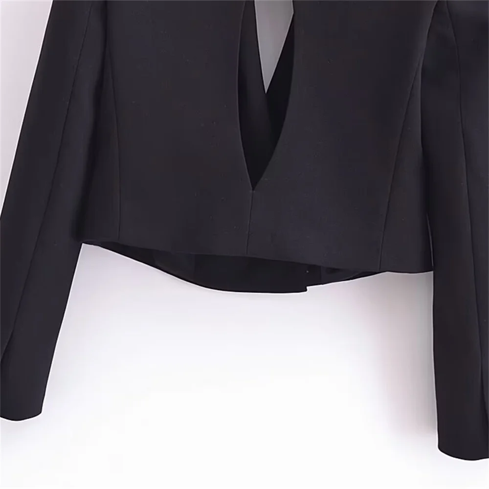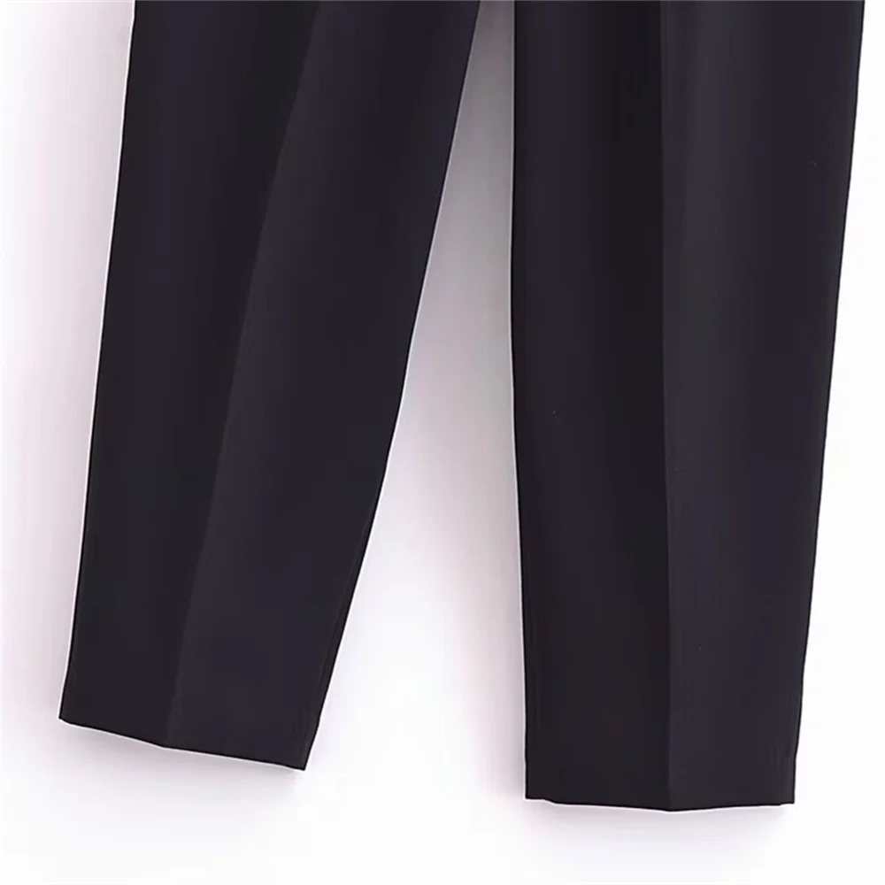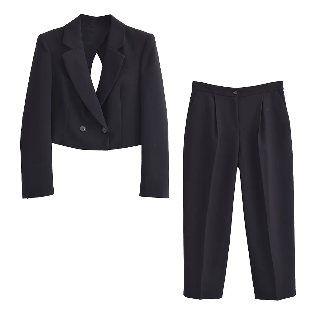 autumn new women's casual long sleeved top with open design, casual suit jacket with pleats and ankle pants set