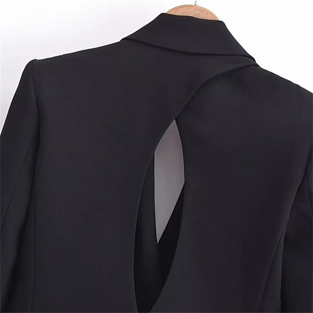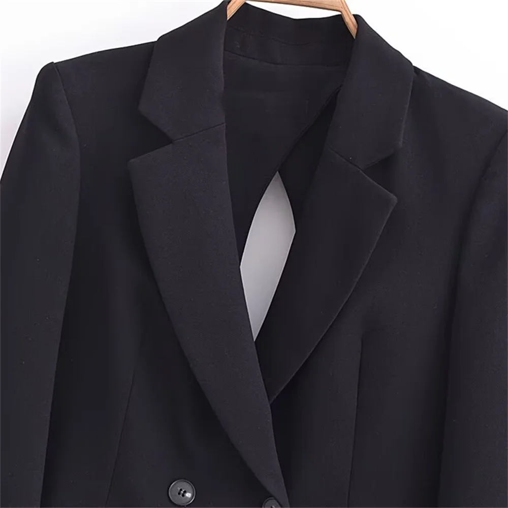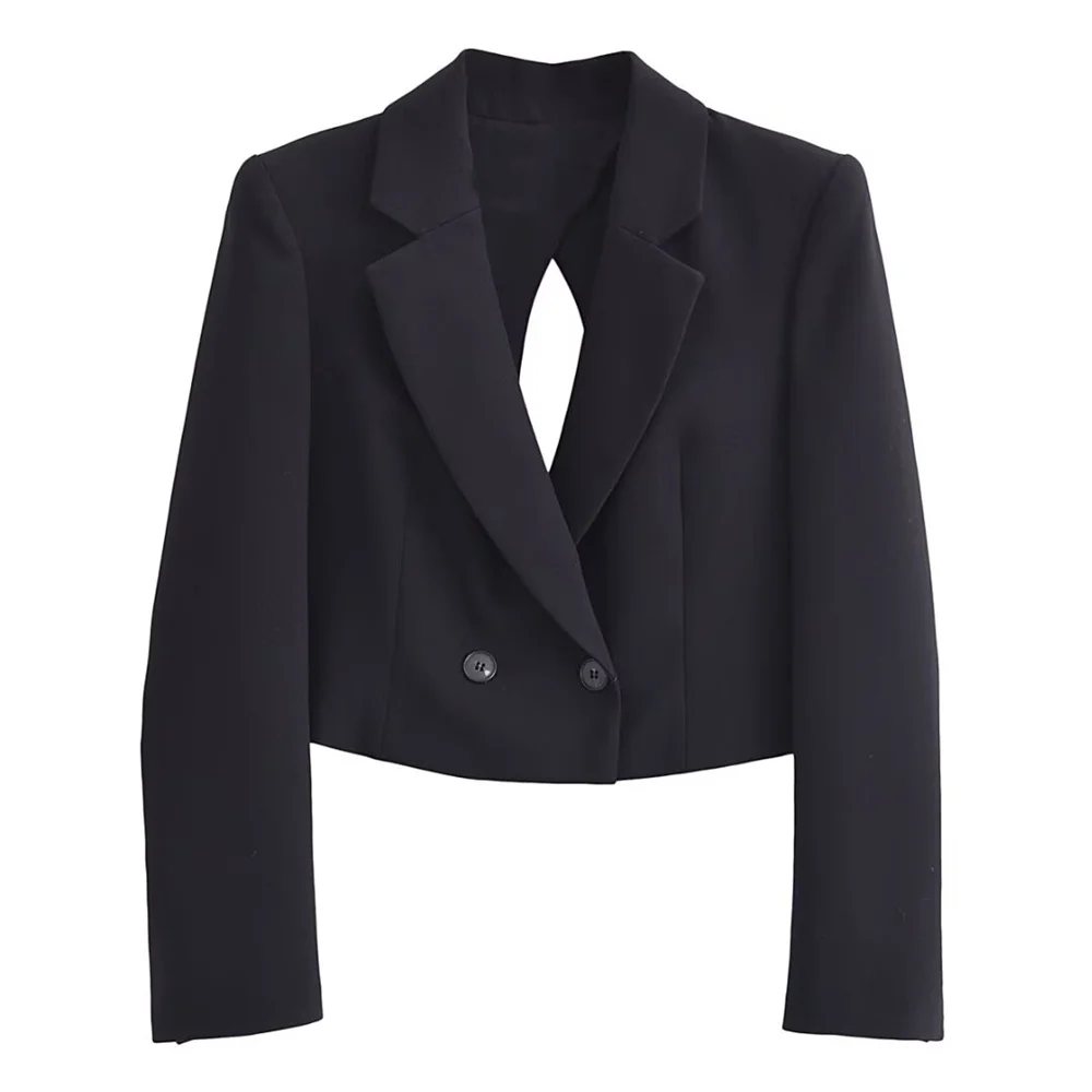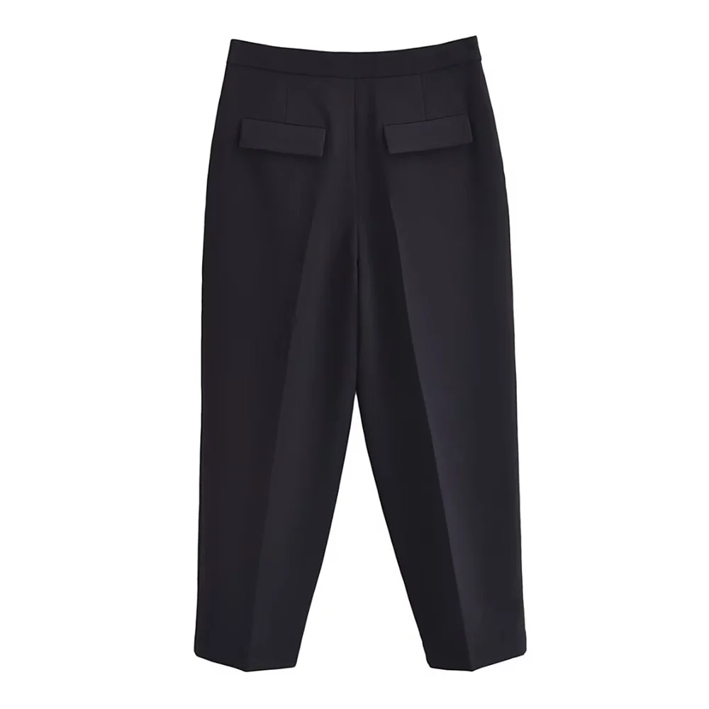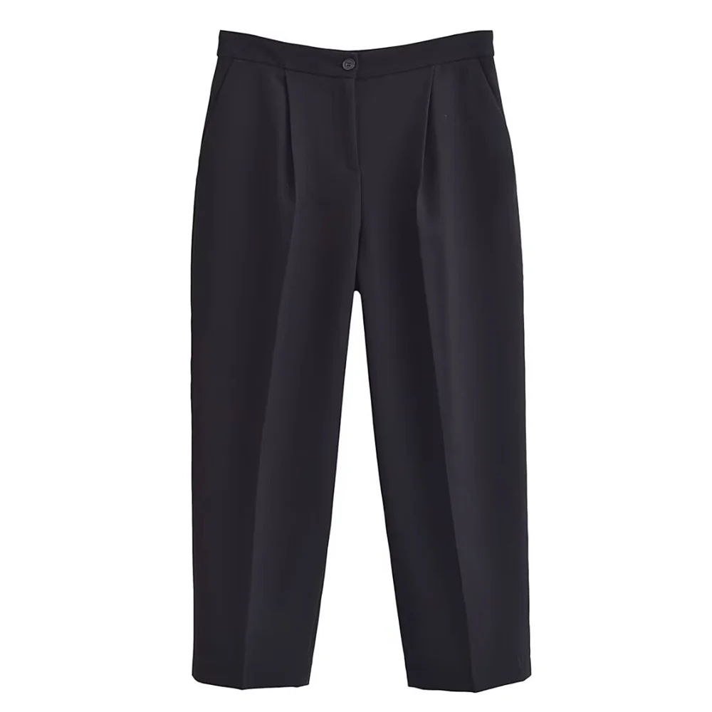 autumn new women's casual long sleeved top with open design, casual suit jacket with pleats and ankle pants set