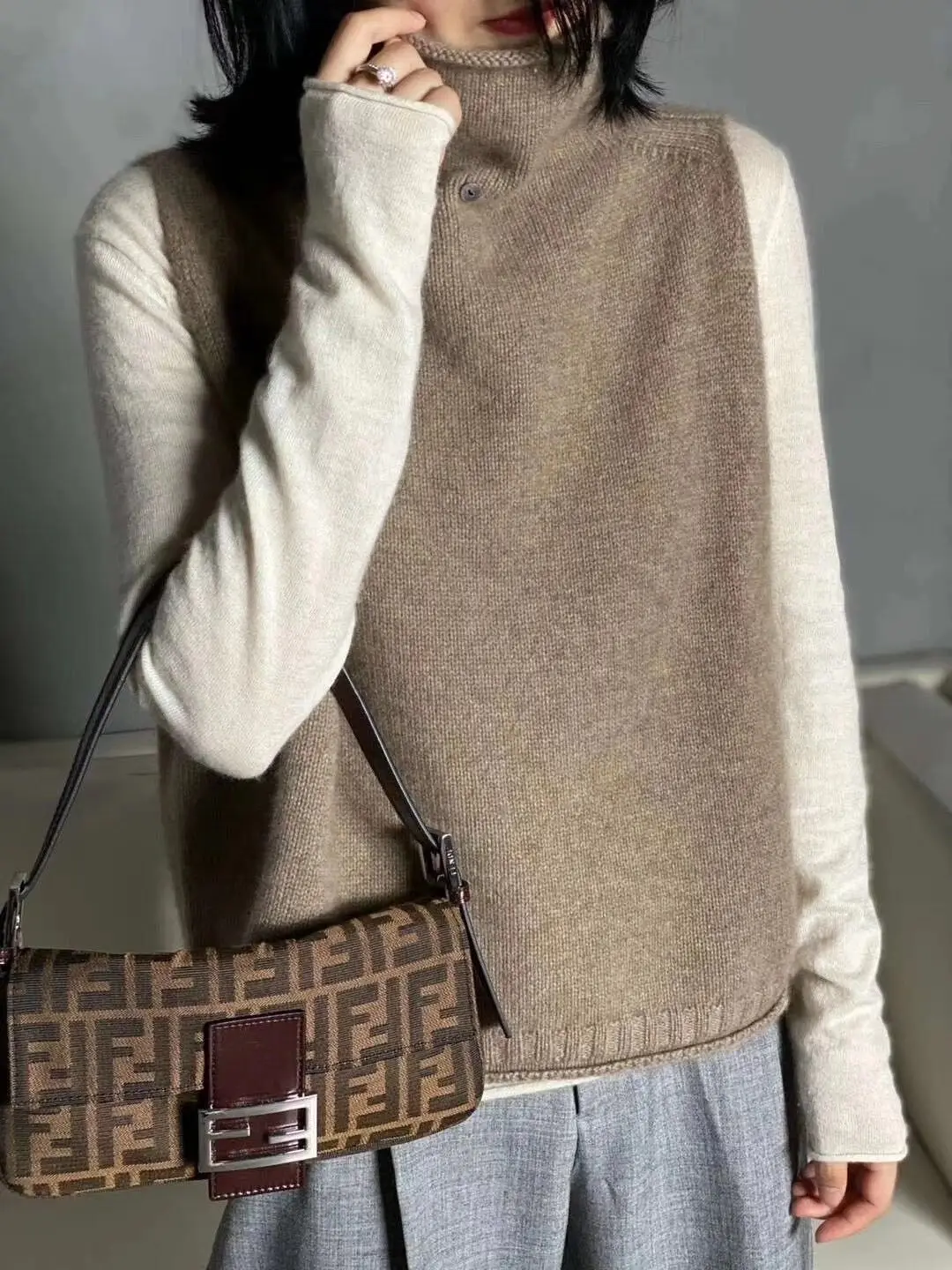 Cashmere Vest for Women, High Neck Pullover, Casual Knit Top, Sleeveless Jacket, Plus Size Waistcoat, Autumn and Winter