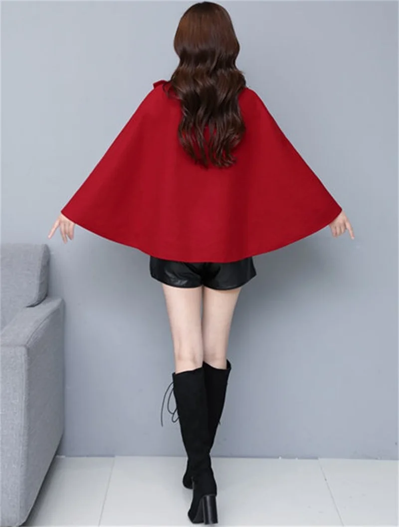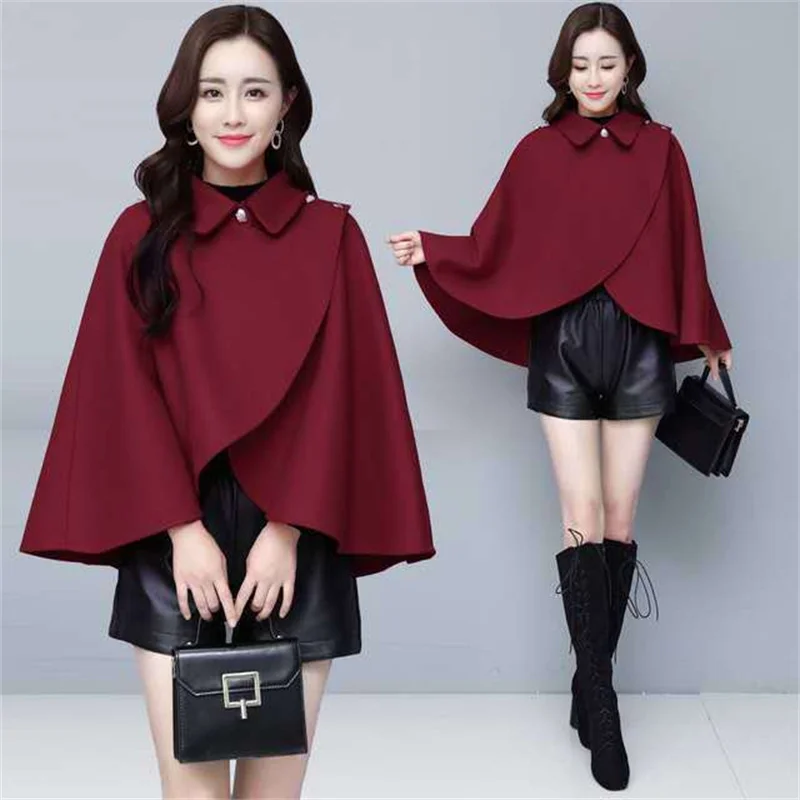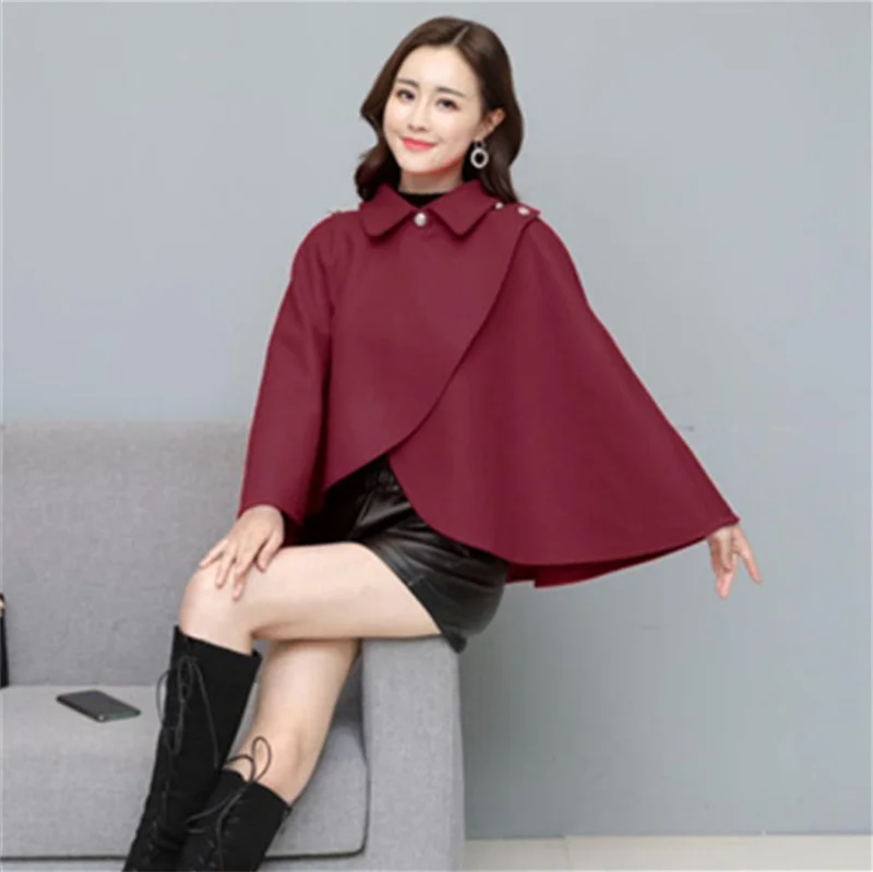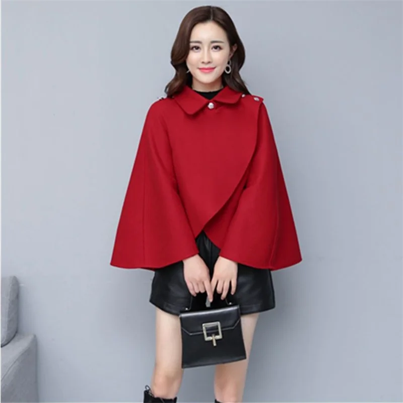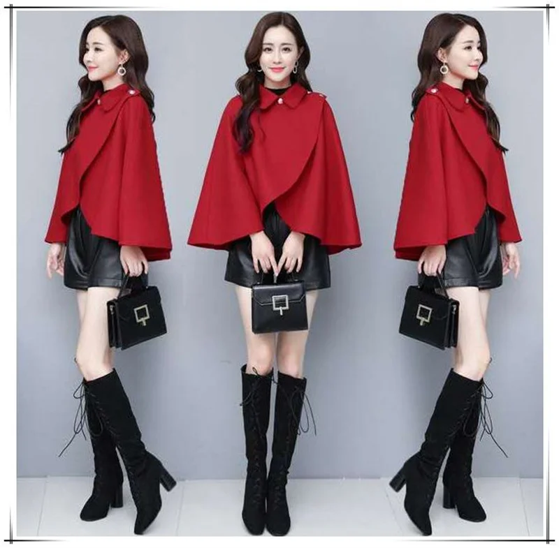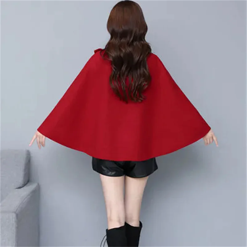 Fashion Woolen Shawl Coat For Women 2025 Autumn Winter New Woolen Jacket Short Outerwear Cape Red Black Coat Tops Female