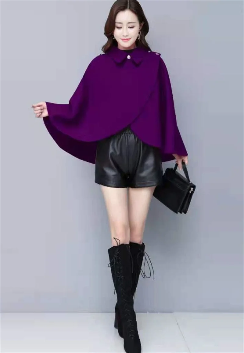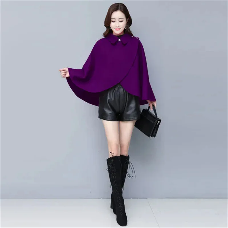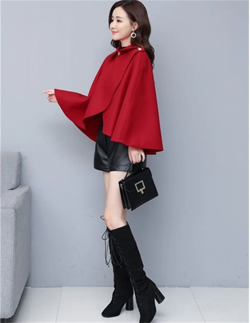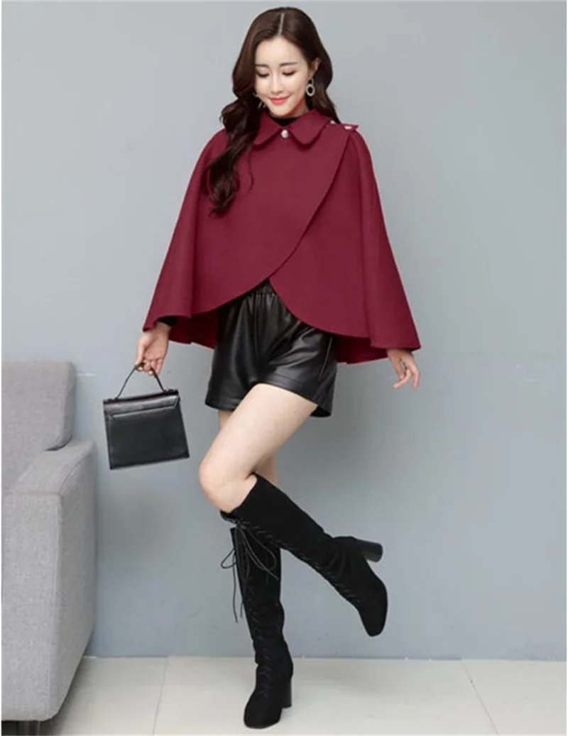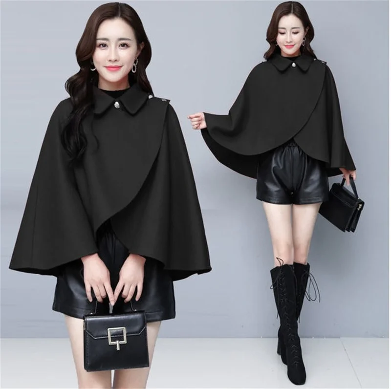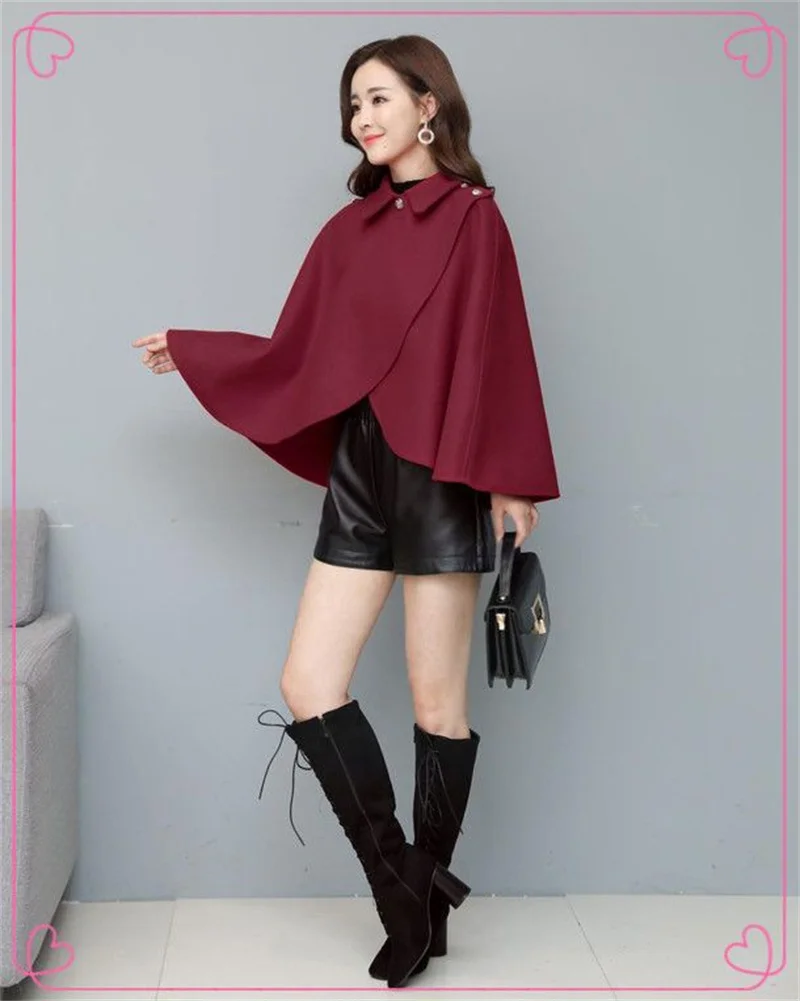 Fashion Woolen Shawl Coat For Women 2025 Autumn Winter New Woolen Jacket Short Outerwear Cape Red Black Coat Tops Female