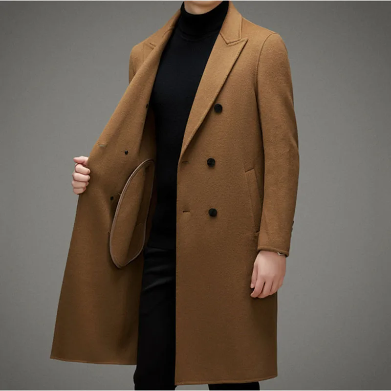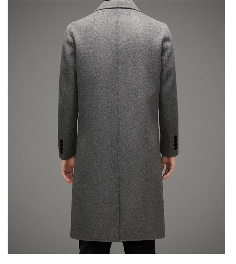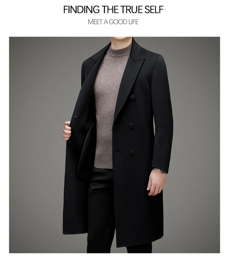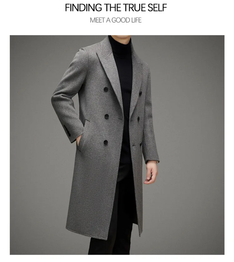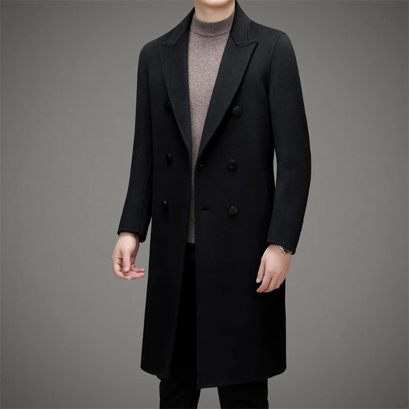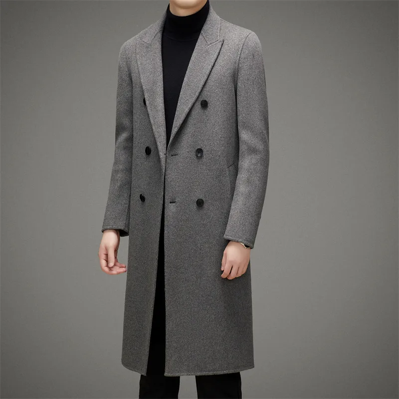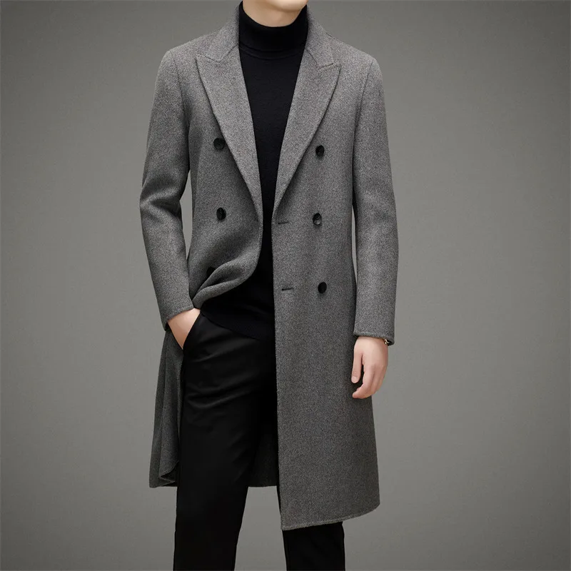 High-end Men's Double-breasted Wool Coat Fashionable Long Wool Knee-length Casual Suit Jacket for Men Peak Lapel Customized Coat