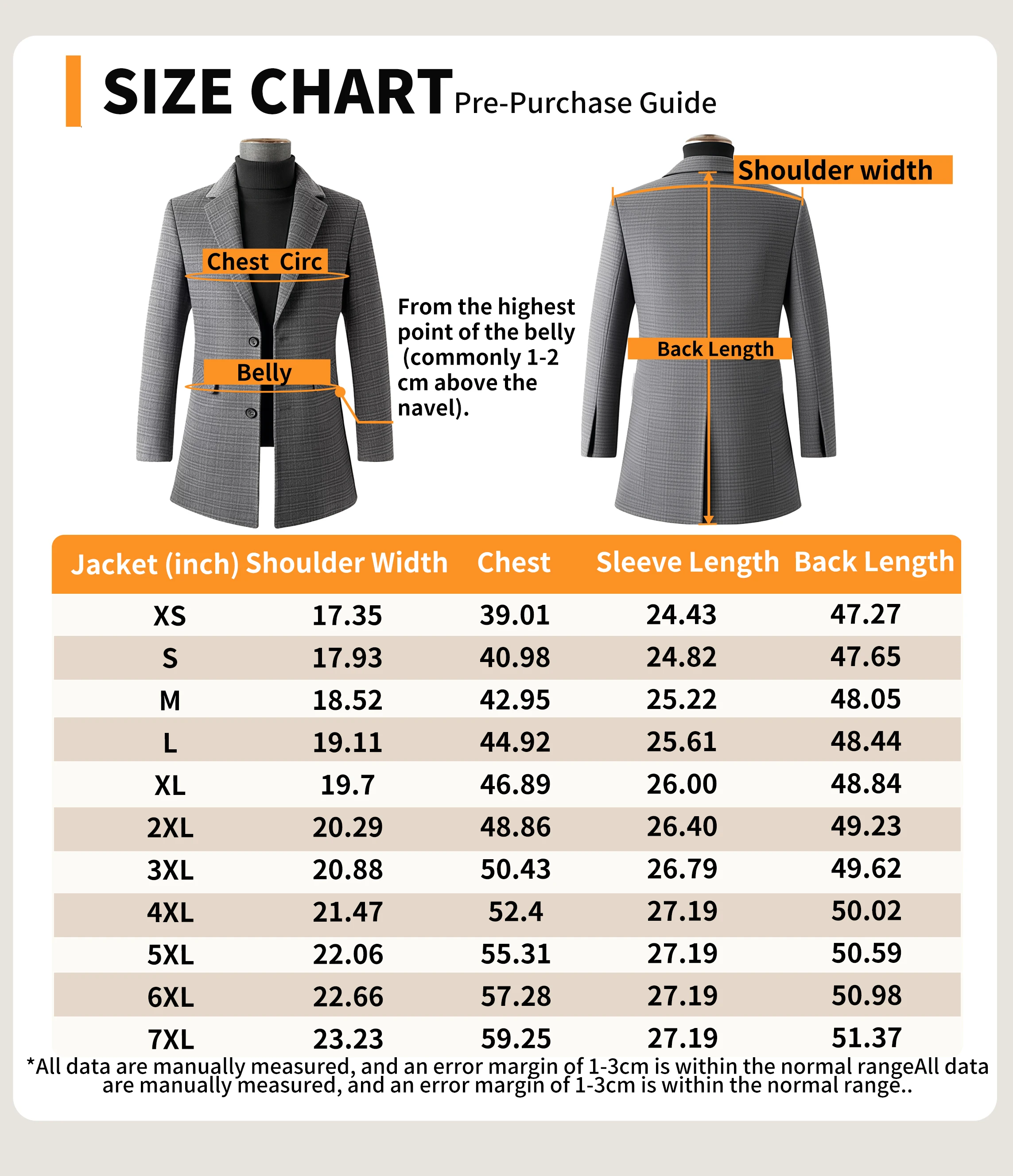 •Due to everyone's different dressing styles and preferences, it is recommended to personally measure your own body size and refer to the size chart