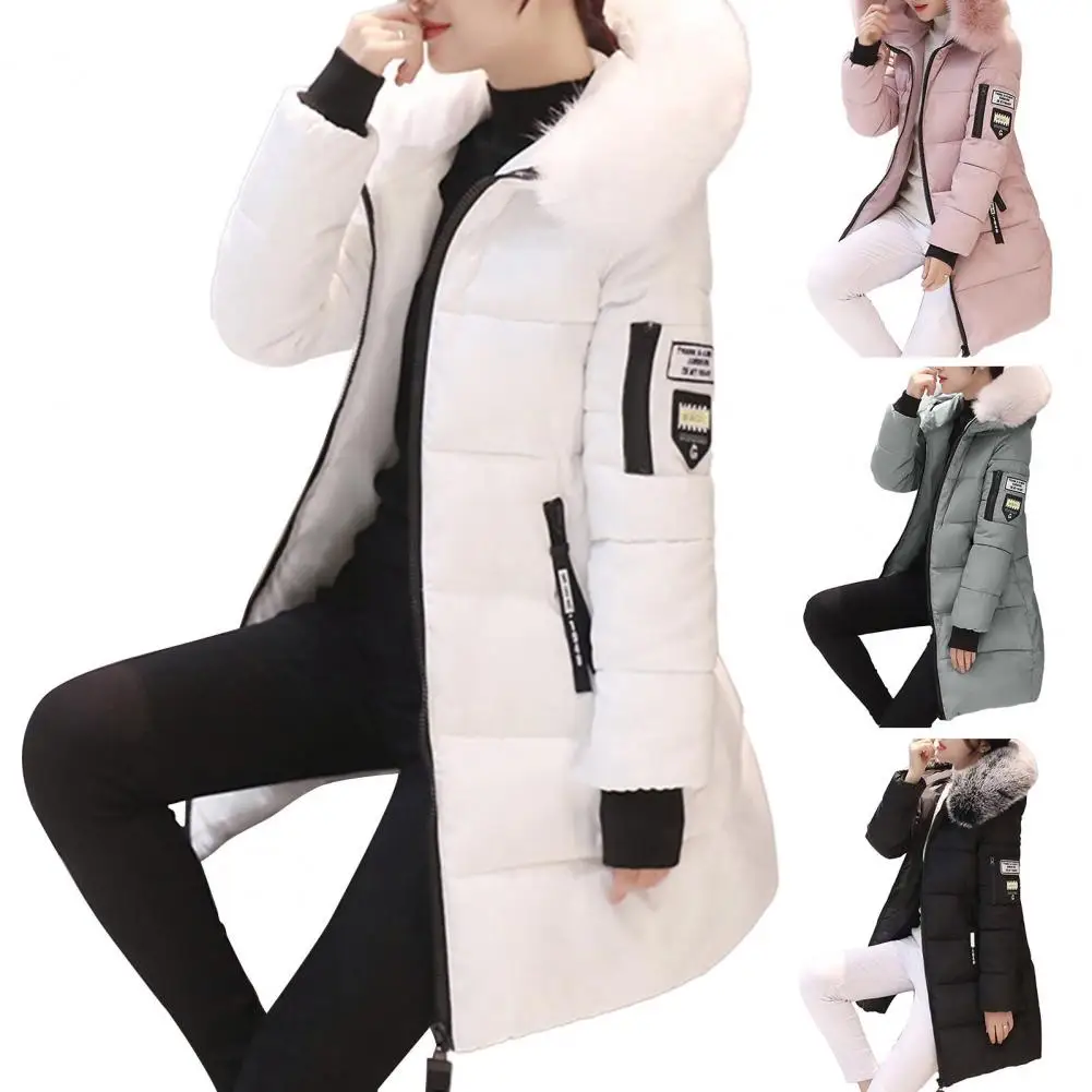 Hooded Cotton Coat Women Hooded Winter Coat Stylish Women's Winter Cotton Coat Thickened Windproof Warm with Hood Zipper Pockets