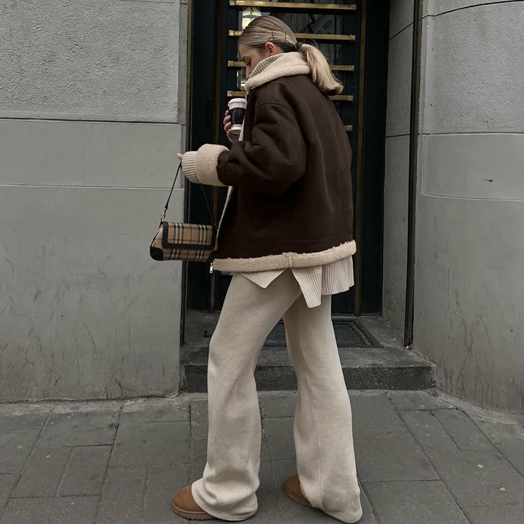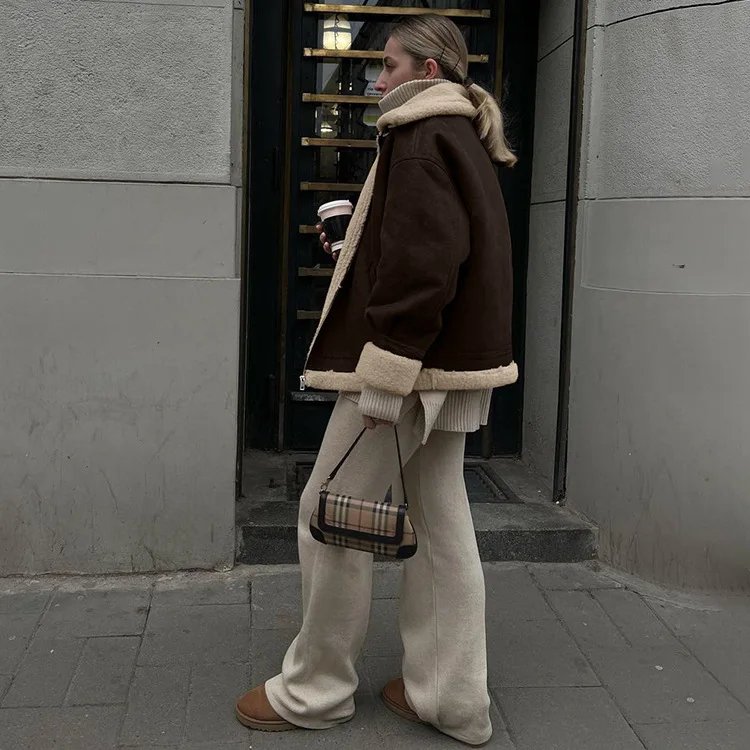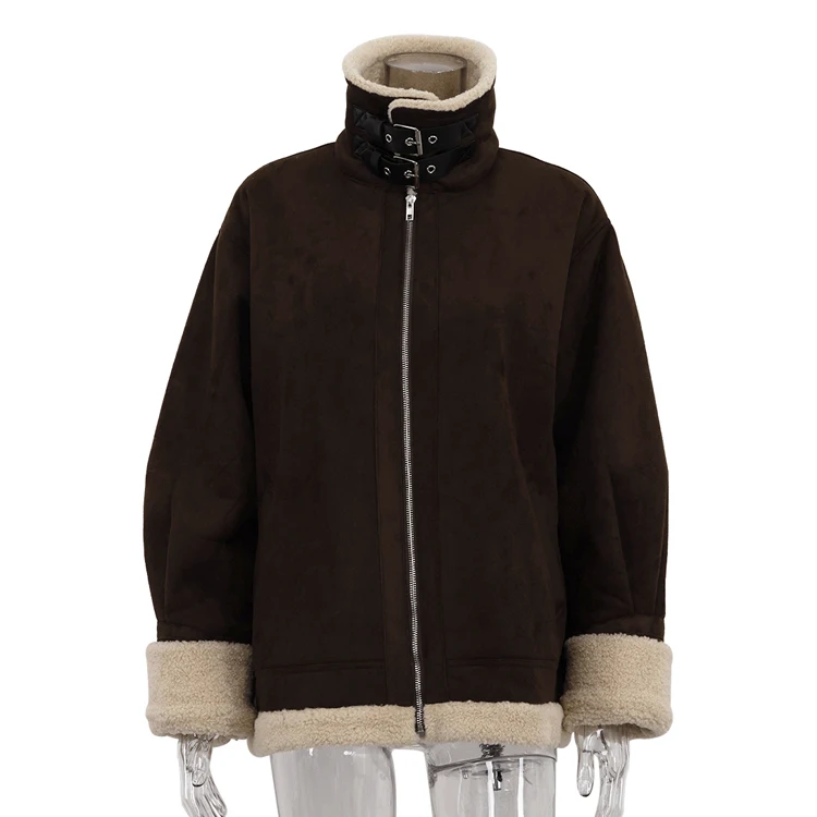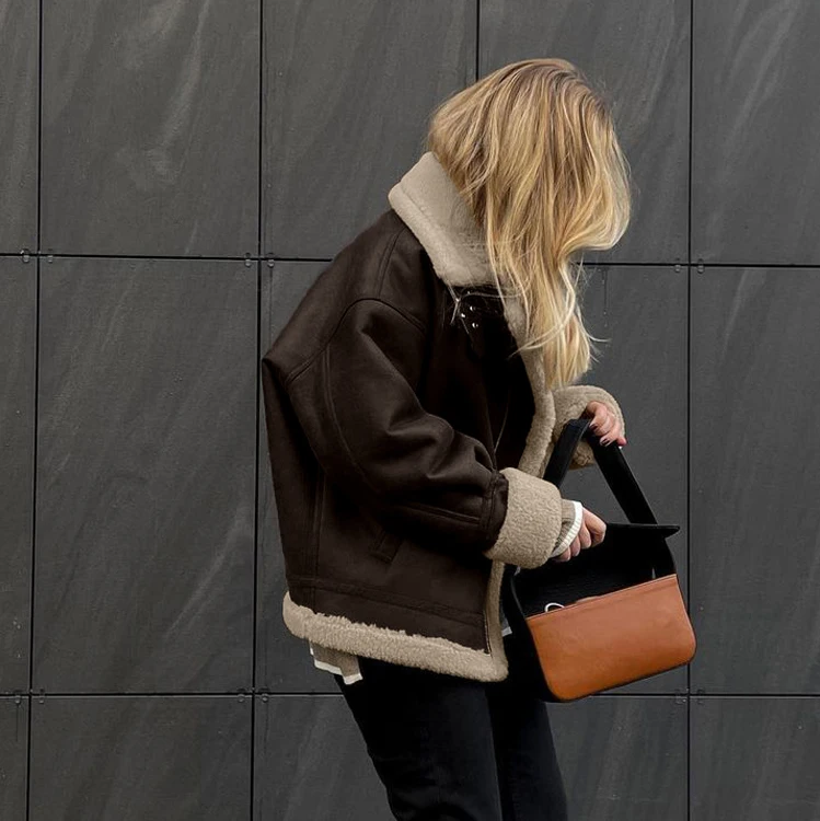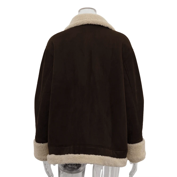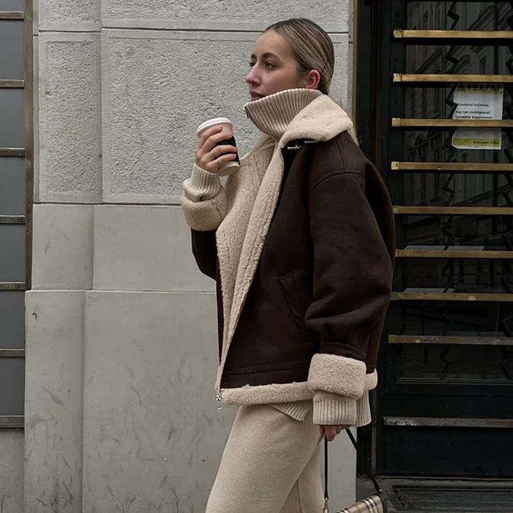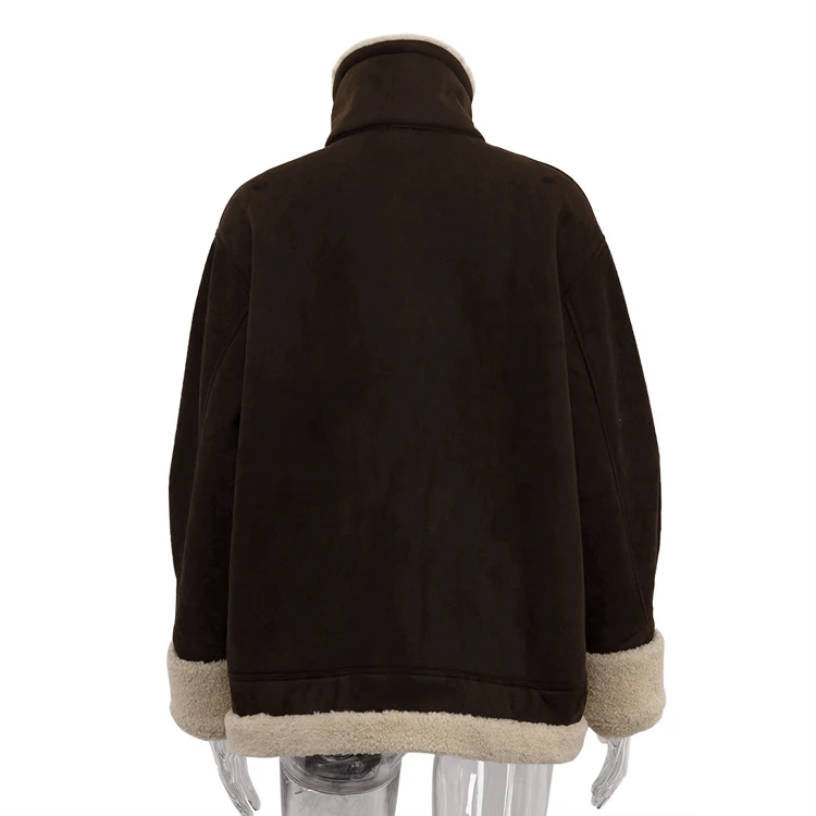 Ladies Warm Wear Custom Women's Clothes 2024 Jackets and Coats Suede Zip up Vintage Sherpa Fleece Winter Jacket Woman