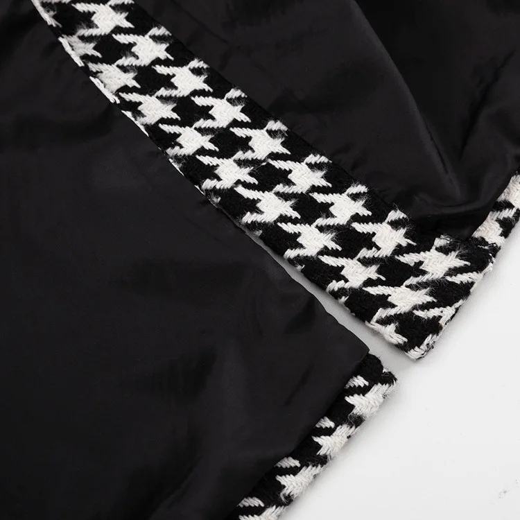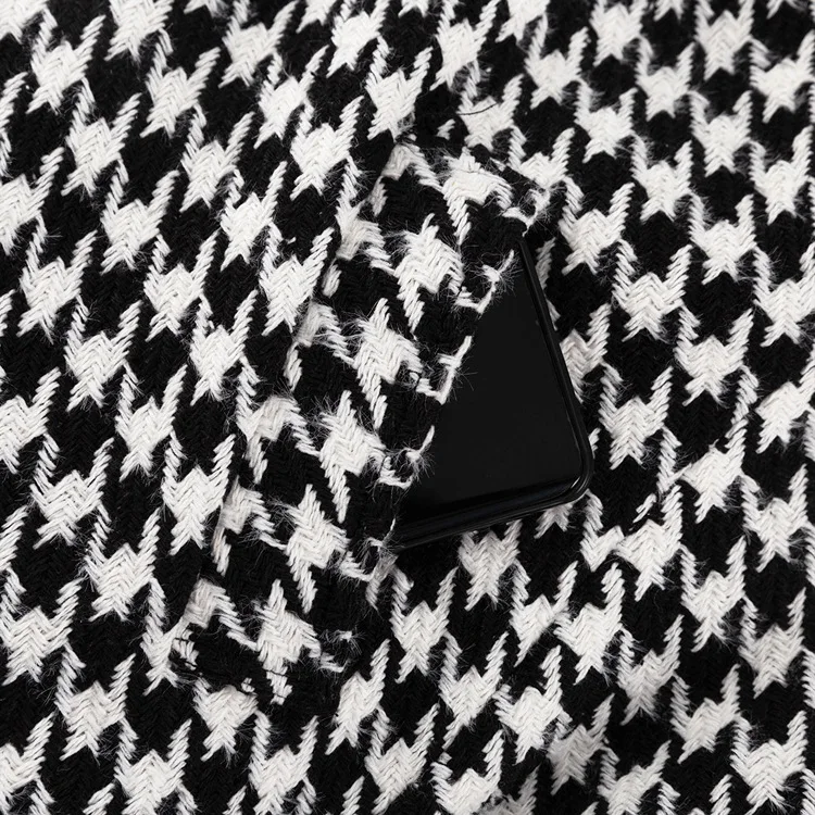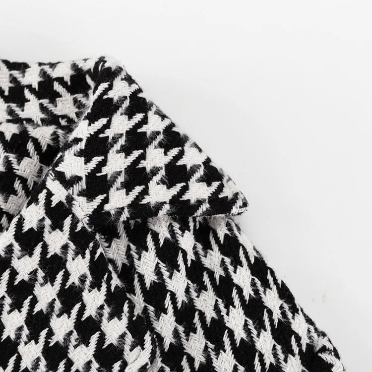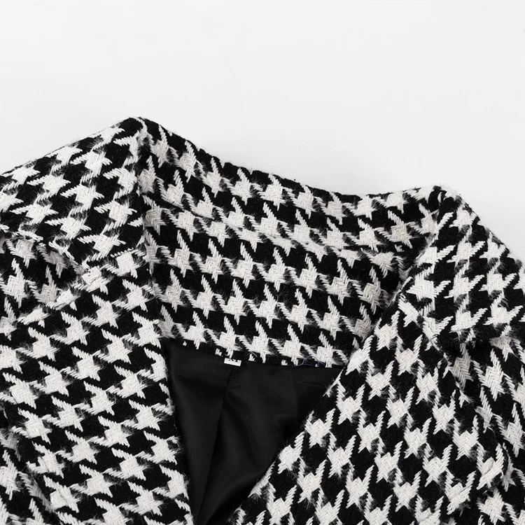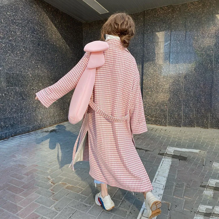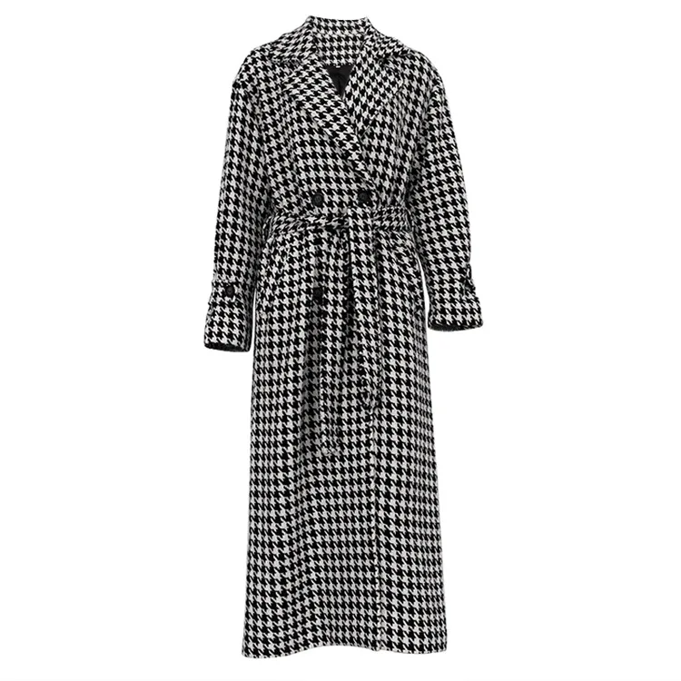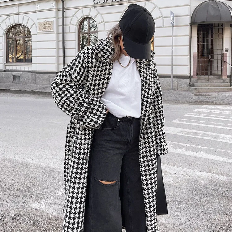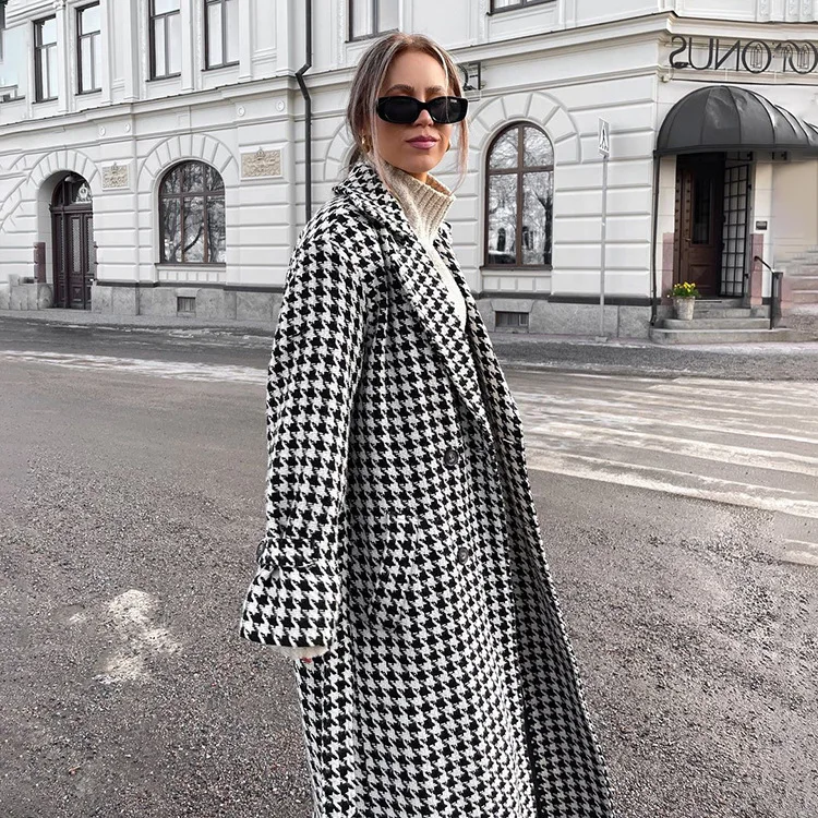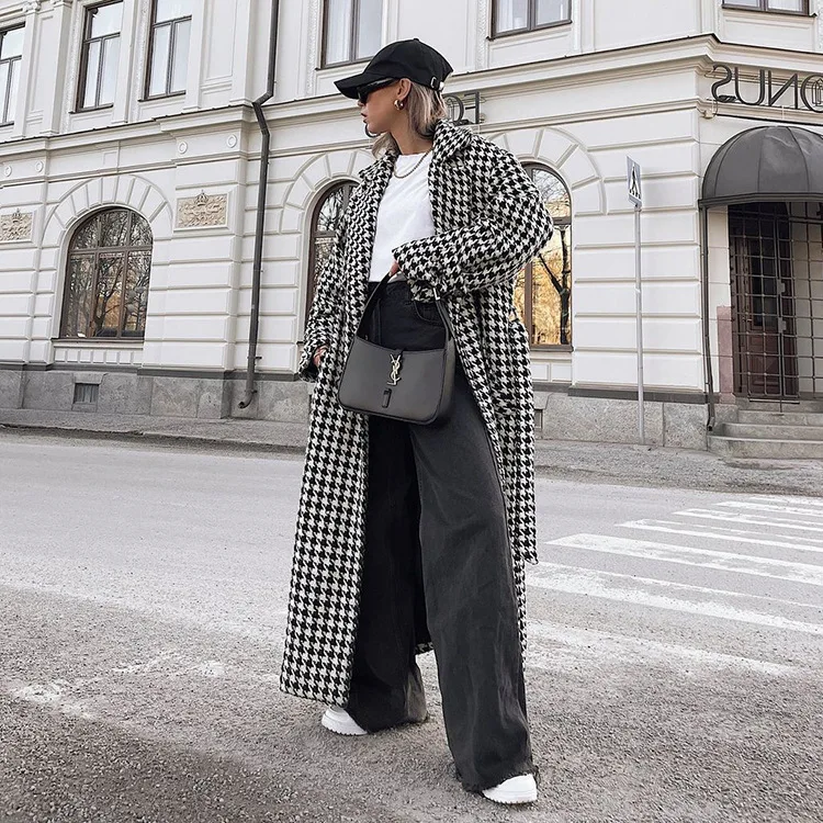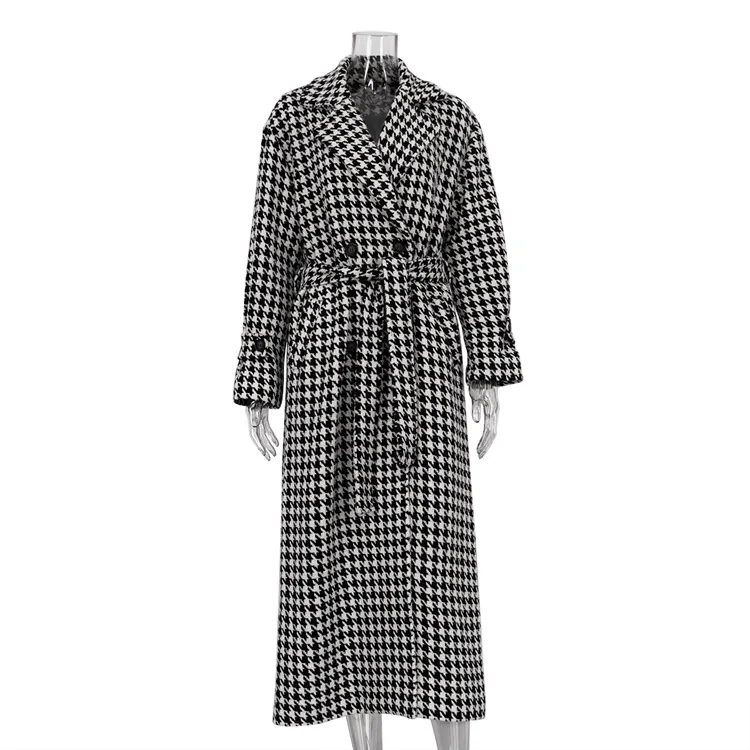 Long Coat Women Coats Work Turn Down Collar Houndstooth Thick Work Trench Streetwear Elegant Jackets Open Stith Autumn Winter