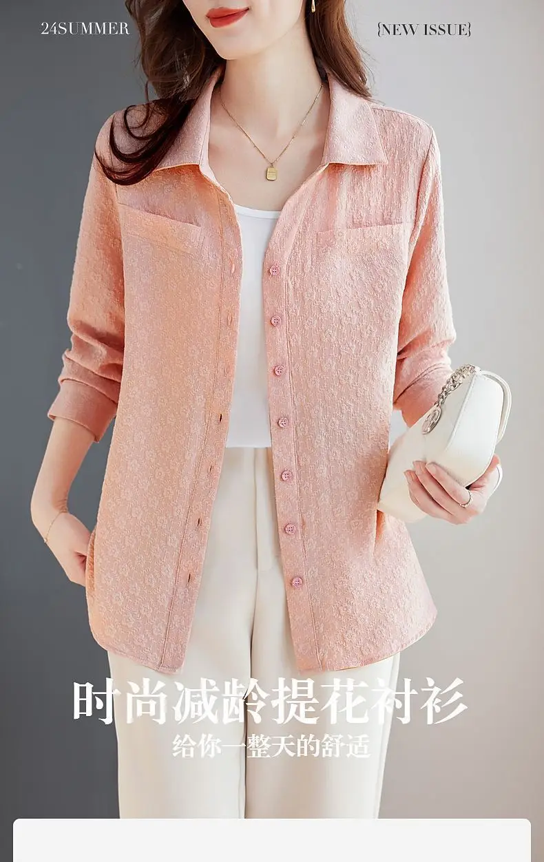 Long-sleeved Shirt for Women Autumn New Fashion Casual Versatile Jacket Fashionable Jacquard Lapel Belly-reducing Top Trendy