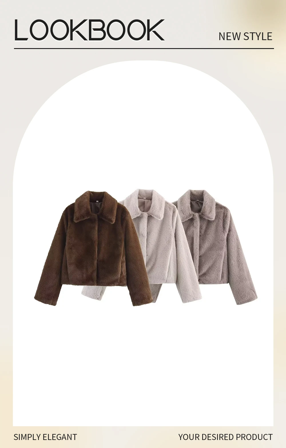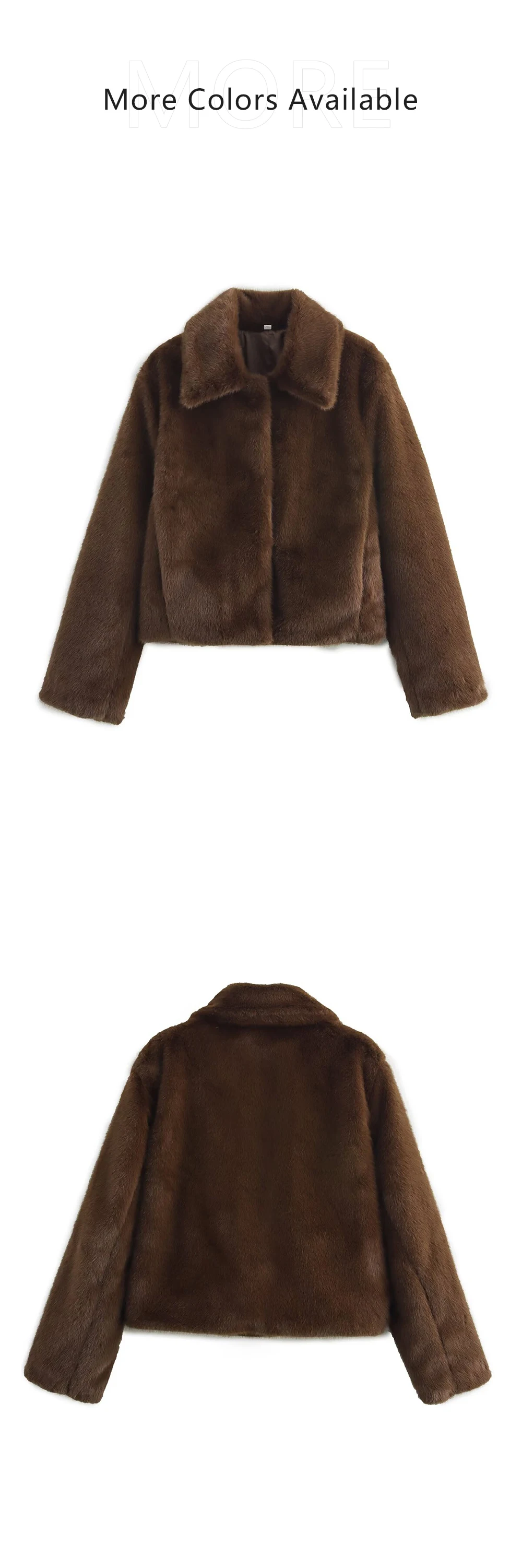 Loose lapel button embellished brown long sleeved jacket for women's autumn and winter collection