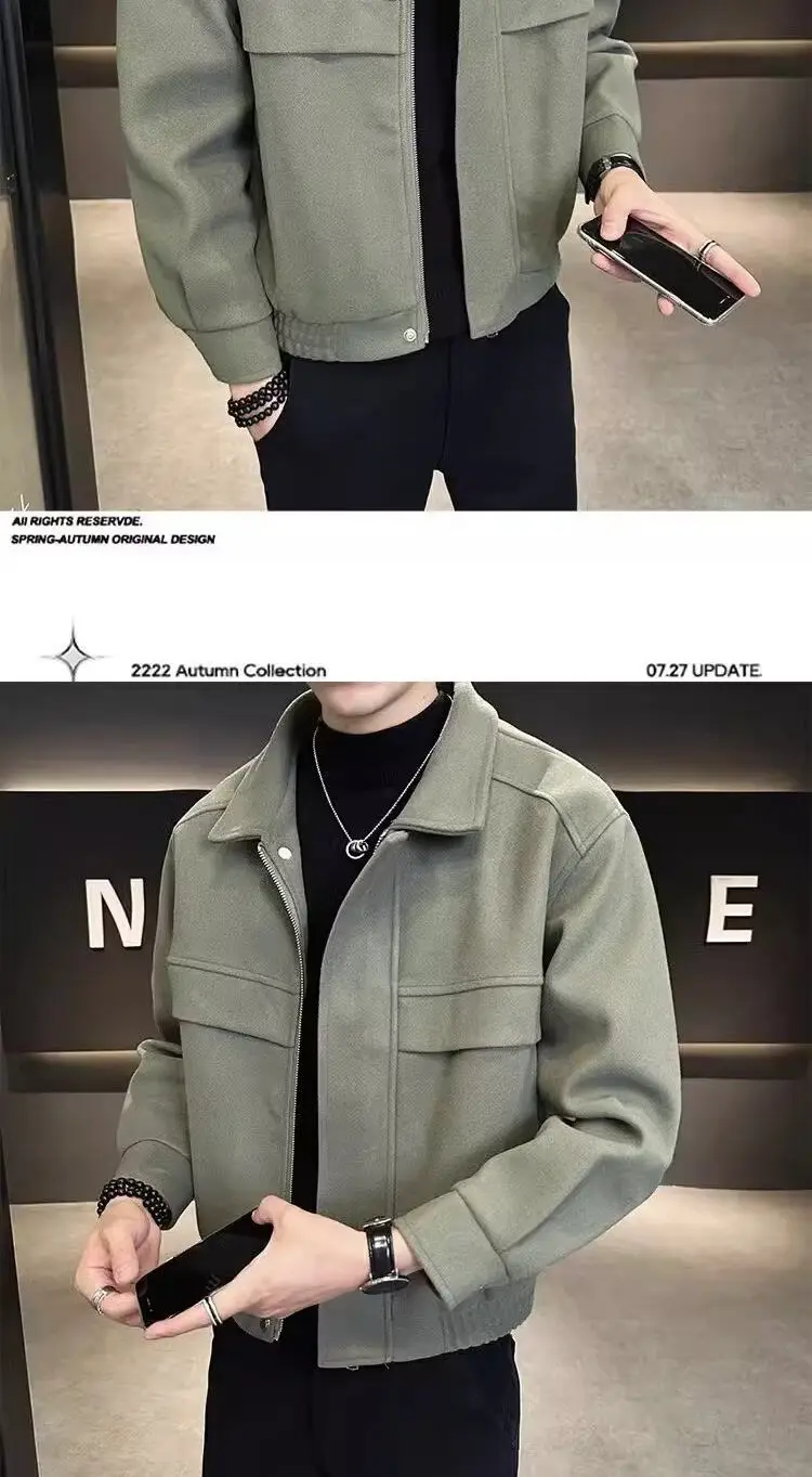 Stylish Wool Jacket for Men Short Trendy Brand Thickened Trendy Casual Versatile High-end Men's Wool Top