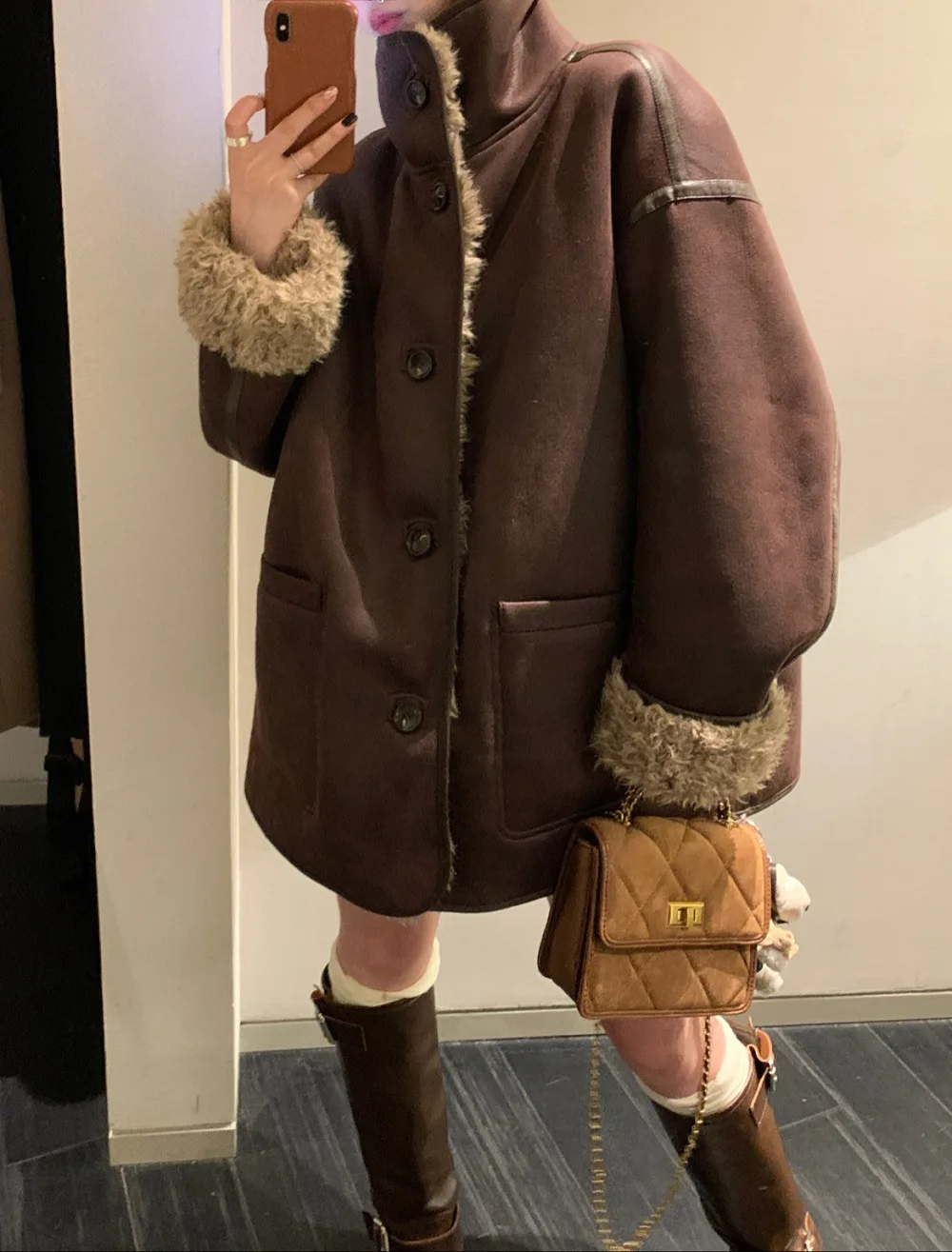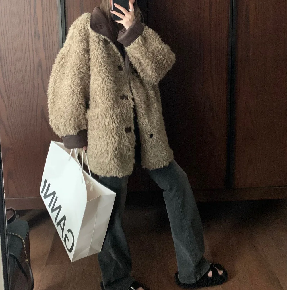 Two-sided Lamb Wool Coat Women's Mid-winter Long Loose Fur Premium Warm Coat