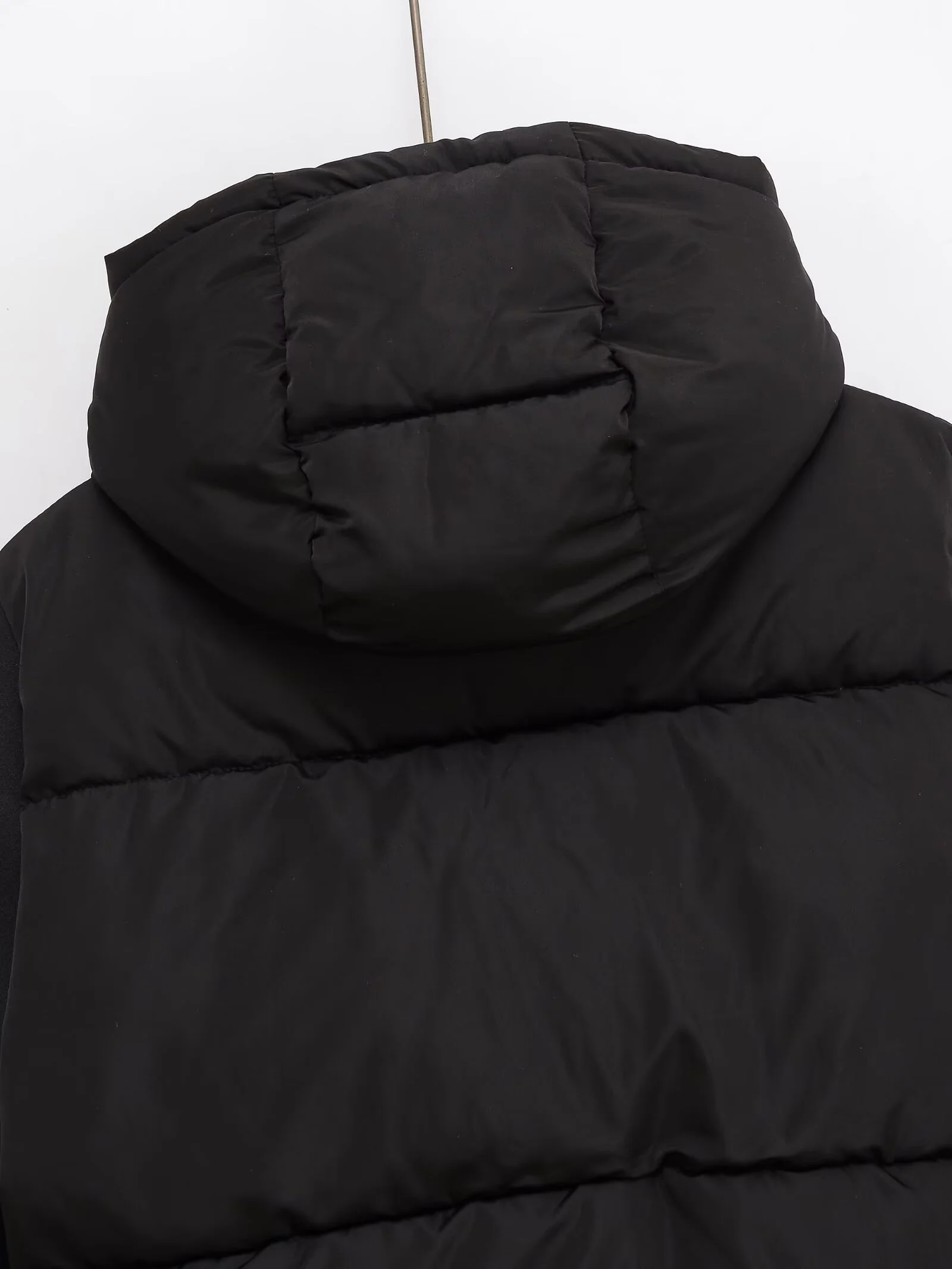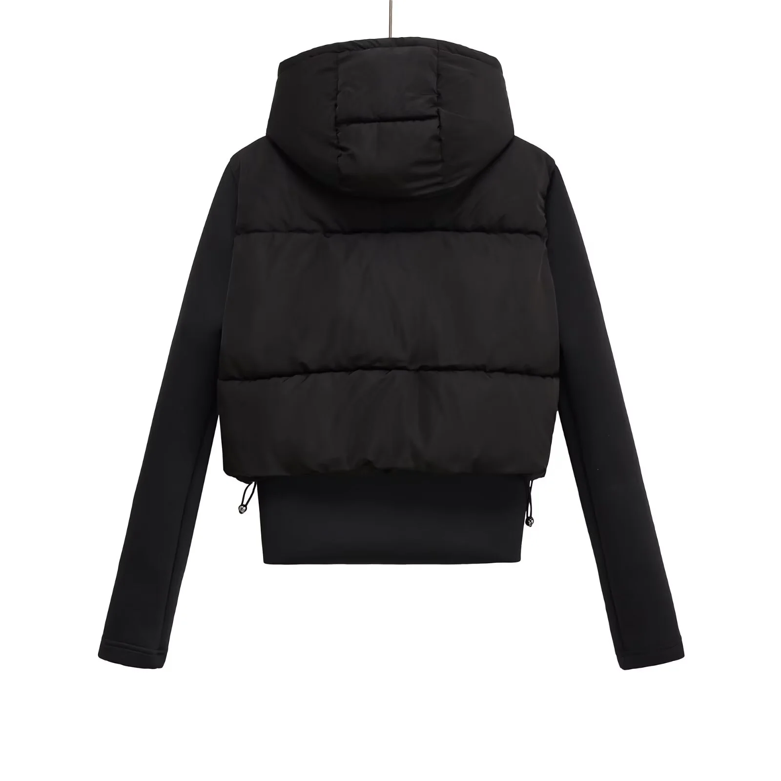 UNIZERA2025 autumn new women's casual fashion slim stretch fabric splicing cotton coat warm hooded cotton coat