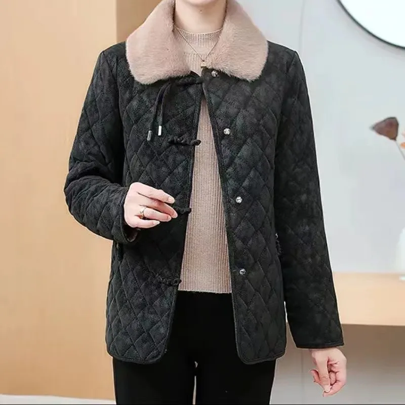 Winter Cotton Coat Women New Female Lapel Warm Parkas Overcoat Cotton-Padded Jacket Quilted Plaid Outerwear