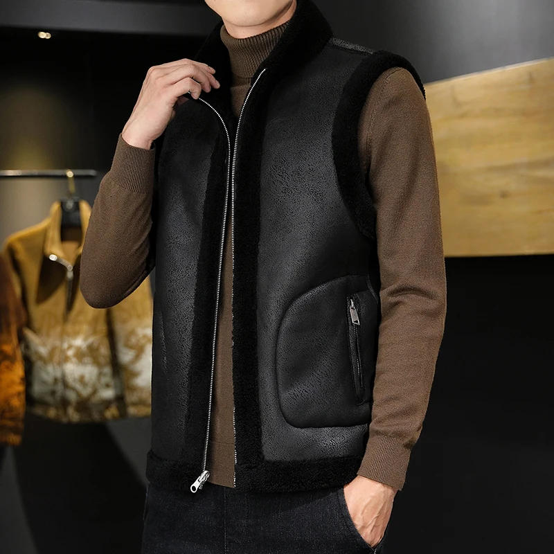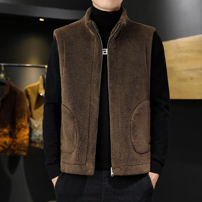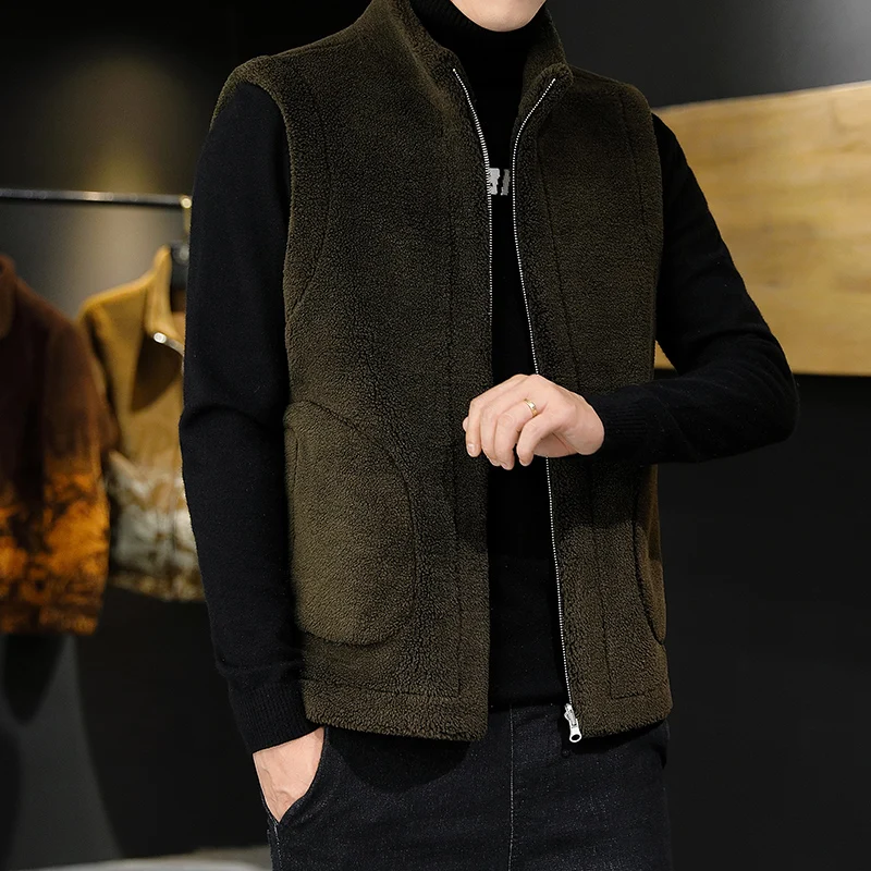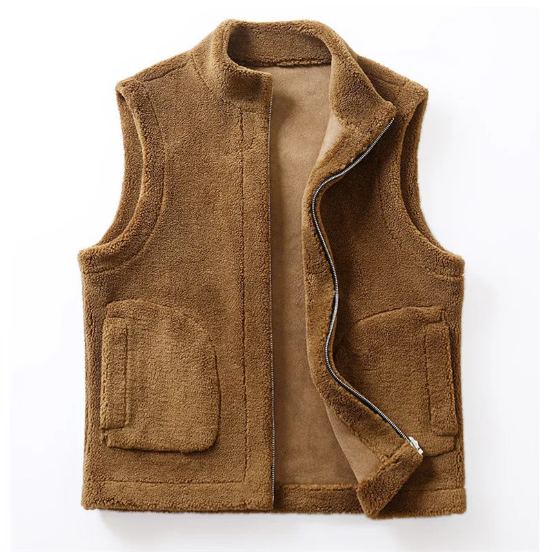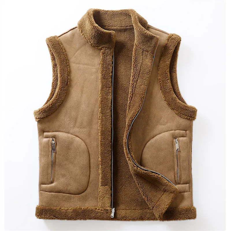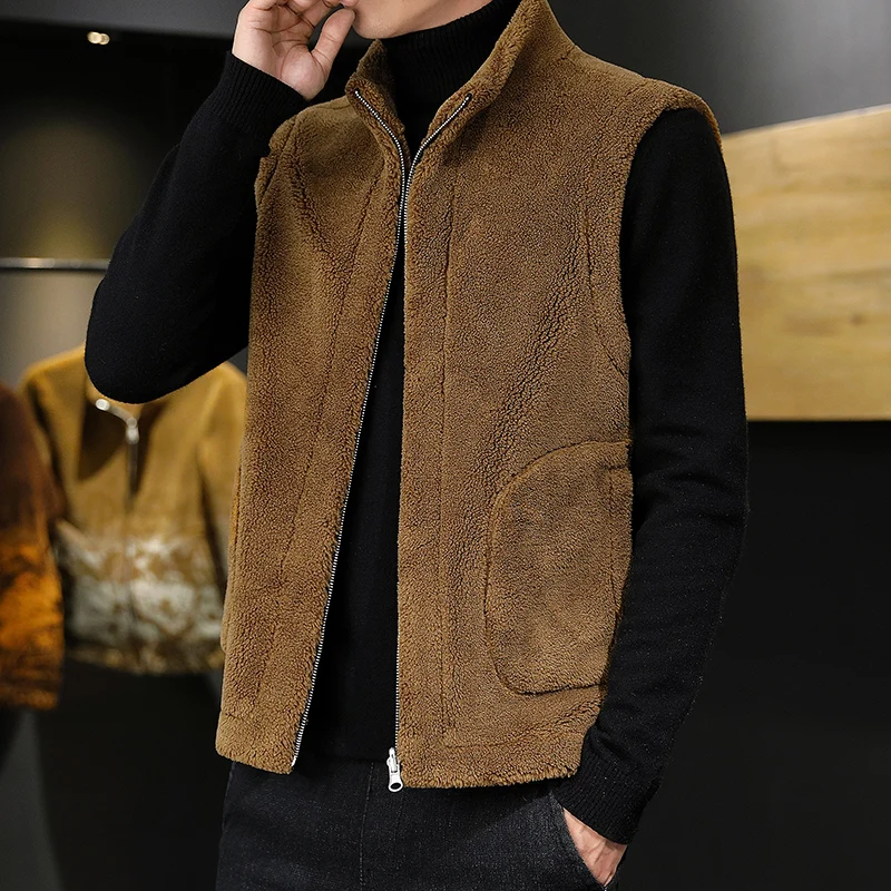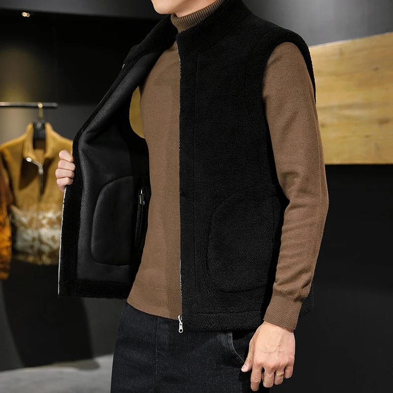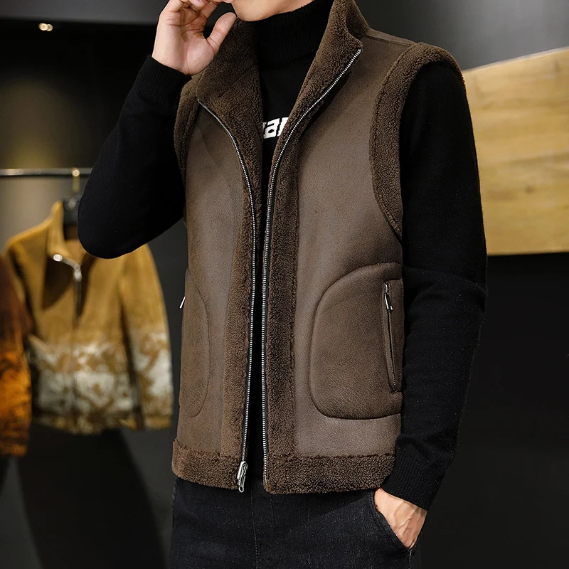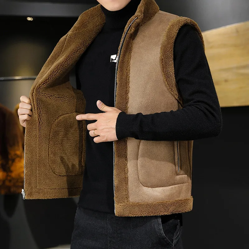 Winter Lamb Wool Vests Men Warm Coat Fashion Casual Thick Stand Collar Sleeveless Jacket Can Be Worn On Both Sides Waistcoat Man