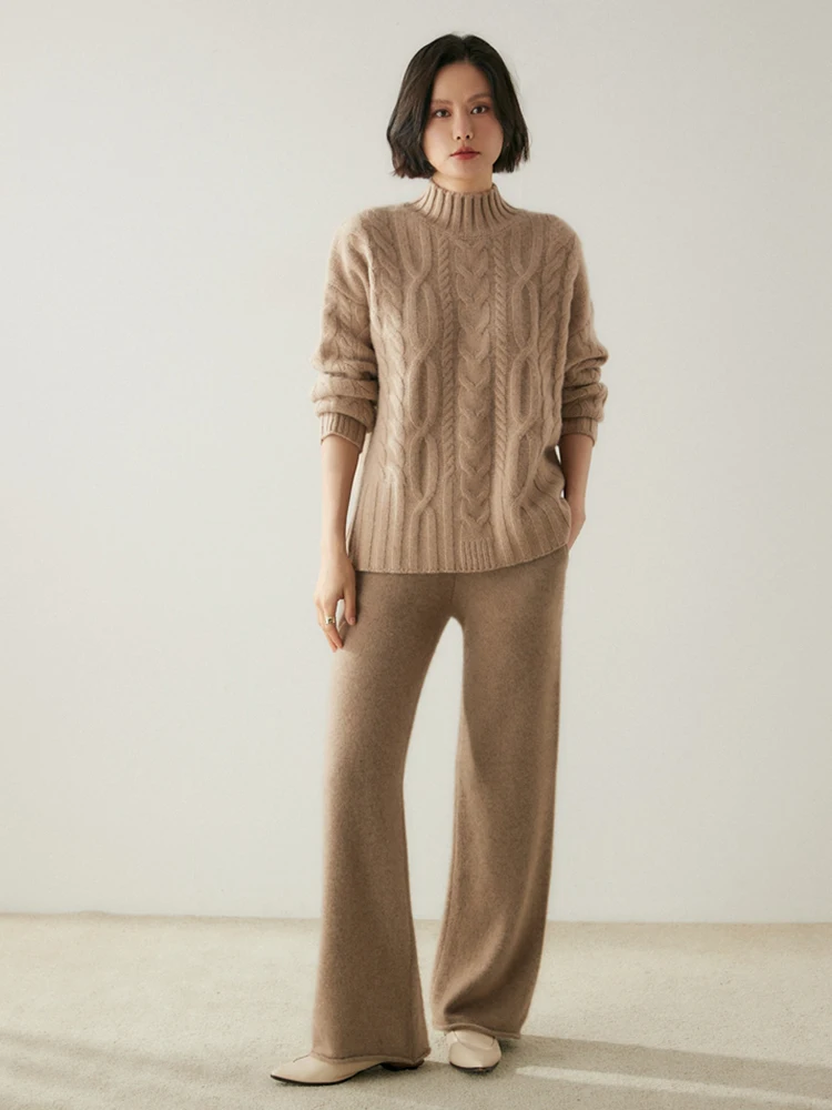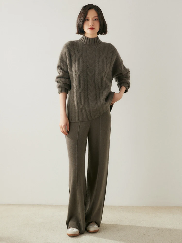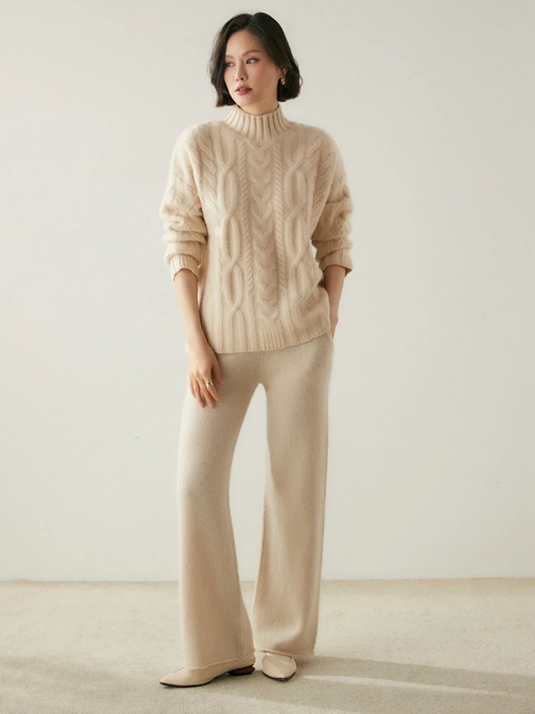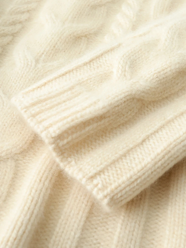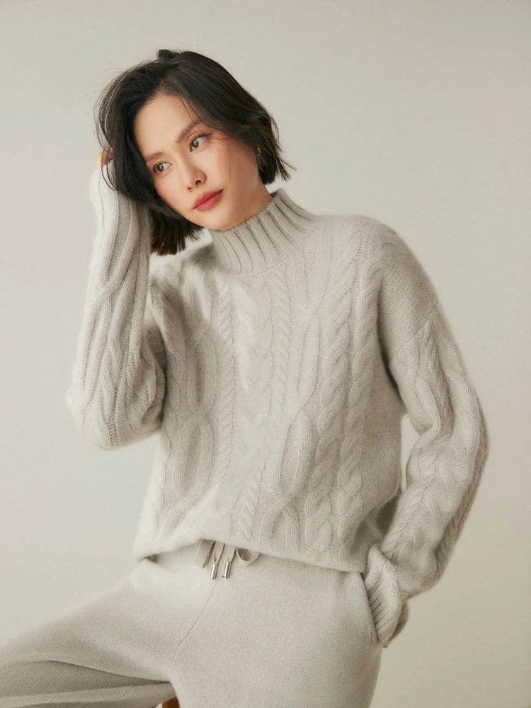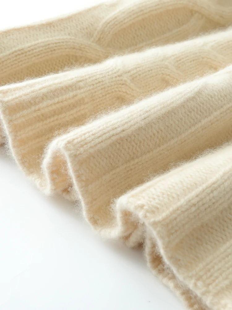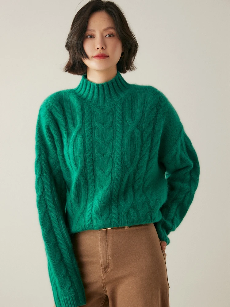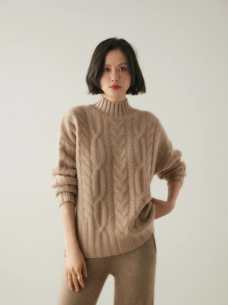 Women 100% Cashmere Sweater Mock Neck Pullover Cable Knitting Vintage Loose Style Thickened Cashmere Knitwear Autumn Winter Tops
