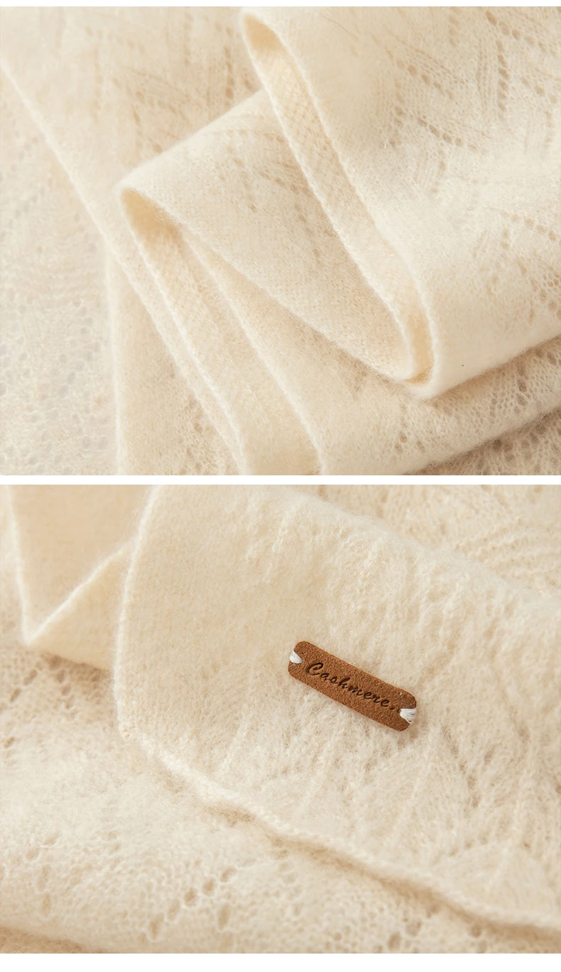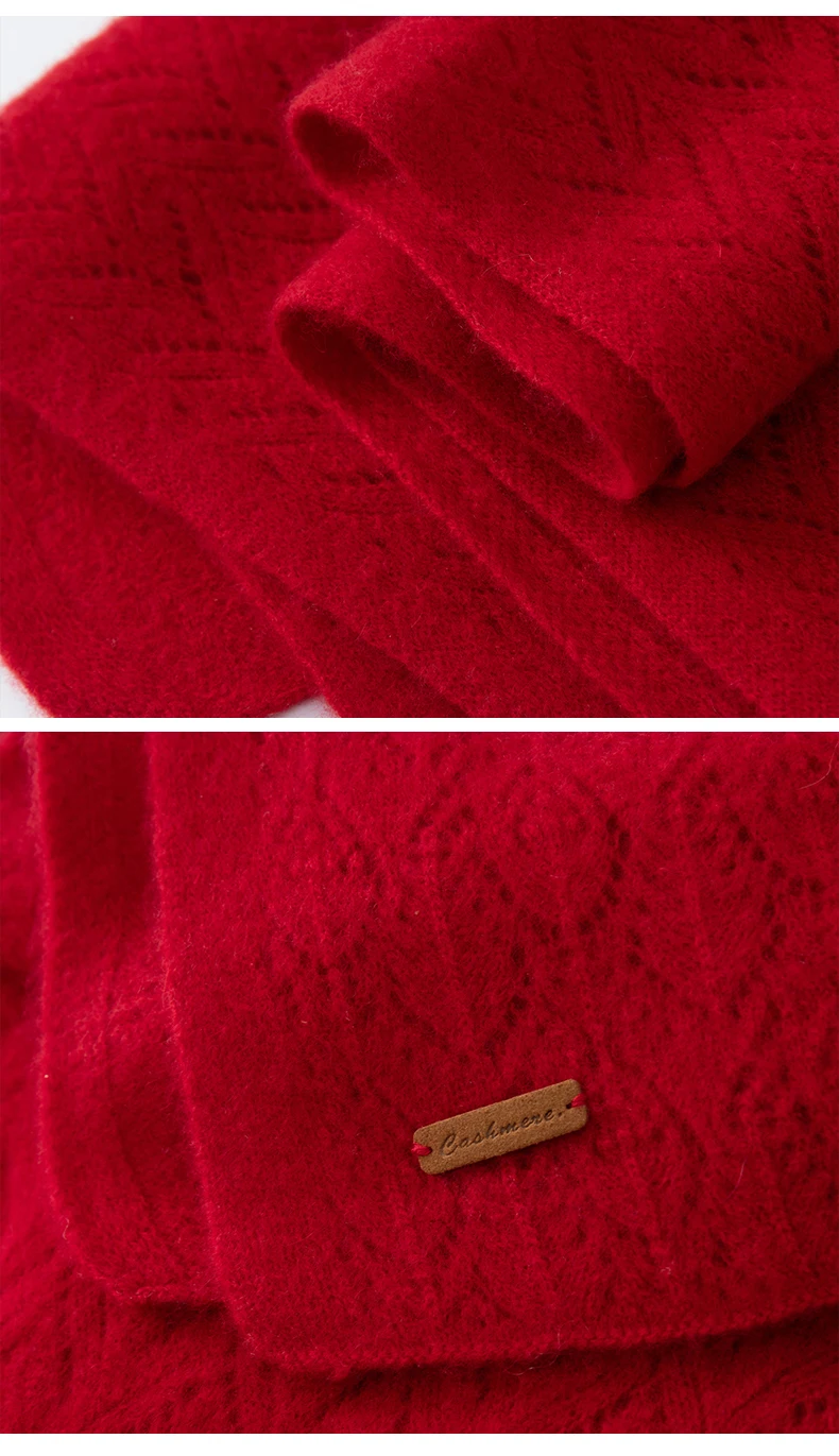 Women 100% Pure Cashmere Knit Scarf Patterned Winter Warm Soft Cozy Fashion Casual Neck Warmer Cold Weather Accessory