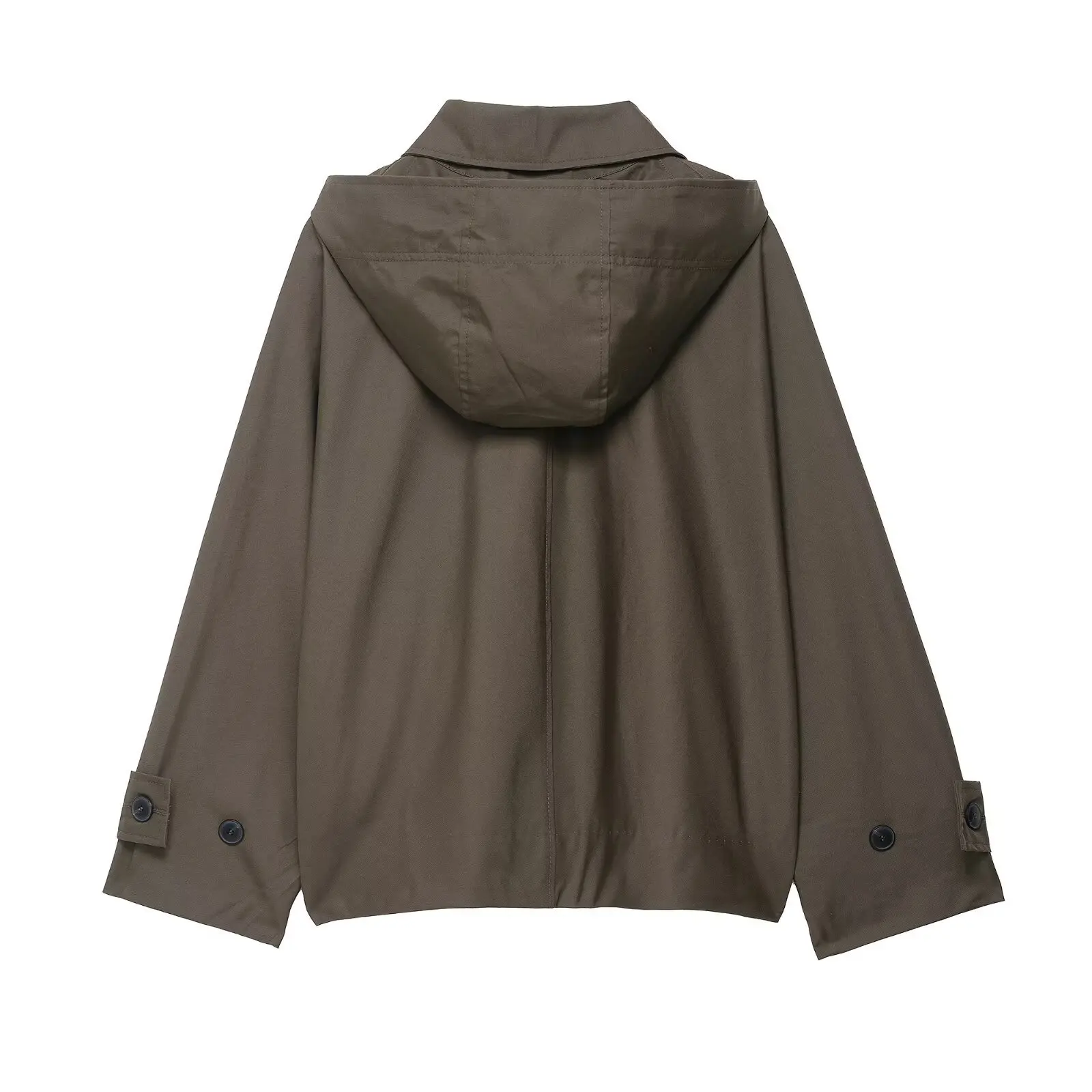 Women Casual Loose Solid Hooded trench coat 2025 Autumn Women Lapel Single Breasted Jacket Windbreaker Female Outwear