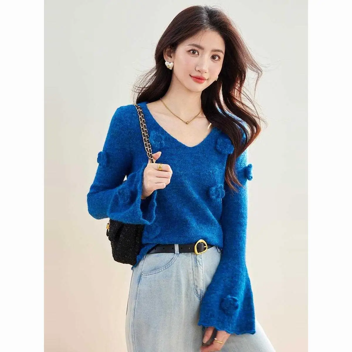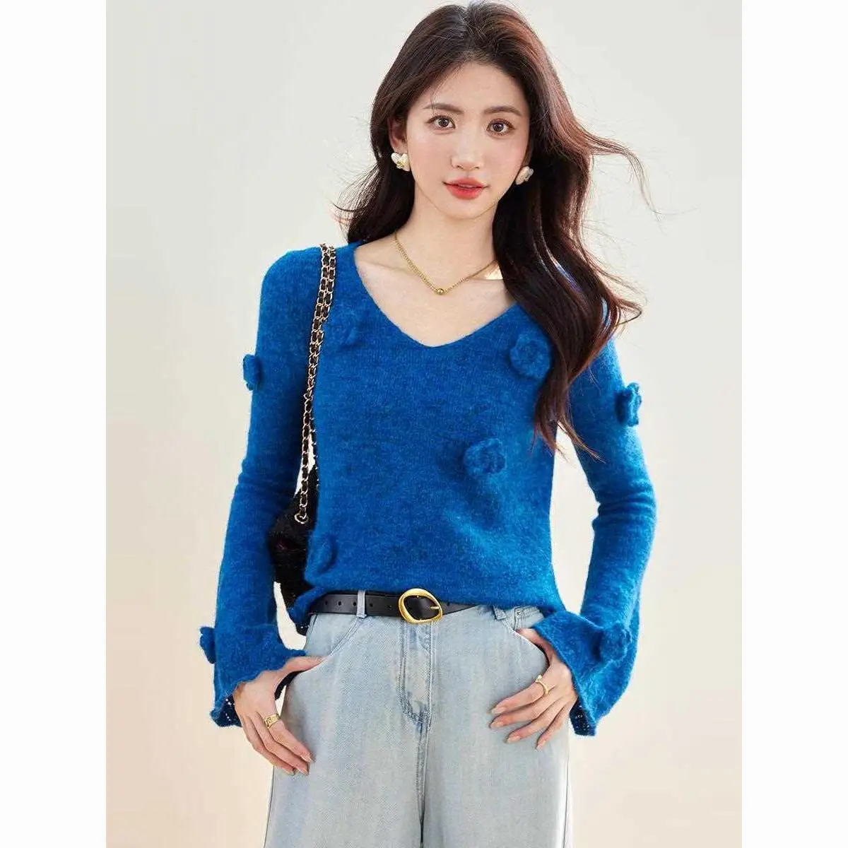 Women Clothes Spring Autumn Fashion Korean Solid Color V-neck Knitting Femme All-match Appear Thin Pullovers Soft Knitwear Tops