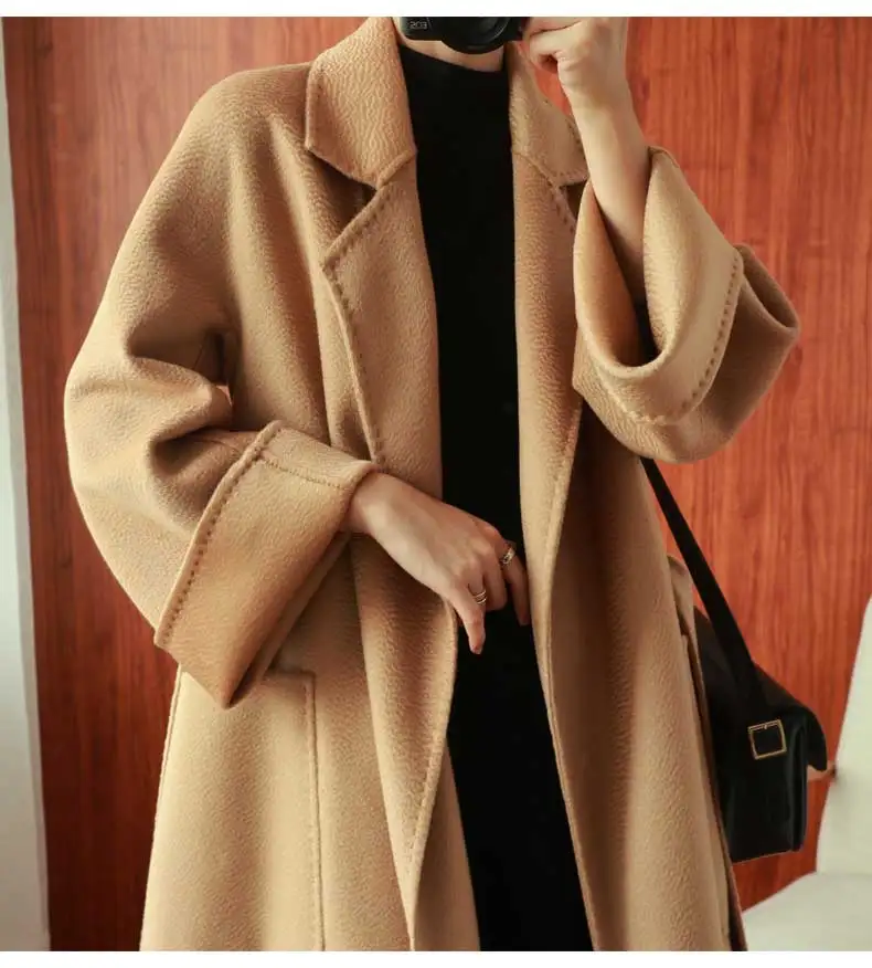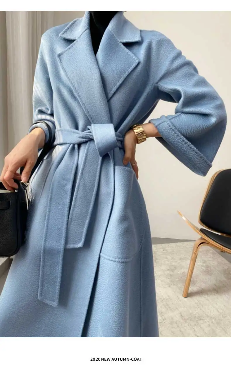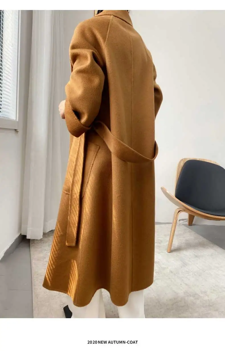 Women Double-Sided 20% Cashmere Wool Coat Jacket Women Long Beautiful Woolen Winter Autumn Warm Fashion Water Ripple Cloak