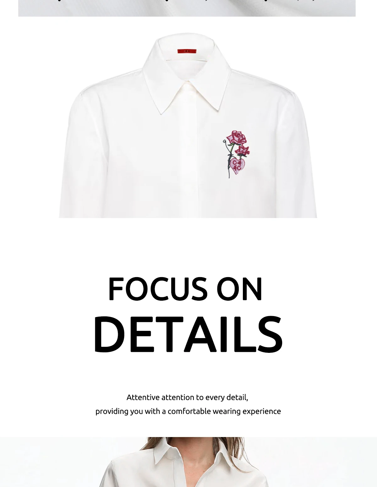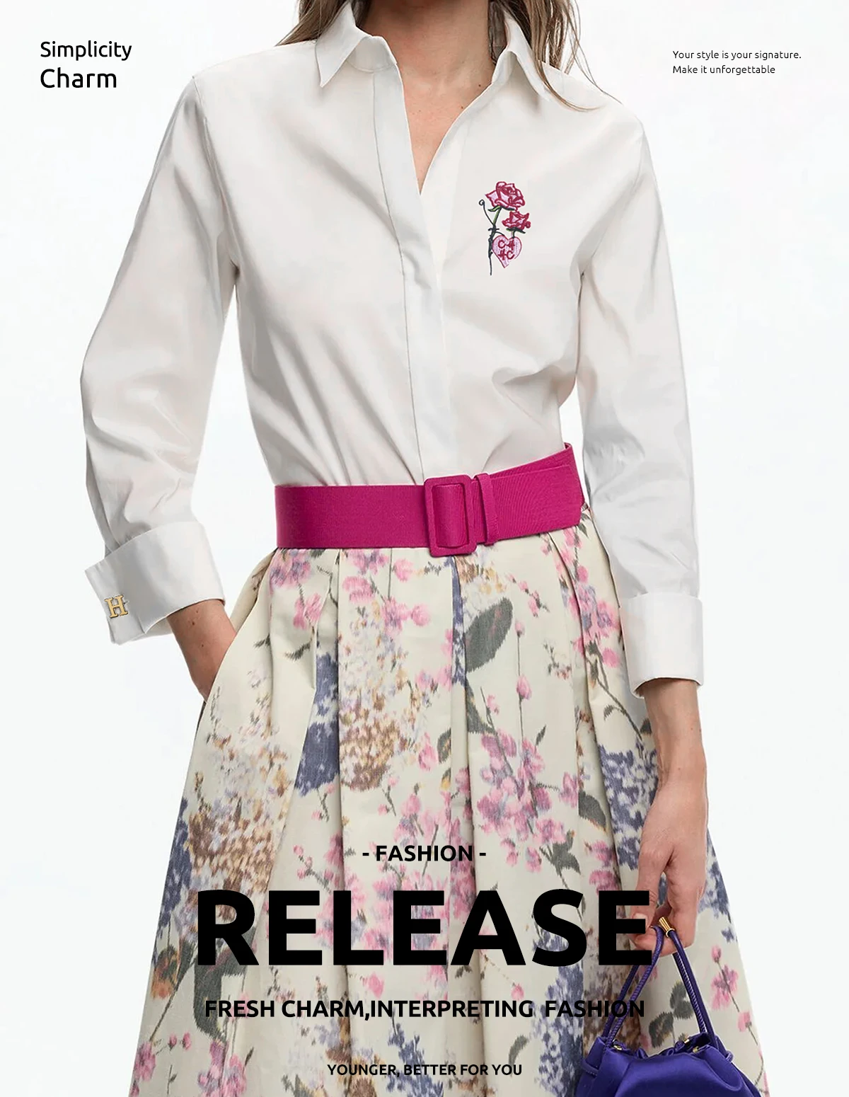 Women Shirts Casual Long Sleeve Blouse Embroidered Flowers Elegant Lapel Loose Shirt Spring Summer Solid Office Lady Tops