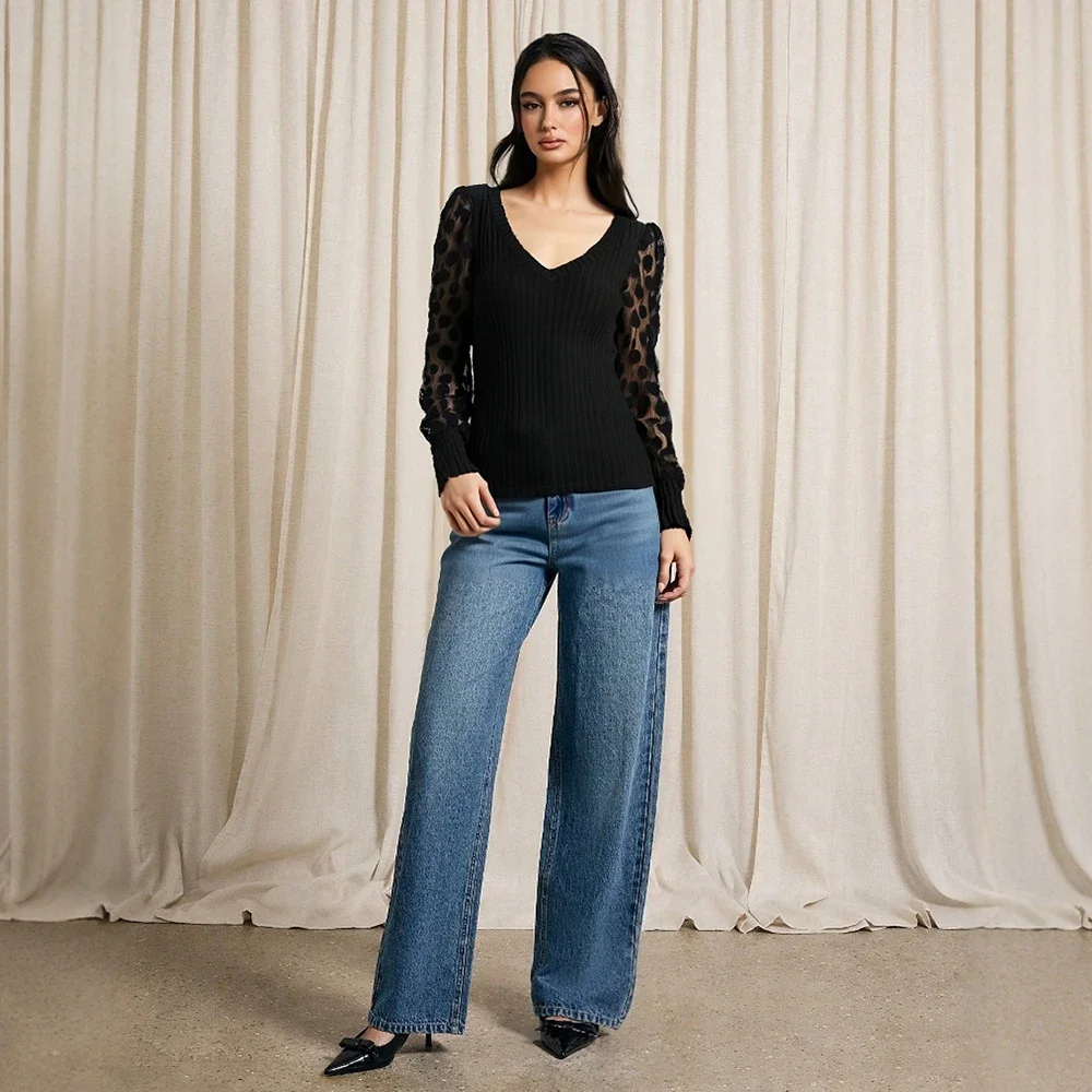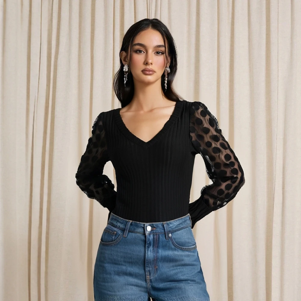 Women's Blouses Spring Fashion Sexy Office Lady See-Through Long Sleeve V-Neck Skinny Fit Dating Blouses