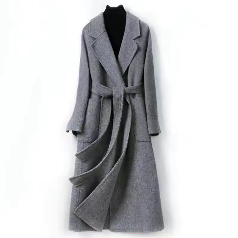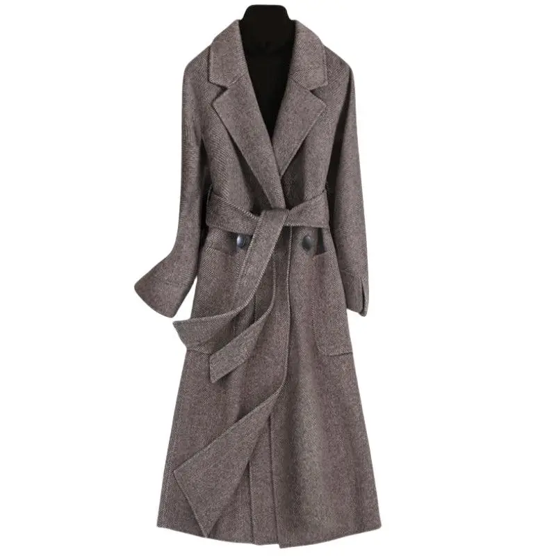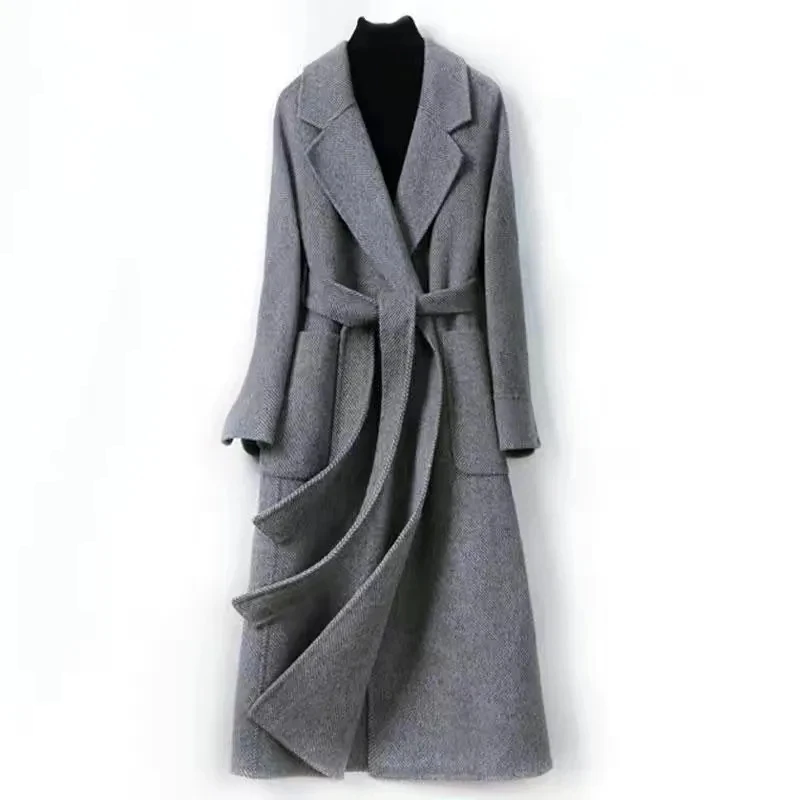 Women's Cashmere Coat 2025 New Autumn Winter Fashion Temperament Slim Thicken Woolen Coats With belt Female Long Overcoat