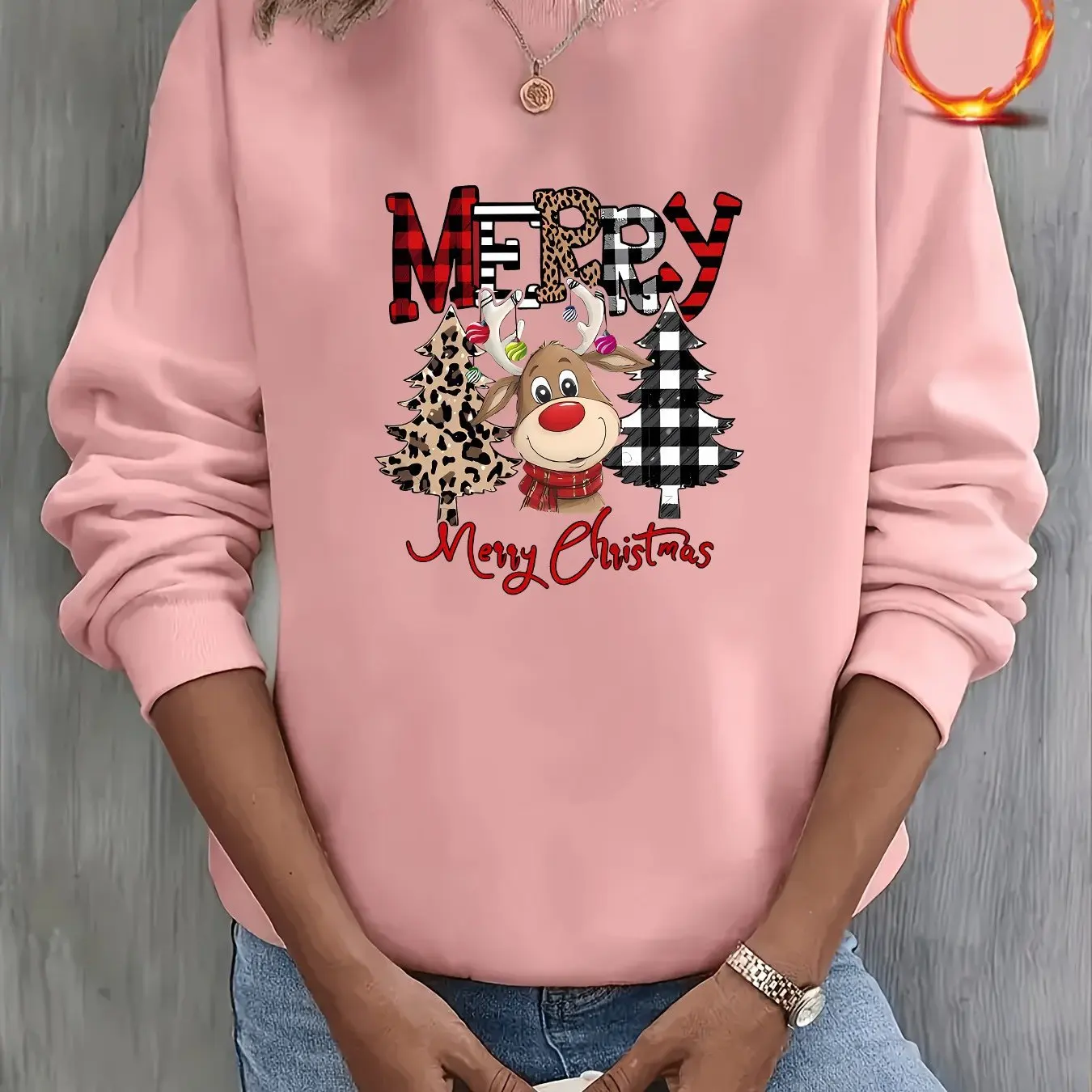 Women's Christmas Casual Sweatshirt with Merry Christmas Let Warm round-neck long-sleeved pullover