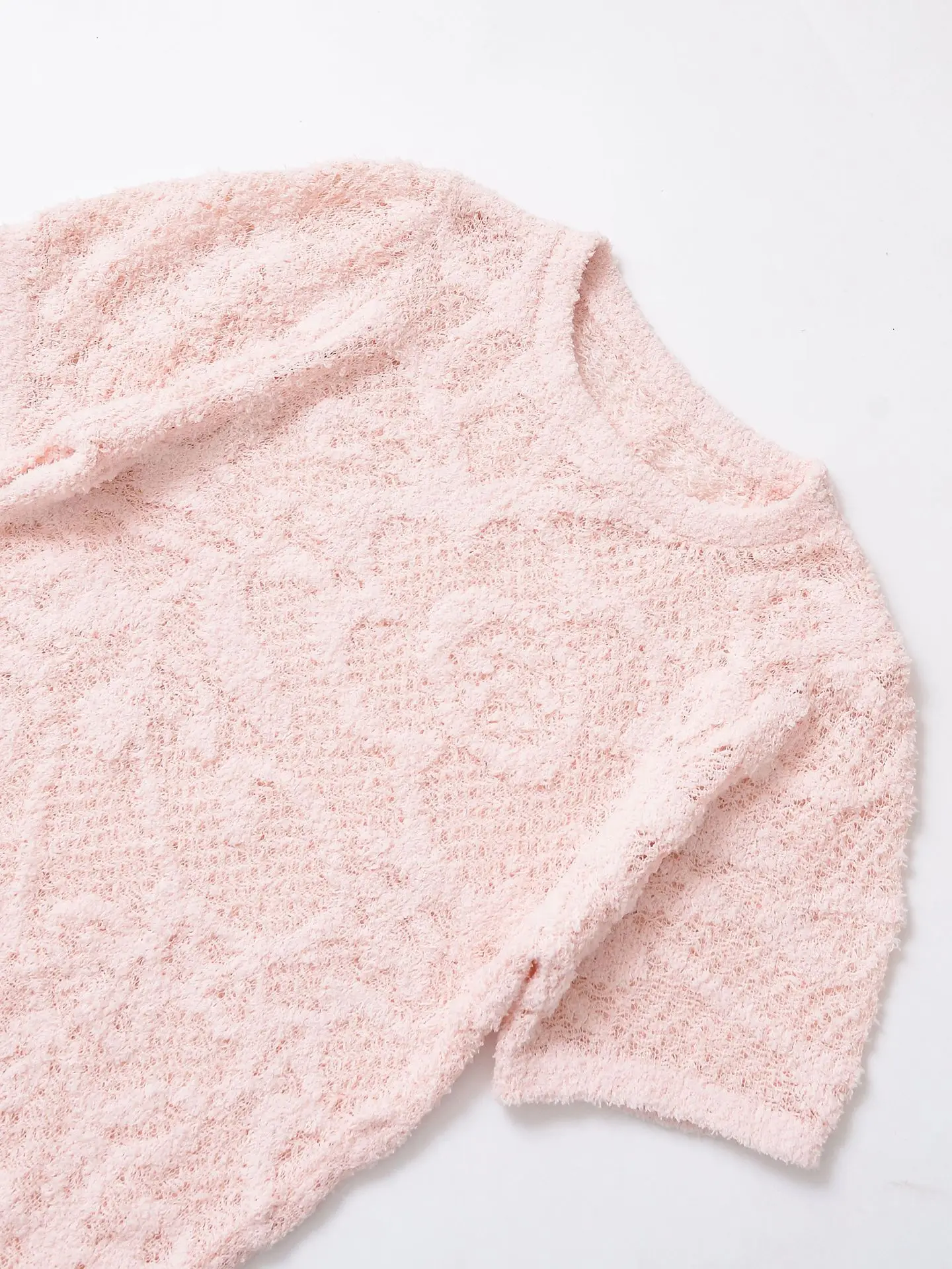 Women's clothing 2025 summer new style fashionable light-cooked style flower print texture knitted top