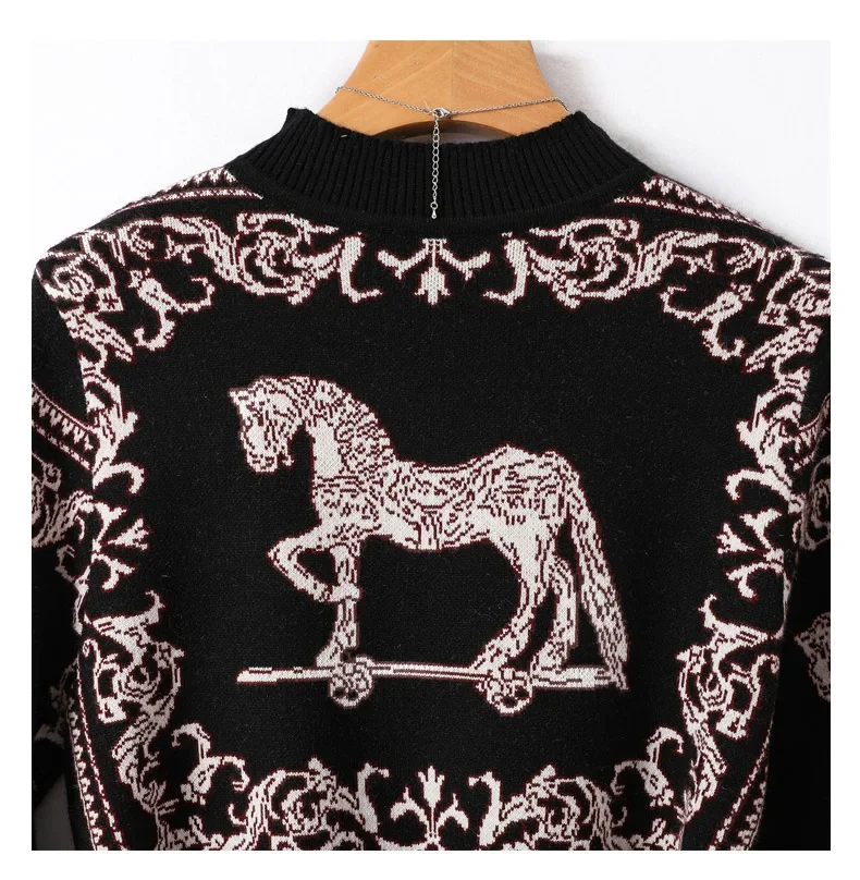 Women's Clothing Fashion Vintage Jacquard Knitted Dresses Autumn Winter Loose O-neck Thick Warm Elegant Dresses