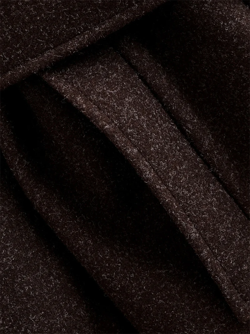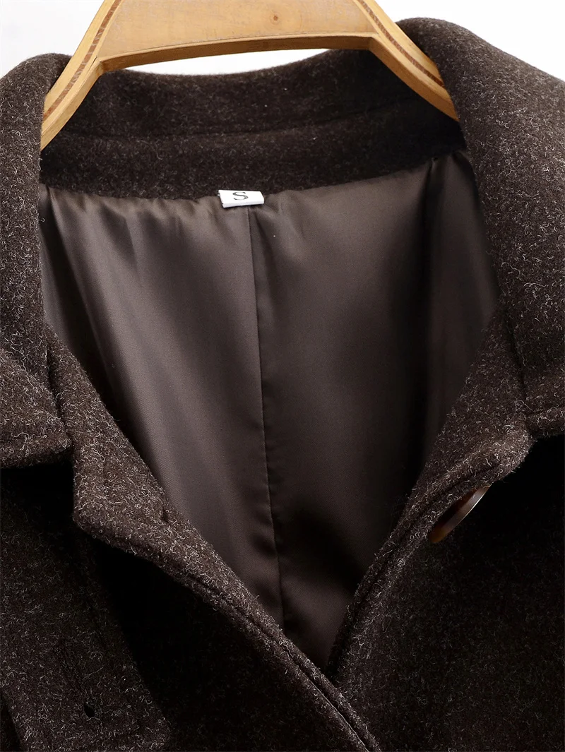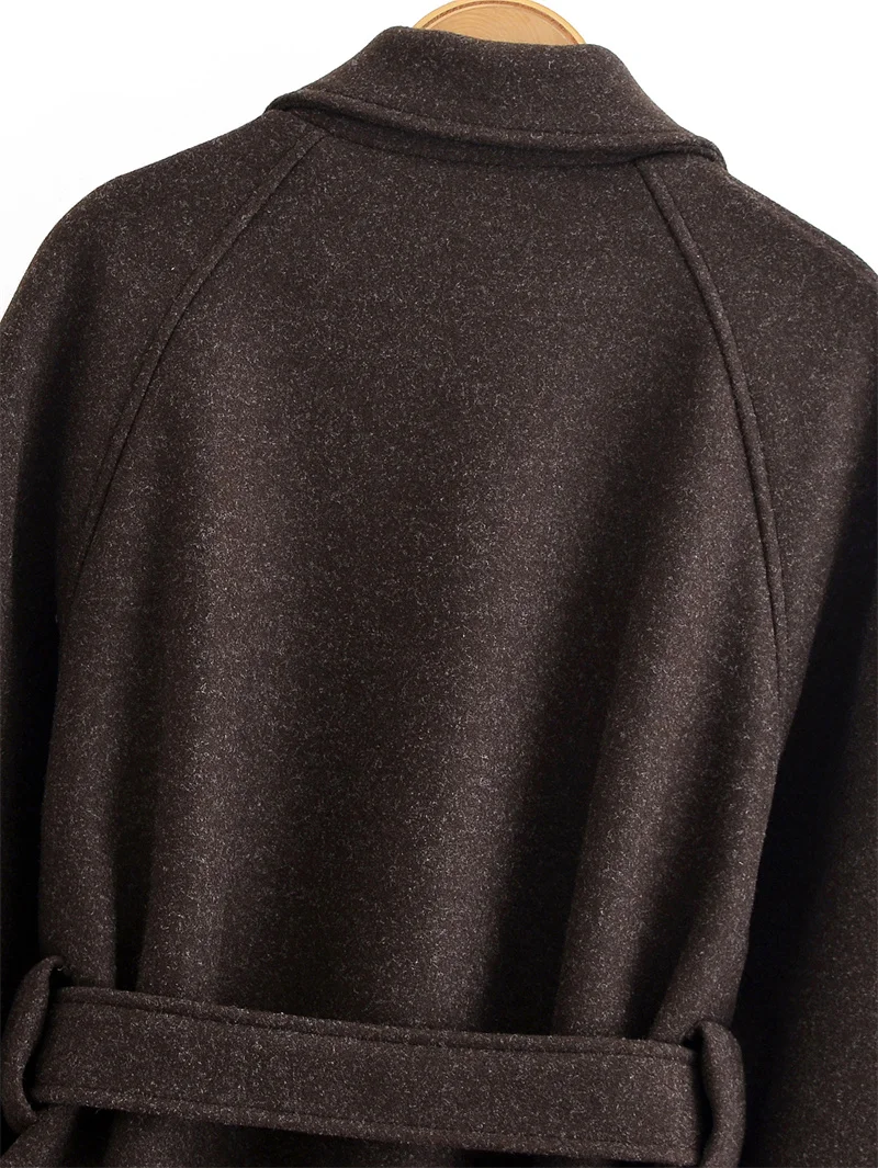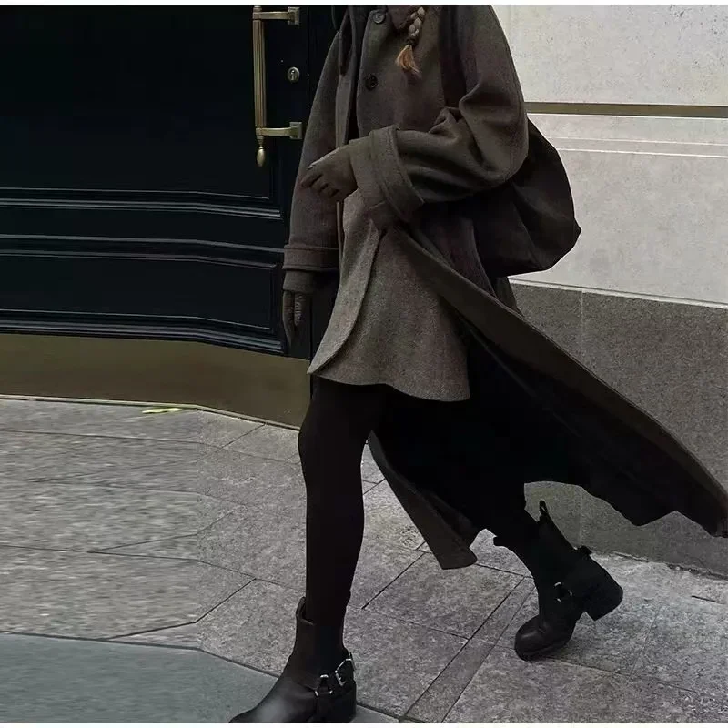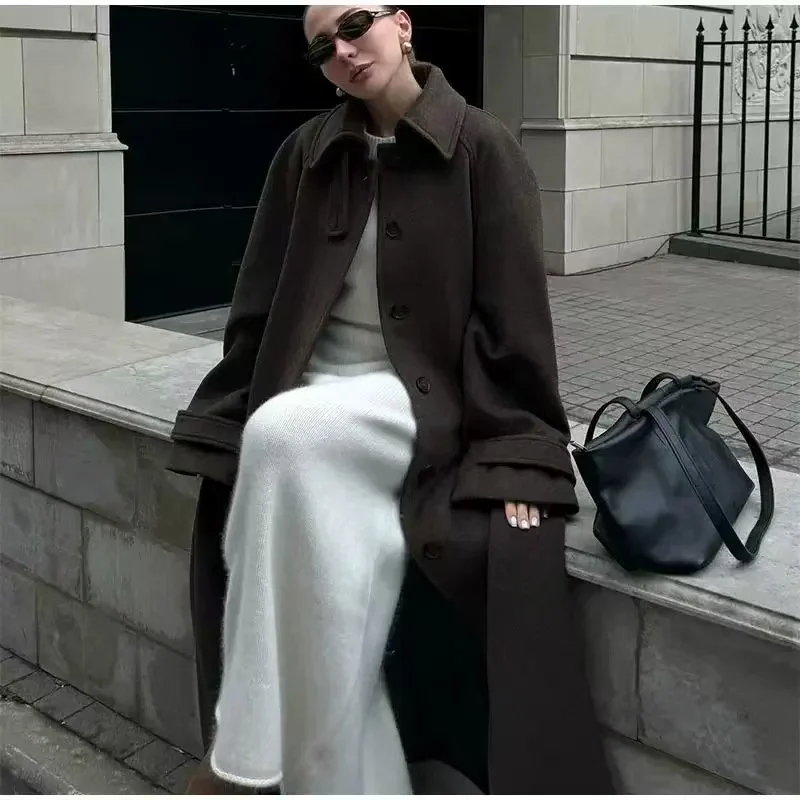 Women's Coat 2025 Winter New Style Dark Brown Long-Sleeve Belted Loose-Fit Long Woolen Coat Fashionable and Stylish