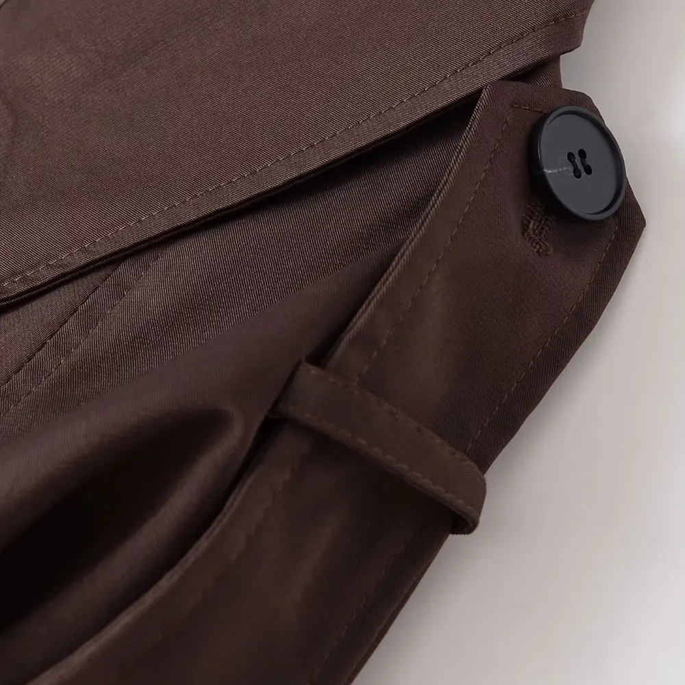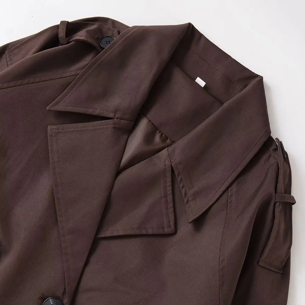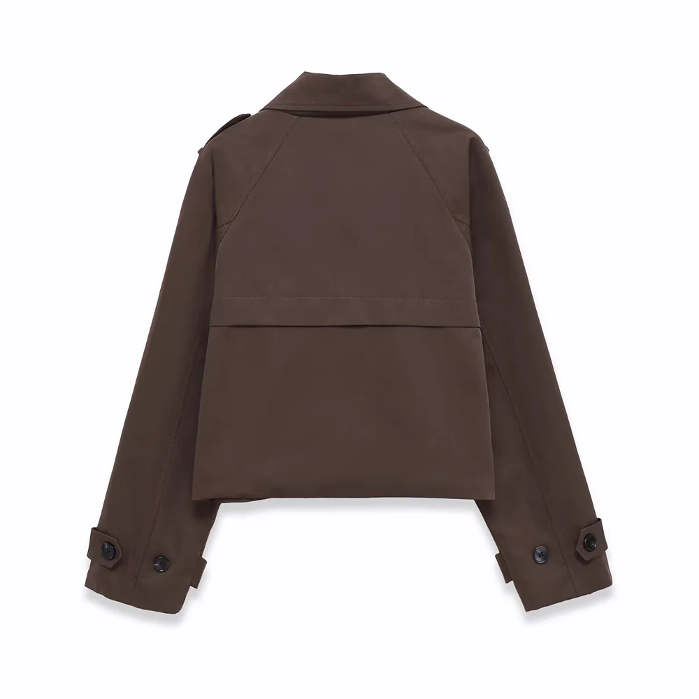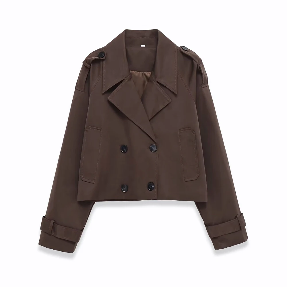 Women's Double-breasted Short Trench Coat Fashion Chic Outerwear with Pockets Long Sleeve Female Top