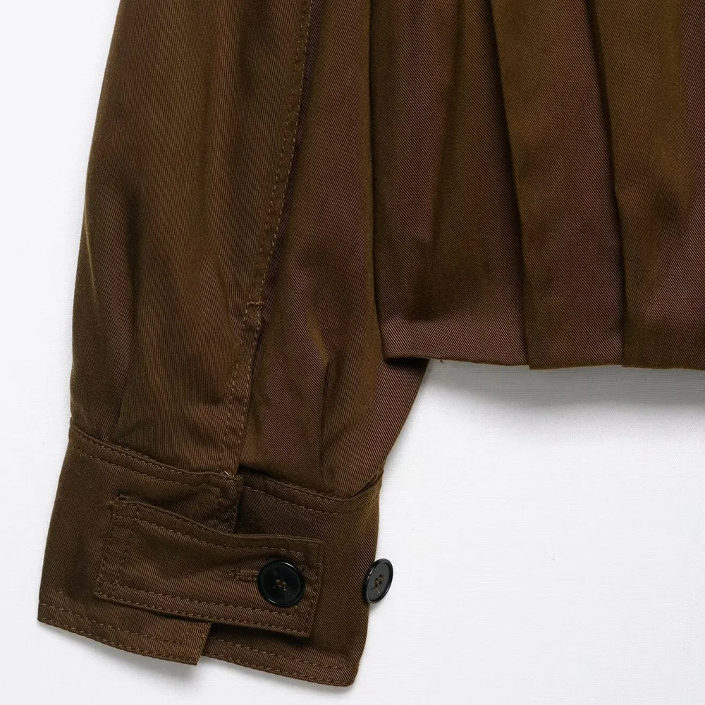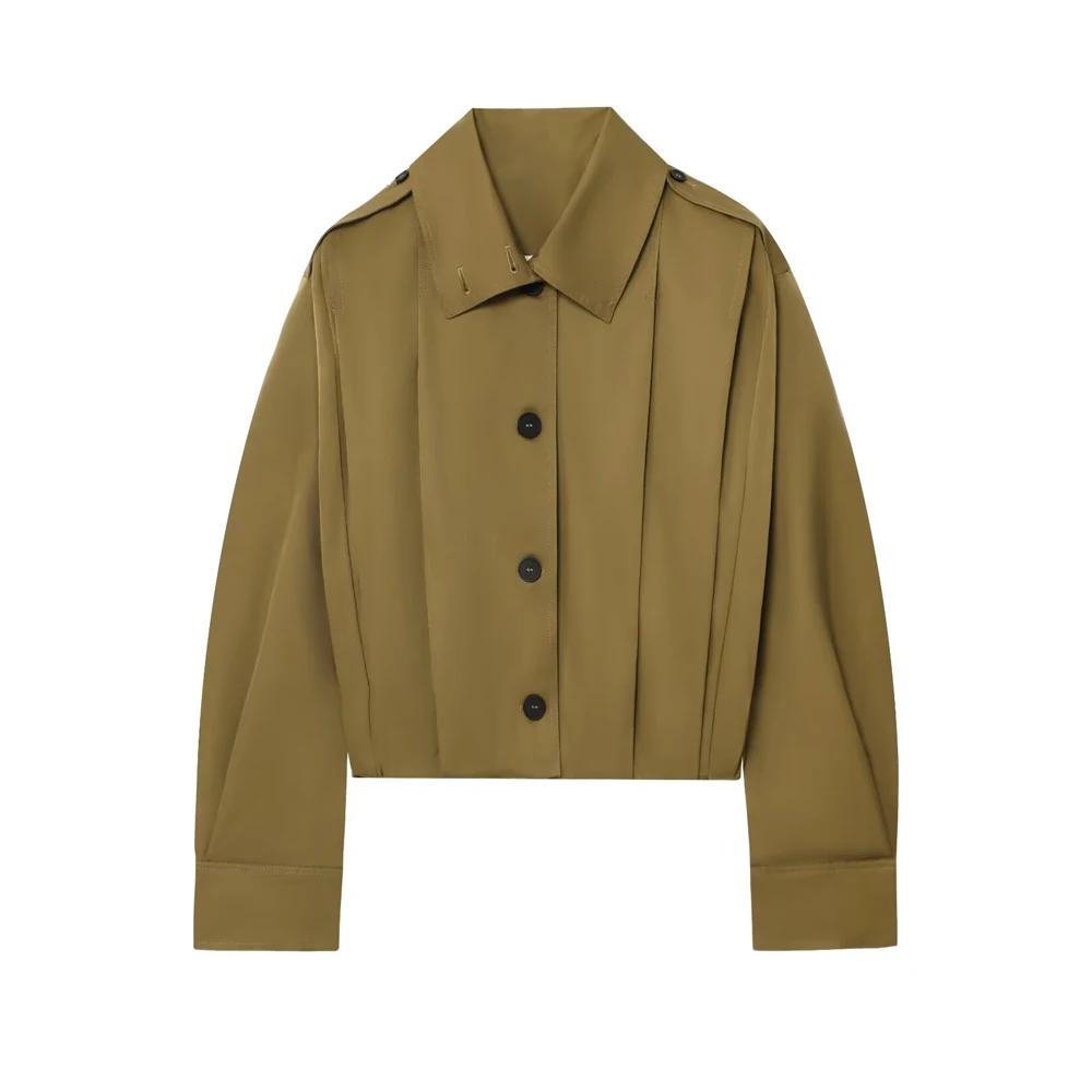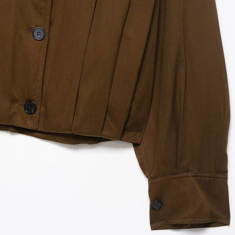 Women's Fashion Pleated Jacket Coat with Pads Lapel Collar Long Sleeve Front Button Chic Outerwear Top