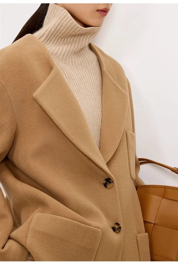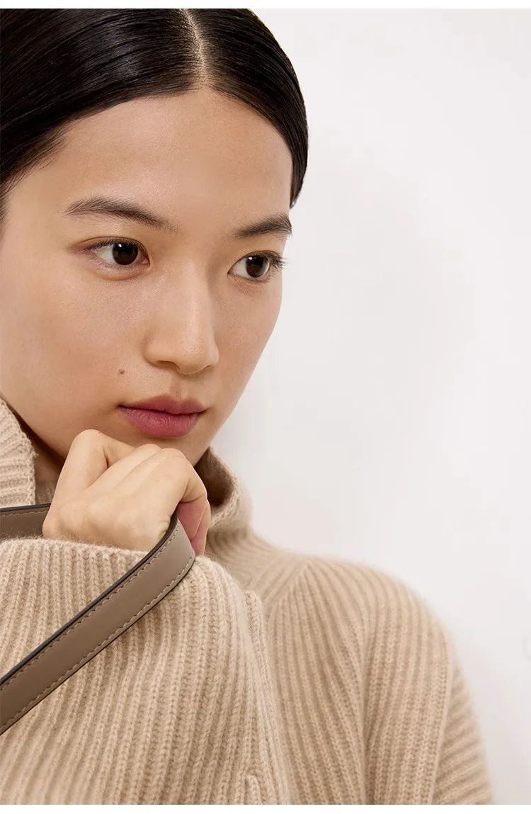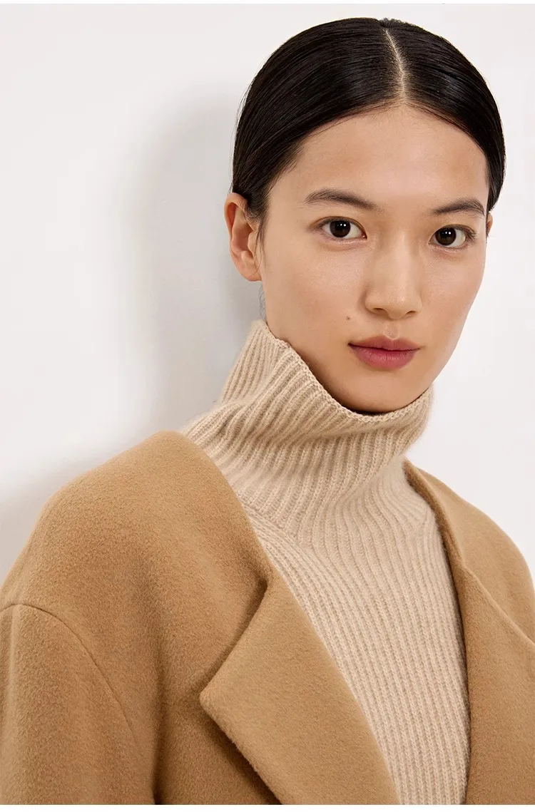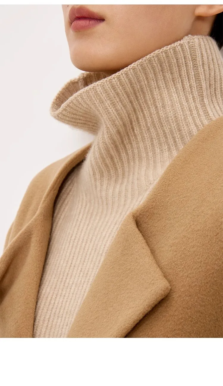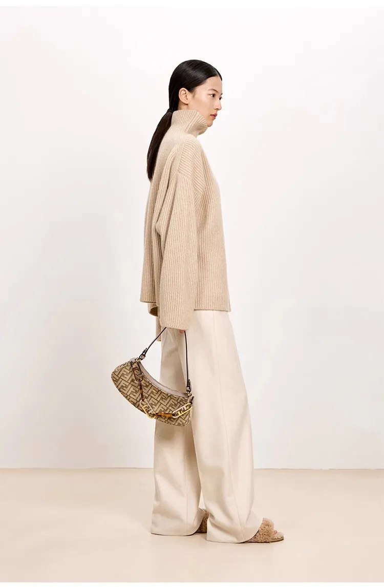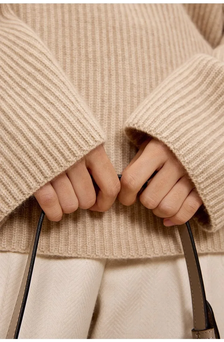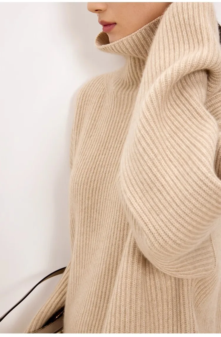 Women's High-Necked Cashmere Sweater Loose Padded Bottoming Pullover Autumn Winter Warm Lazy Wind Style 100% Pure Wool