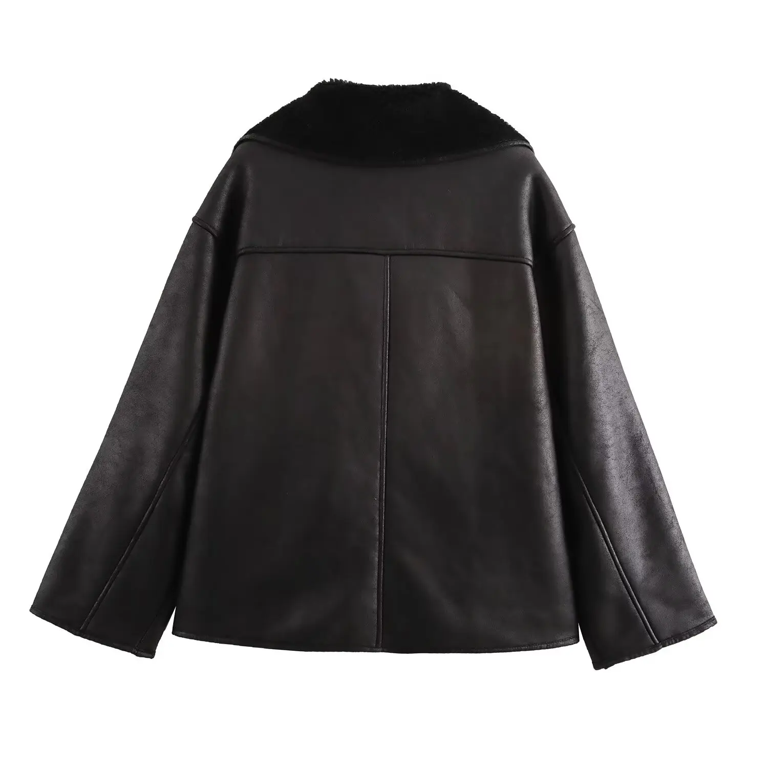 Women's Leather Jacket Coat Female Vintage Jackets Streetwear Turn-Down Collar Loose Outerwear Lady Autumn Winter Clothes Coats