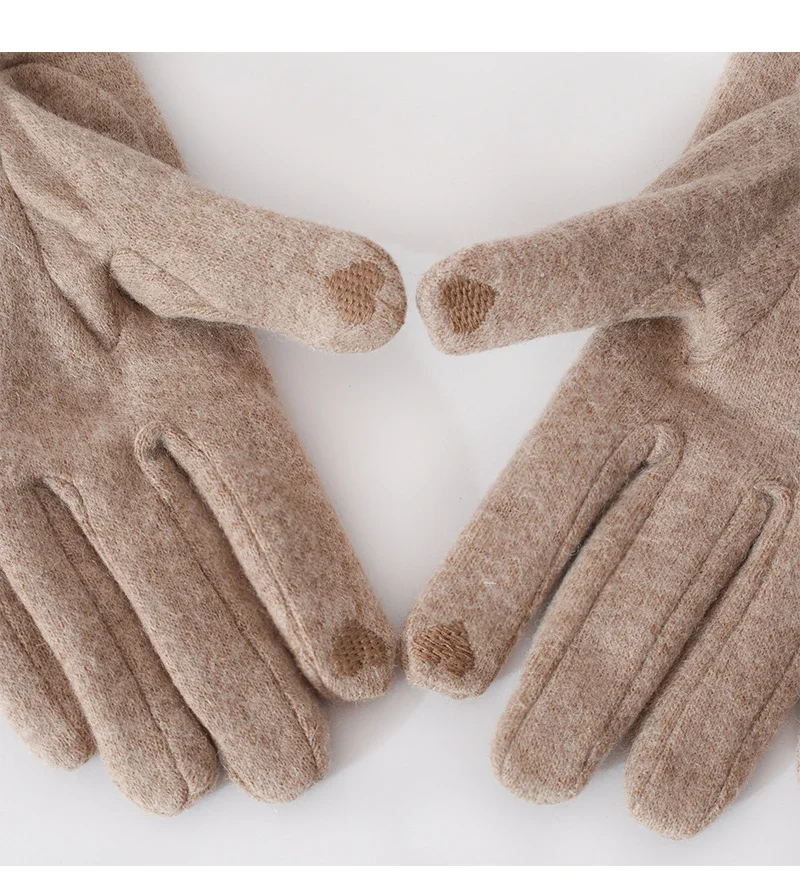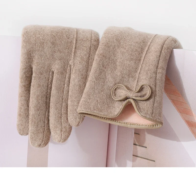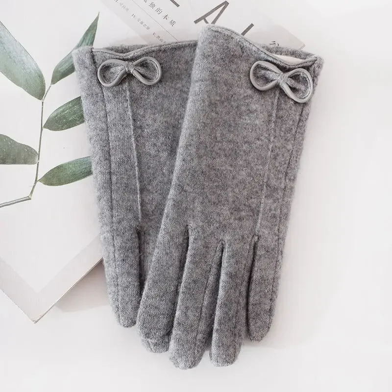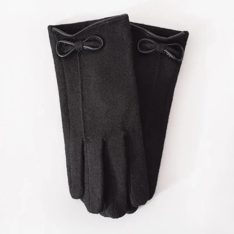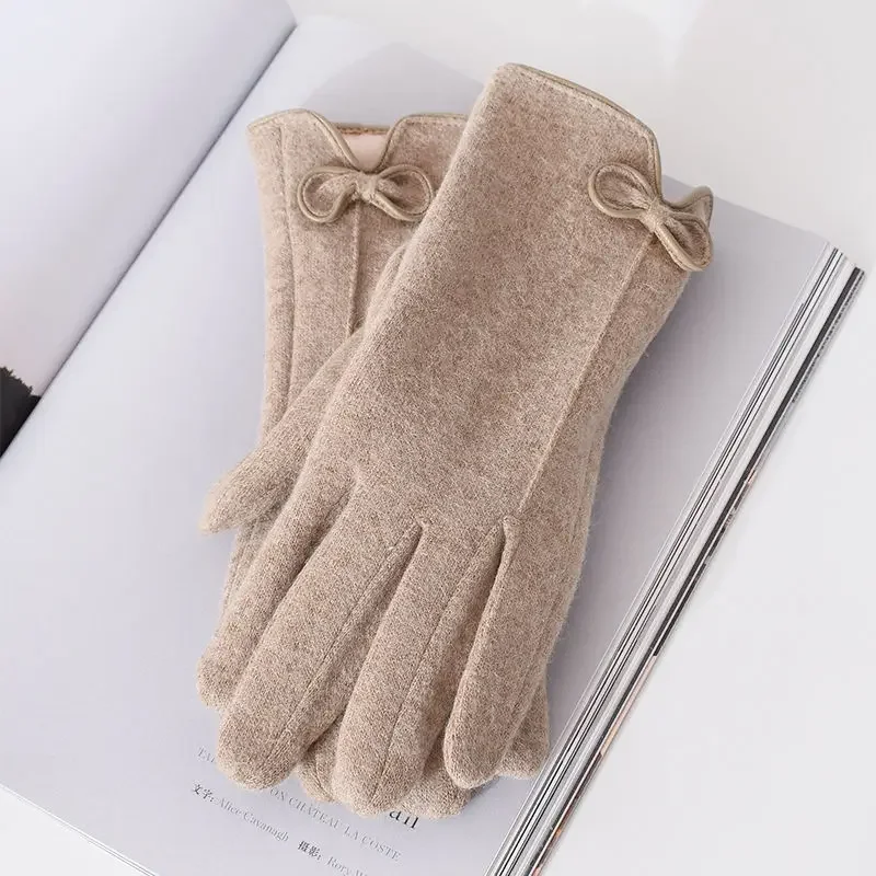 Women's Winter Cashmere Touch Screen Warm Gloves Outdoor Riding Plus Velvet Thicken Wool Bow Full Finger Driving Mittens S29