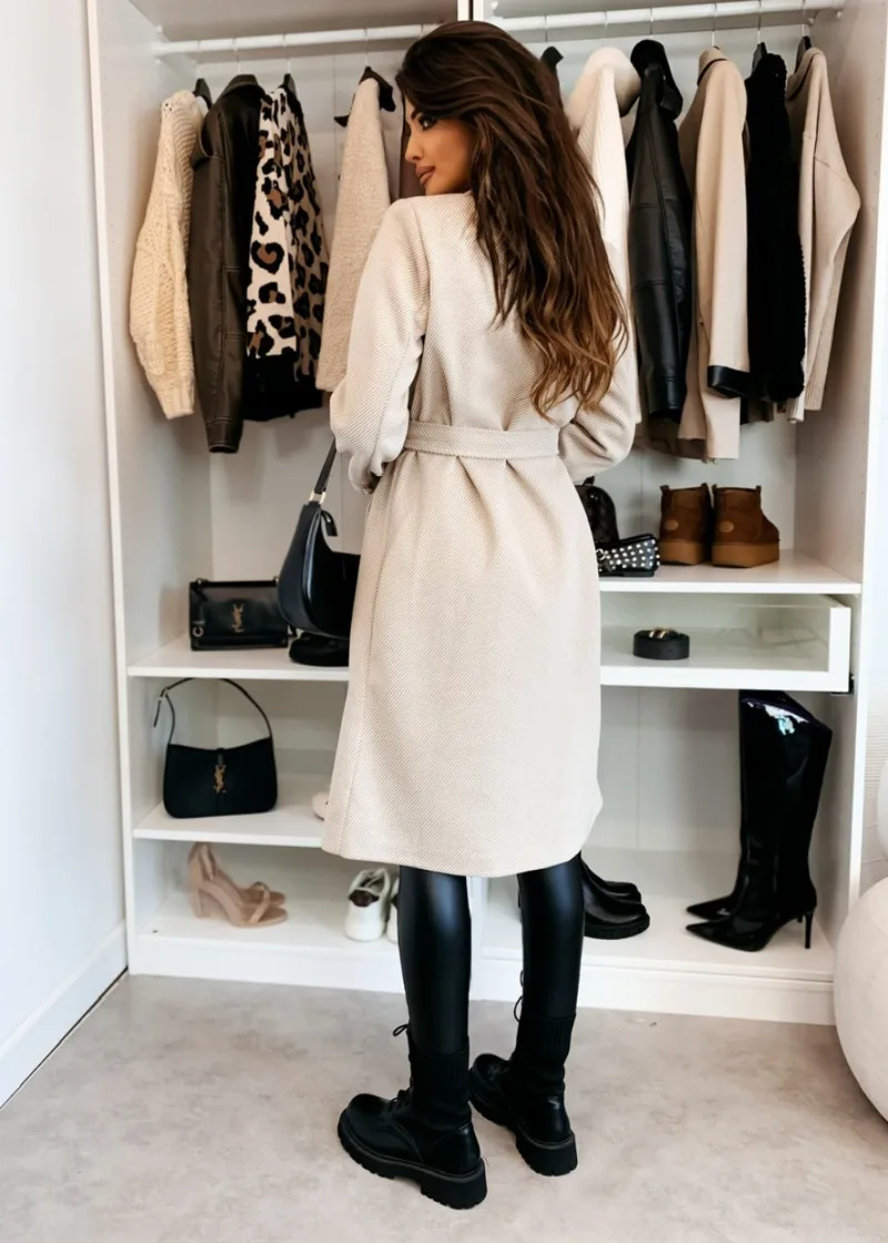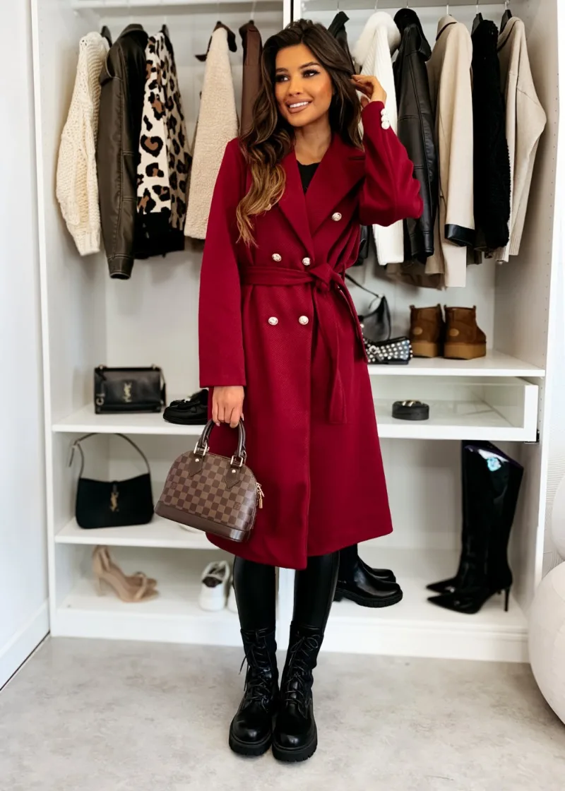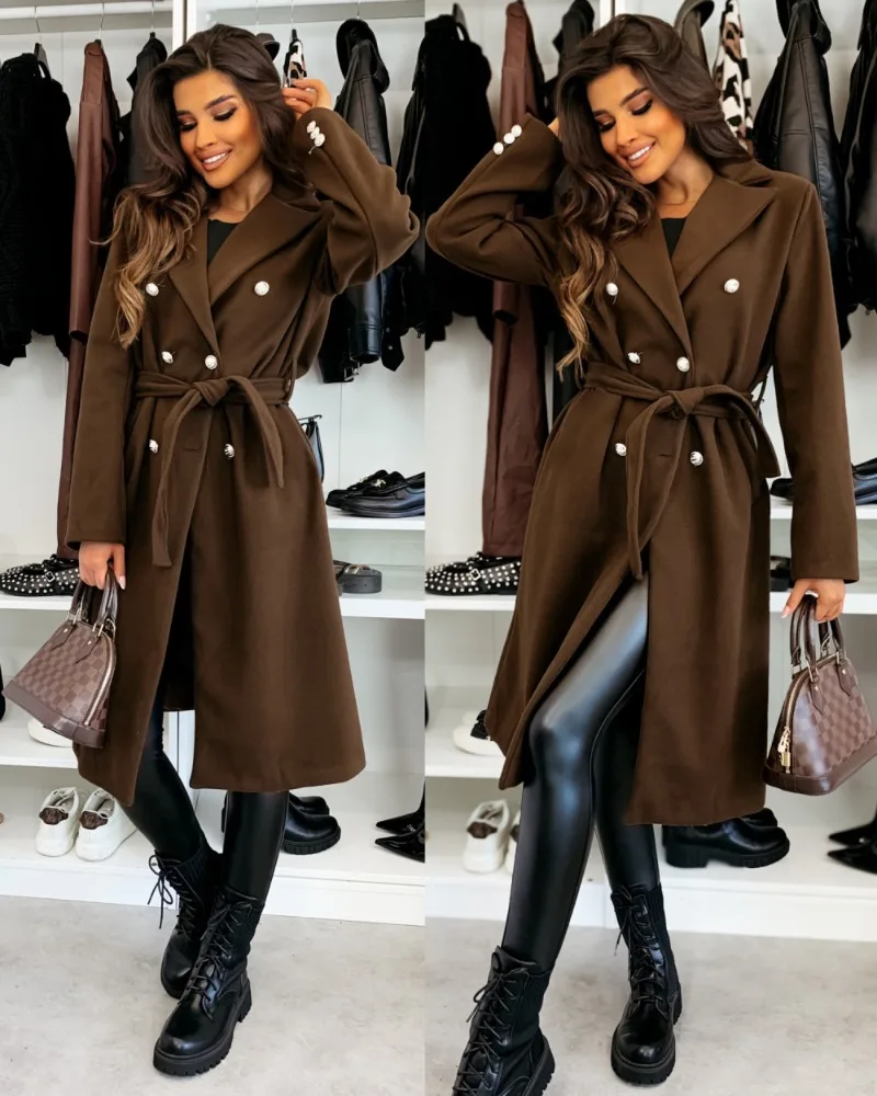 Women's Woolen Coat Autumn Winter Vintage Elegant Double Breasted Trench Coat Women Brown Long Sleeved Midi Windbreaker Jacket