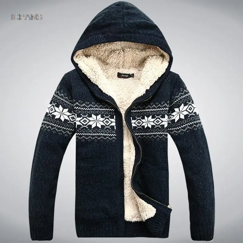 Winter Thicken Fleece Wool Man Sweater Hooded Winter Cardigan Overcoat Casual New Fashion Cotton Red Blue Size M L XL XXL